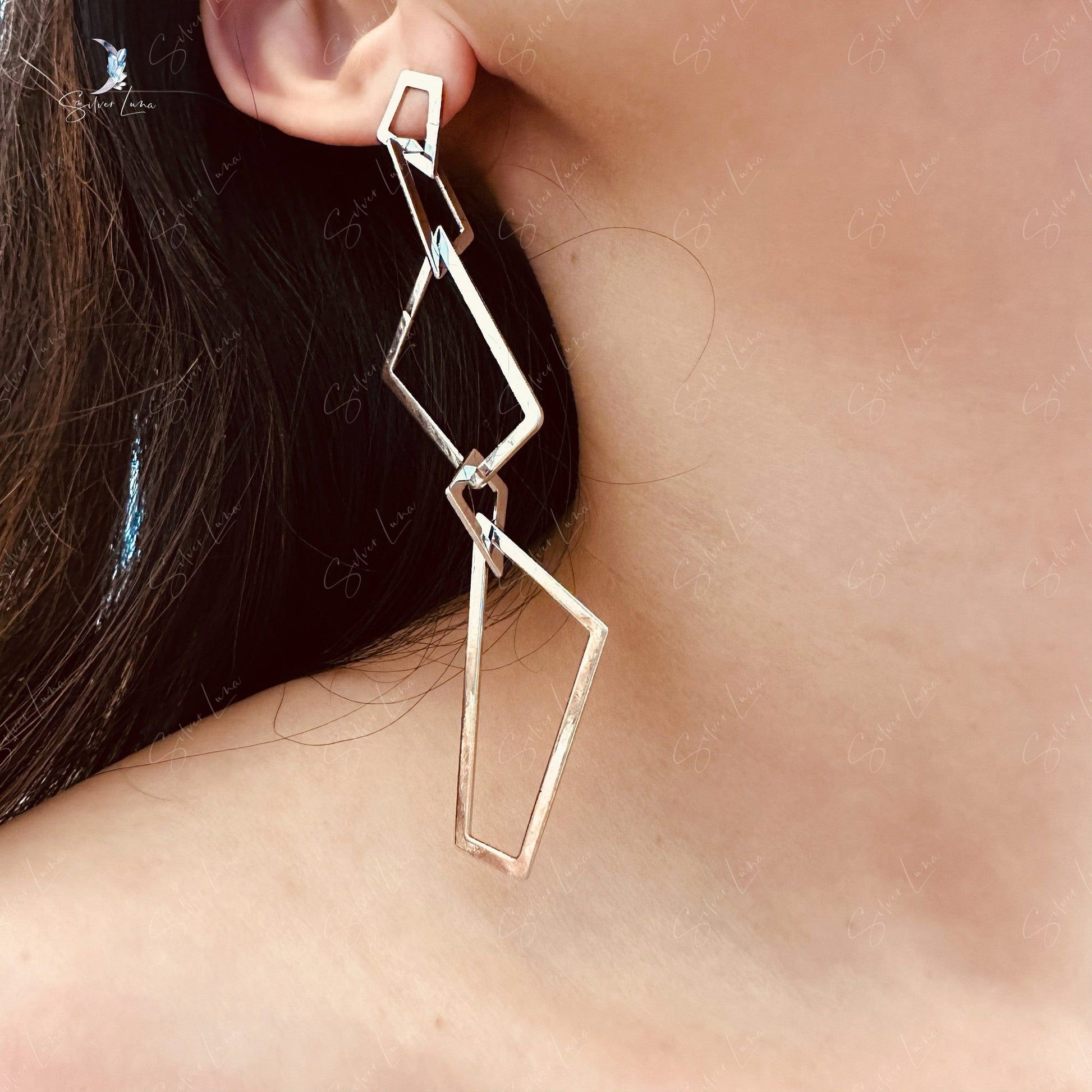 Make a statement with this unique geometric abstract link chain dangle drop earrings, pair with your perfect outfit and get ready for a night out.