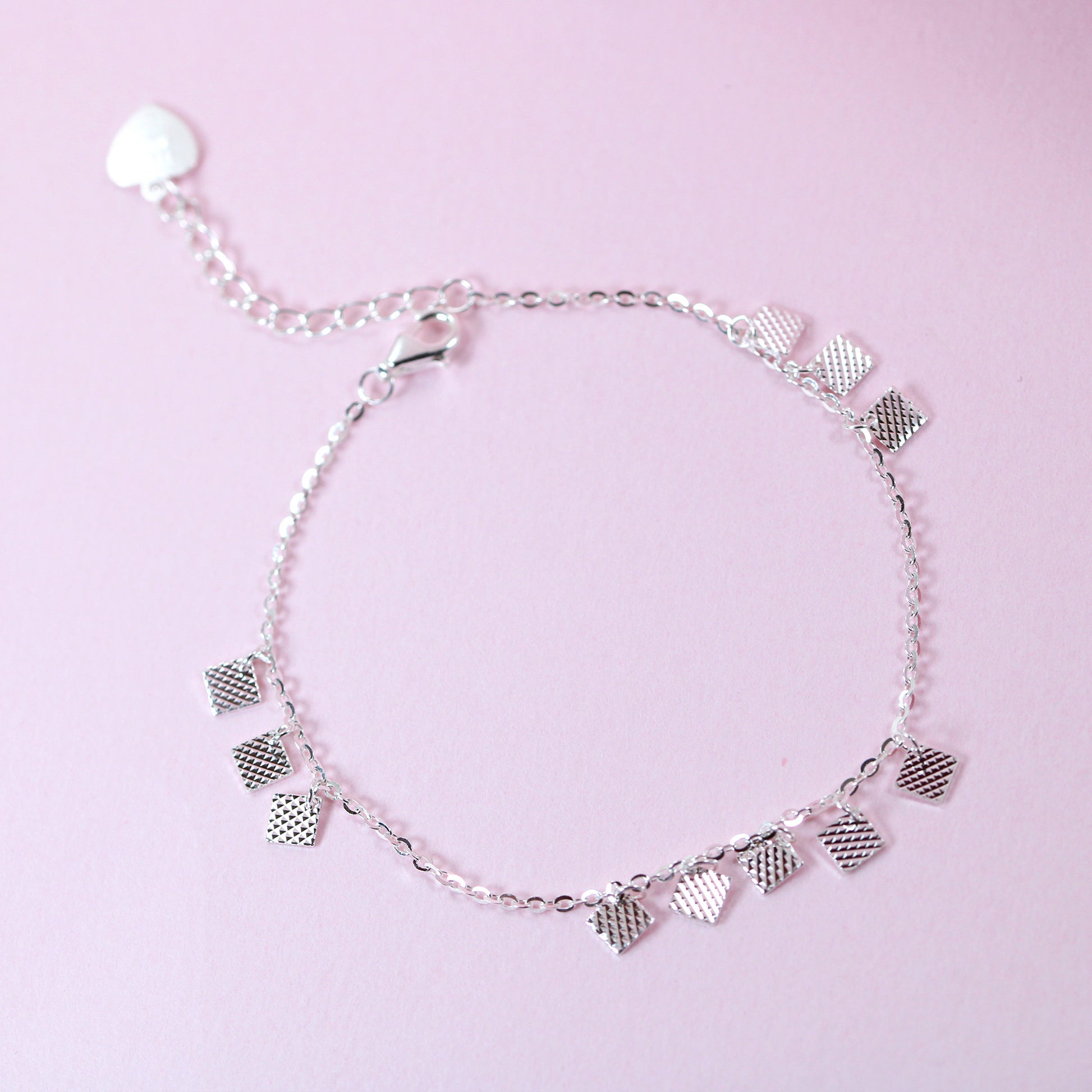 Experience modern elegance with our Geometric Texture Square Charms Bracelet in sterling silver! Each charm boasts a unique textured design, adding a touch of sophistication to any outfit. Crafted with high-quality sterling silver, this bracelet is both durable and stunning. Elevate your look with this must-have accessory!