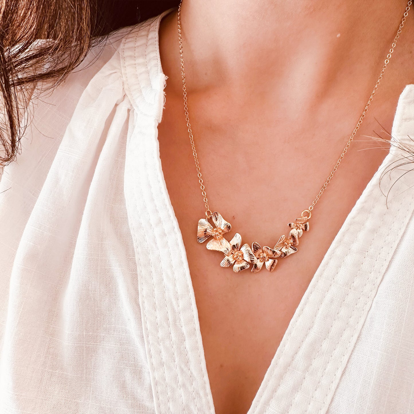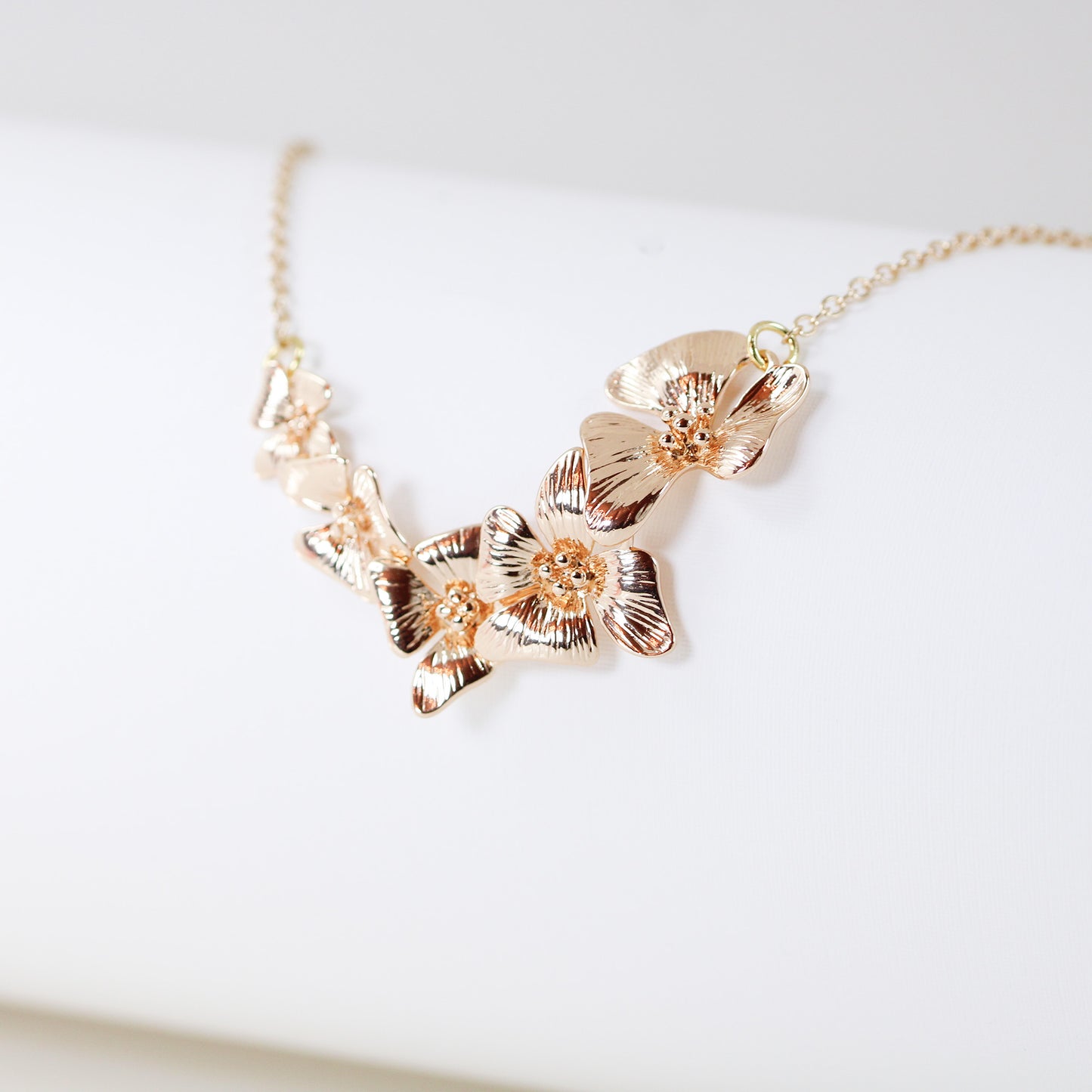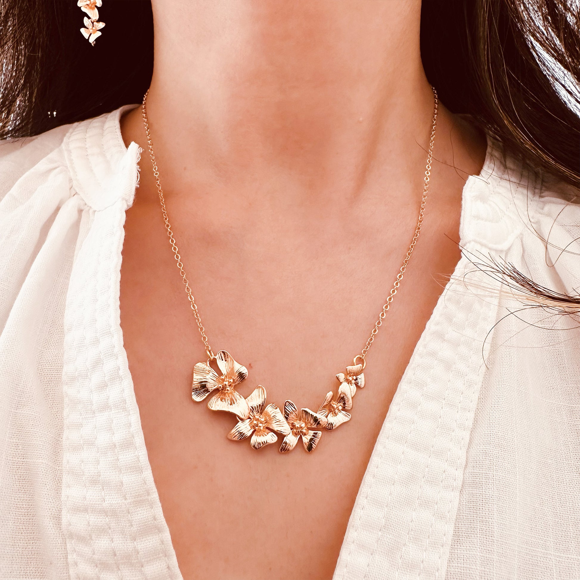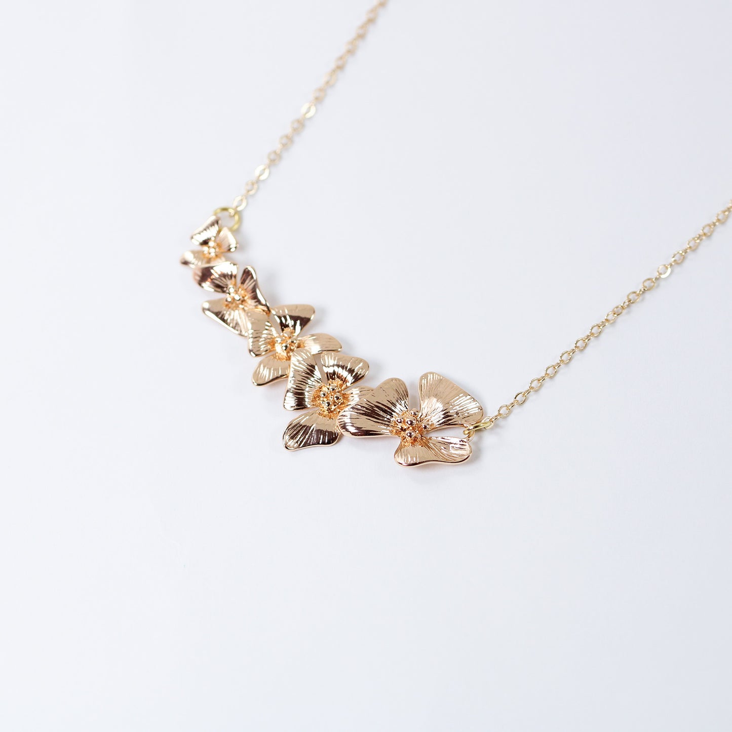 Gold plated orchid flowers bridal necklace