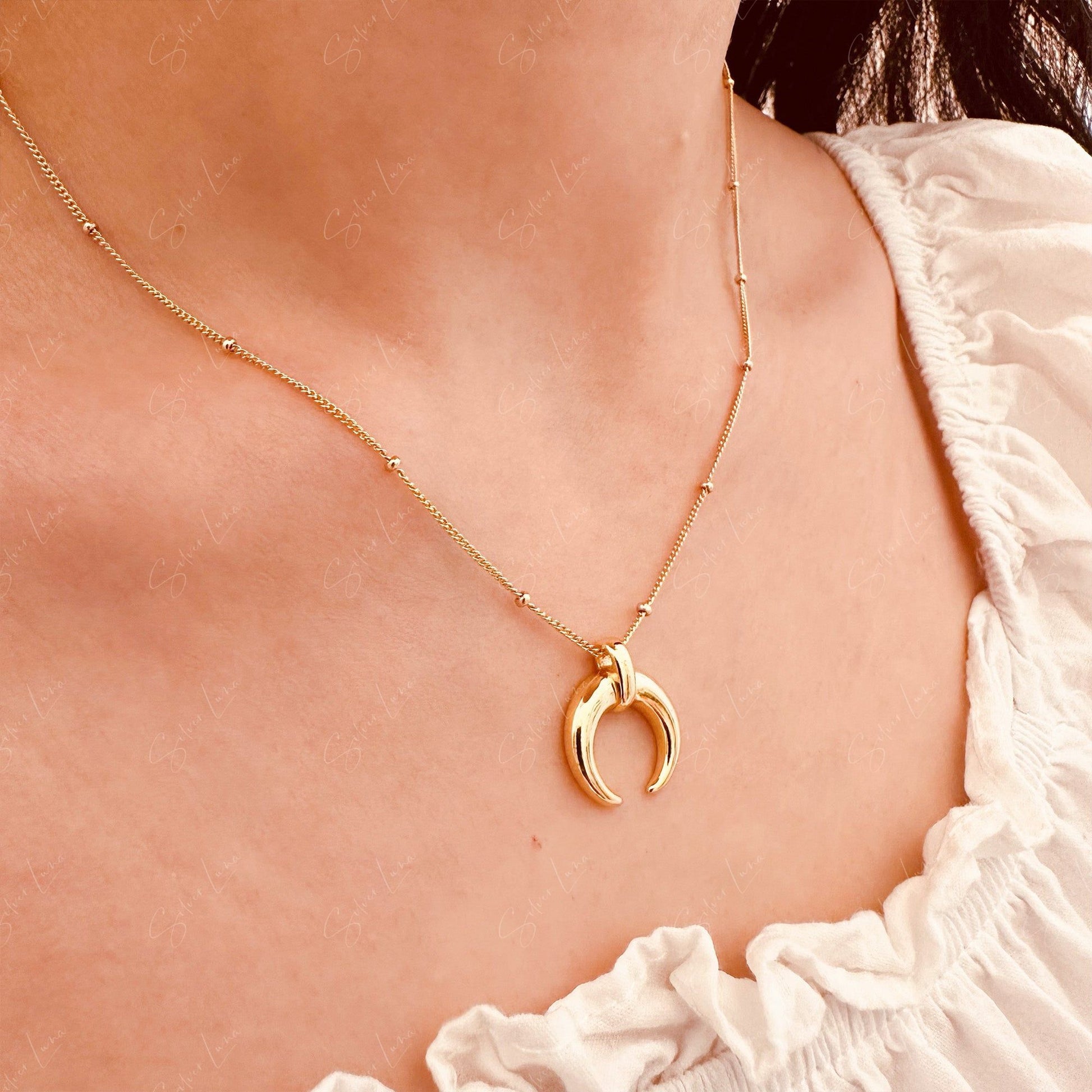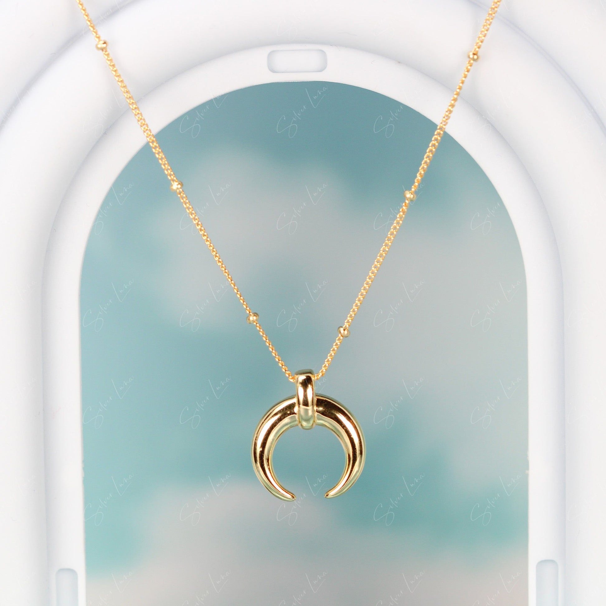 Experience the luxurious look and long-lasting shine of our solid 925 sterling silver pendant necklace. With a gold plate and highly polished crescent moon pendant on a ball bead chain, this necklace is sure to inspire strong emotions and appeal to your senses. Add a touch of elegance to any outfit with this stunning piece.