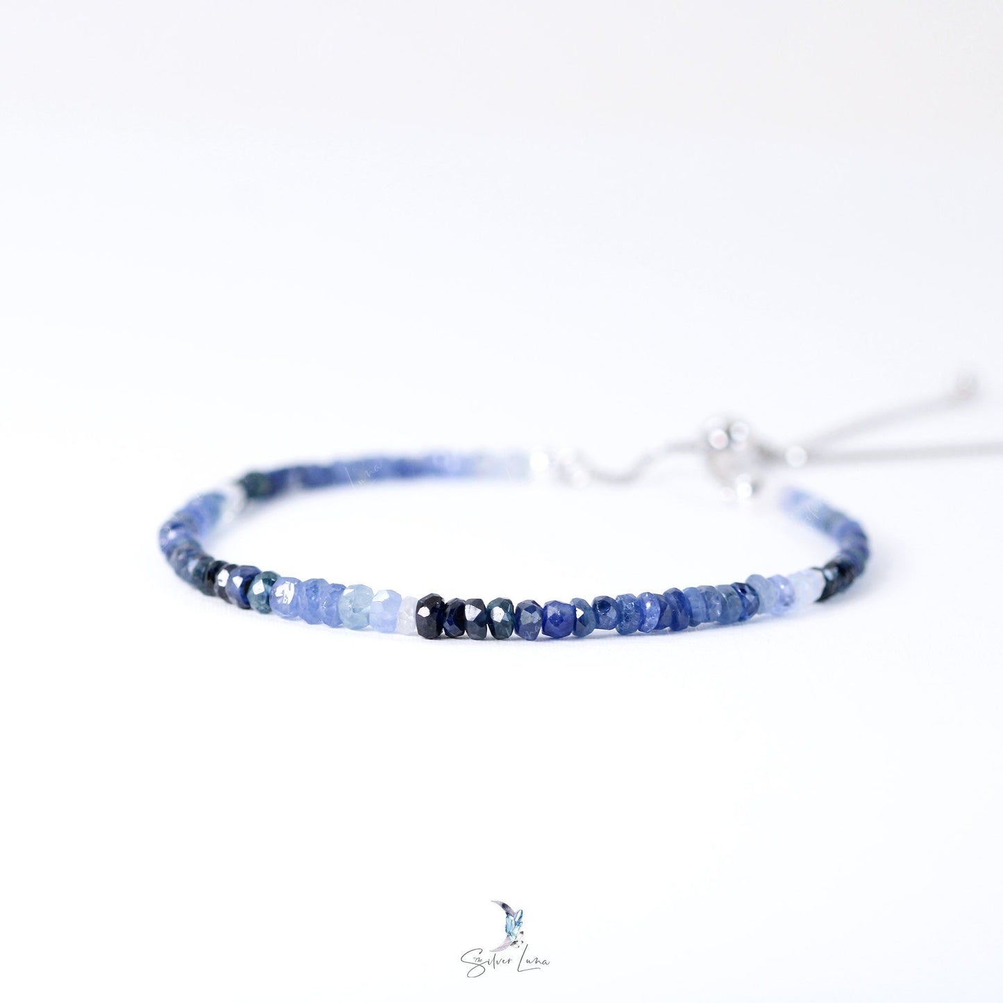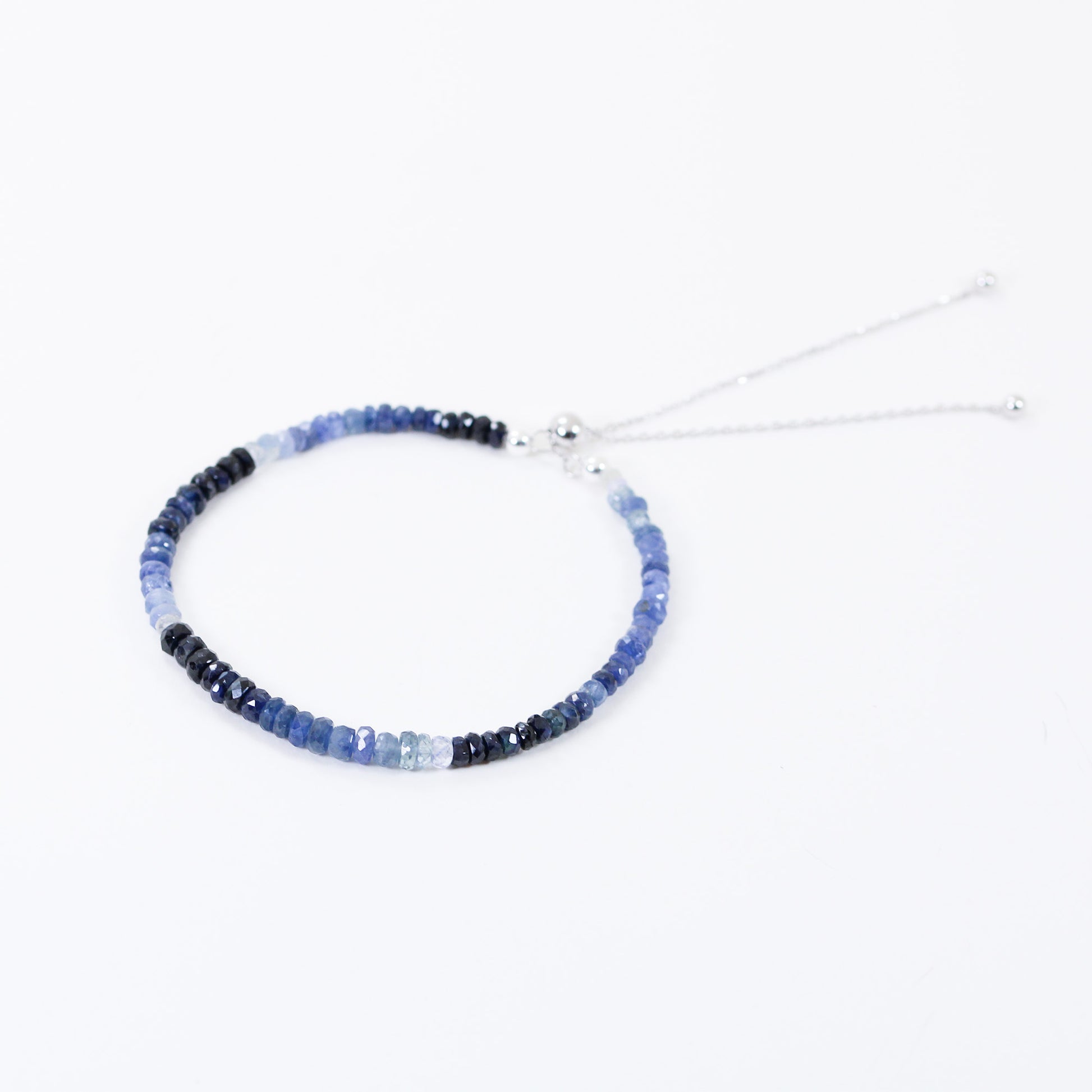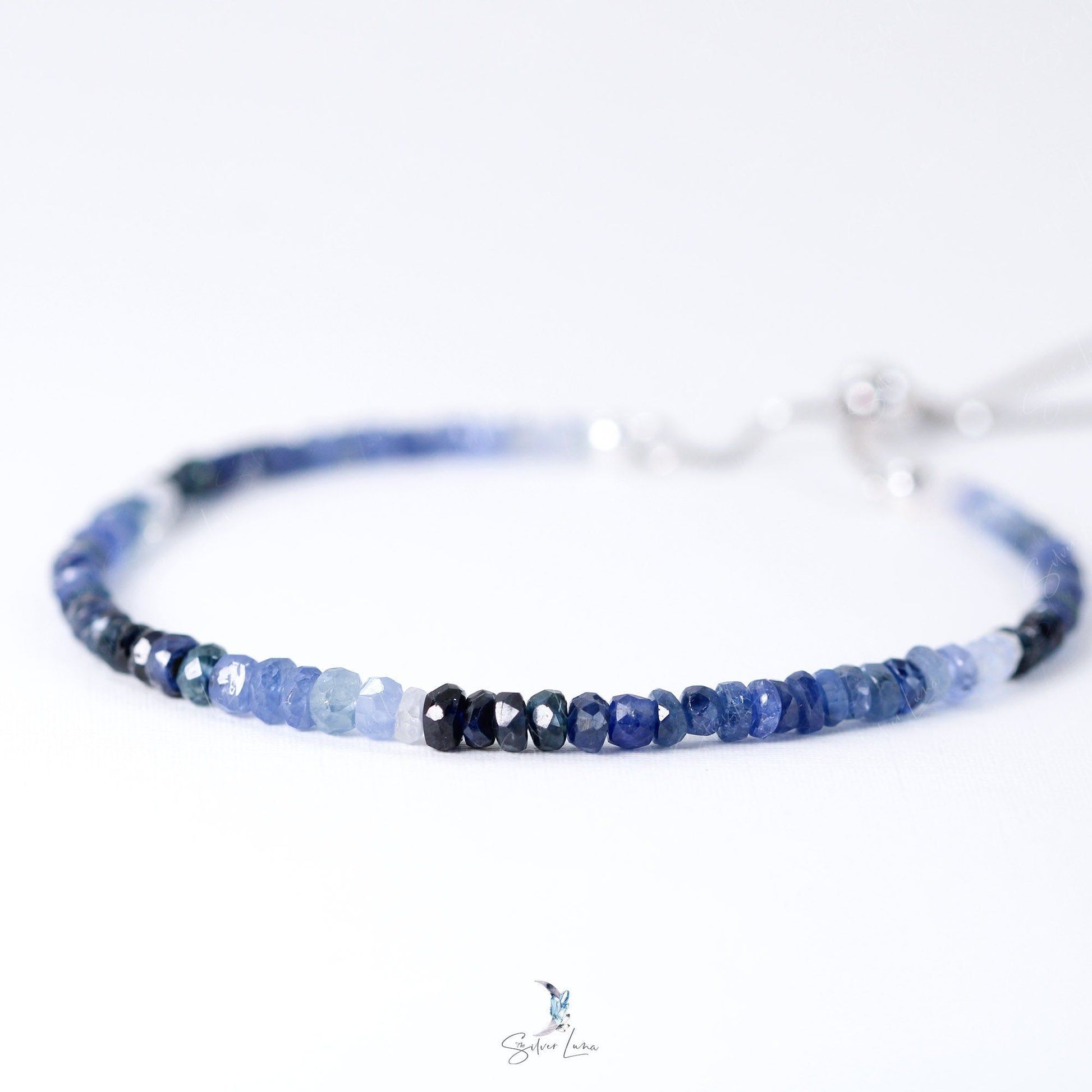 Gradient blue sapphire beaded bracelet sterling silver chain