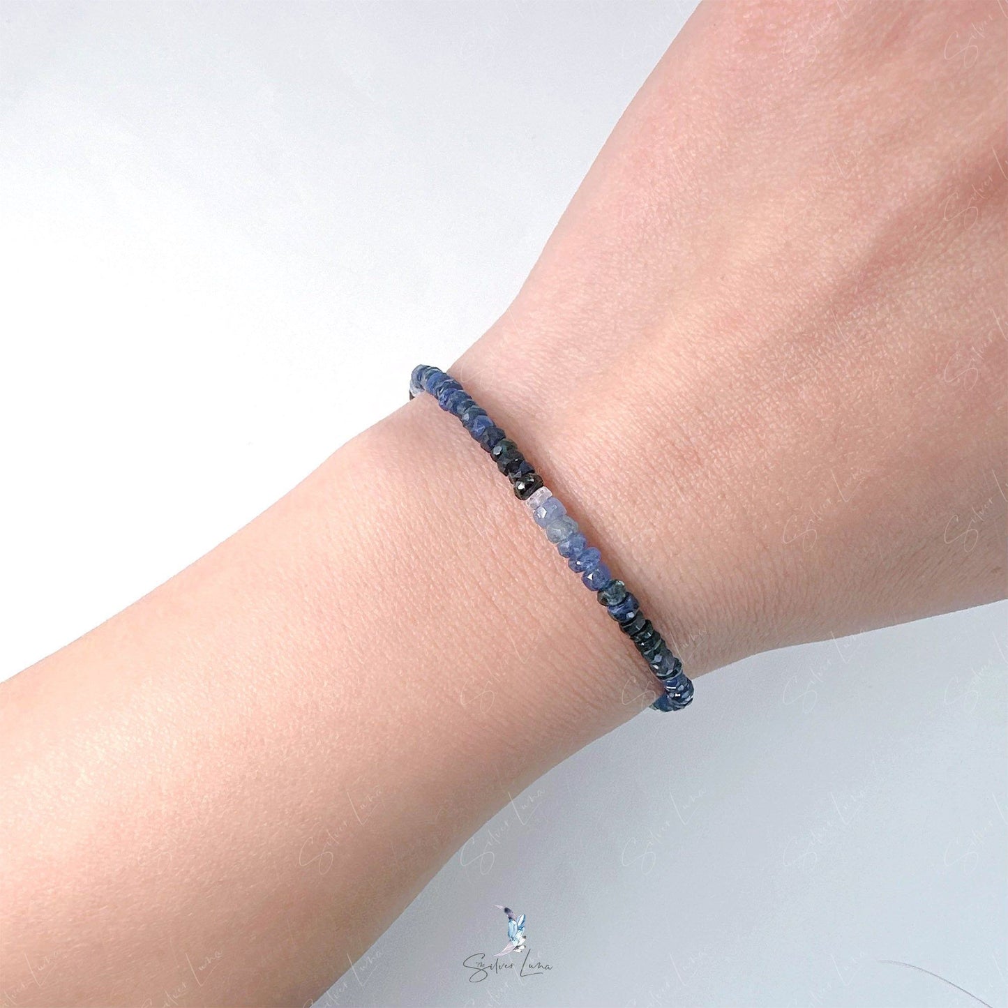Enhance your jewelry collection with this stunning beaded bracelet! Immerse yourself in the beauty of these faceted blue sapphire beads, delicately threaded onto an adjustable 925 sterling silver cable chain. It's the perfect addition to any outfit or a heartfelt gift for a special someone.