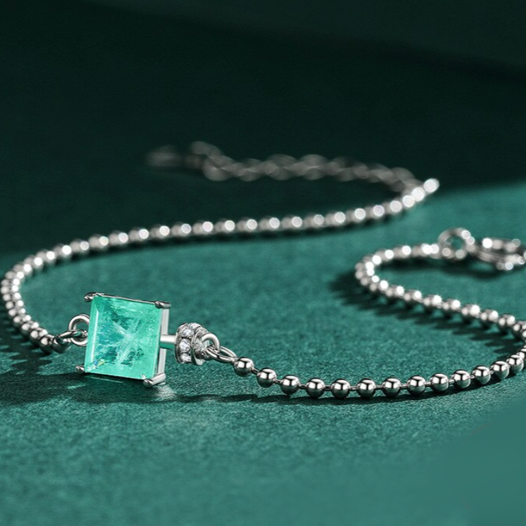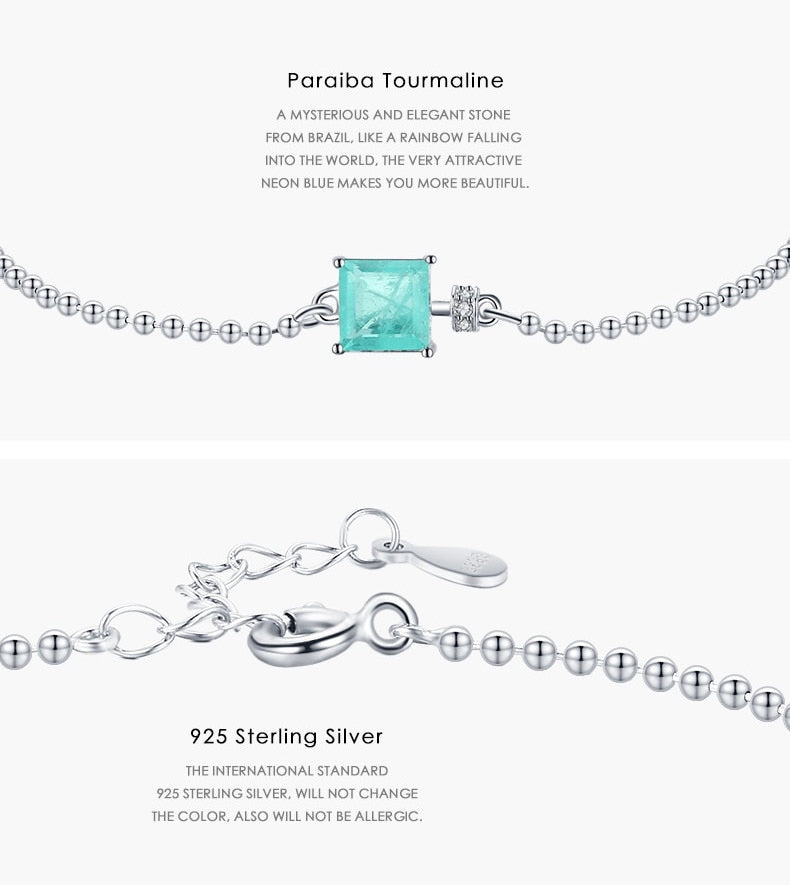 This stunning bracelet boasts a delicate, stylish design with a captivating square green tourmaline gemstone. Made of high-quality 925 sterling silver and finished with platinum plating, this piece is perfect for everyday wear or as a heartfelt gift for someone special.