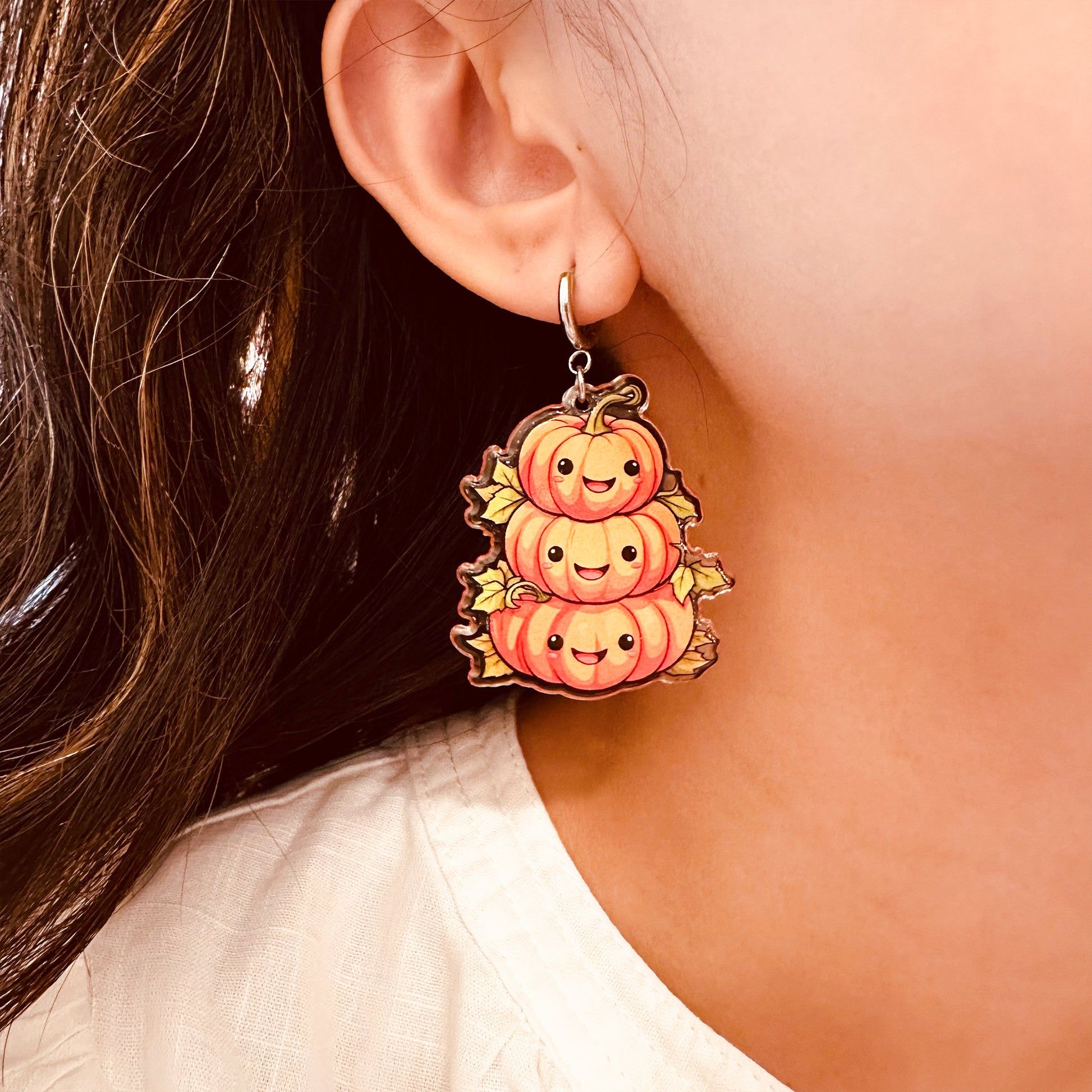 Add a touch of autumn to any outfit with our Harvest season pumpkins dangle drop earrings. The charming design features delicate pumpkin charms that will complement any fall look. Perfect for pumpkin spice lovers and anyone who wants to embrace the warmth and beauty of the season!