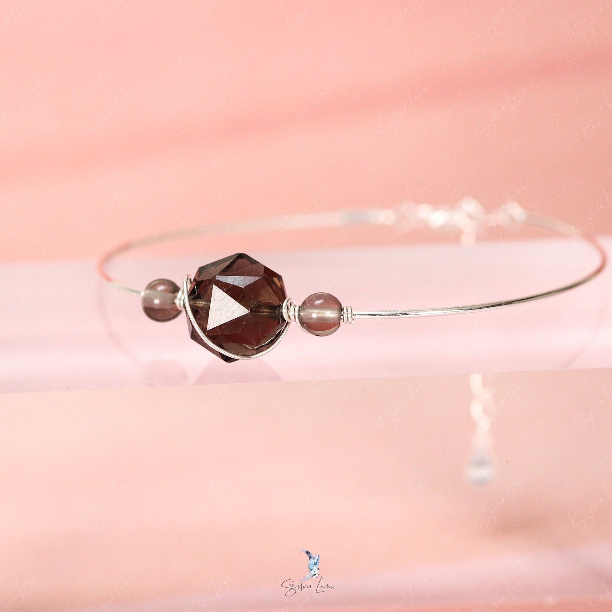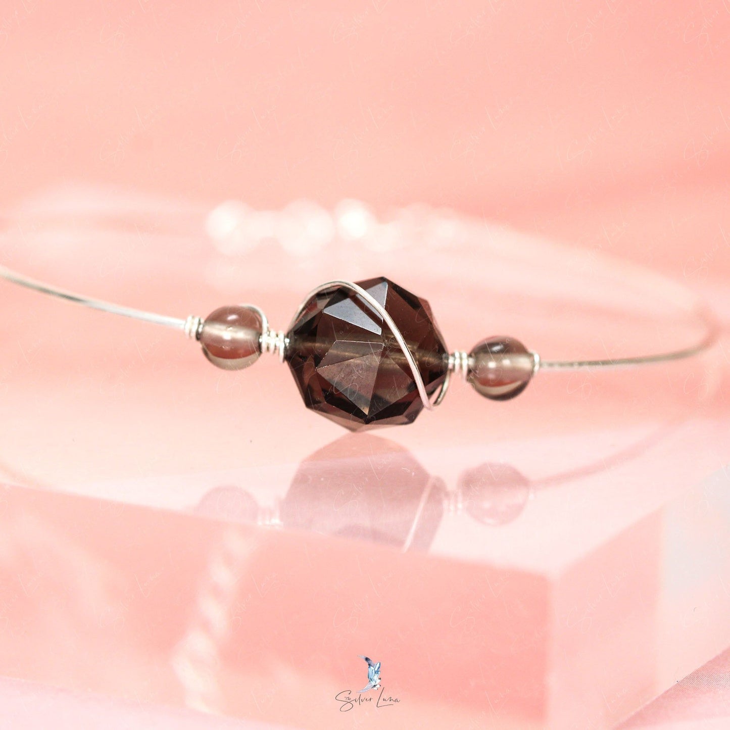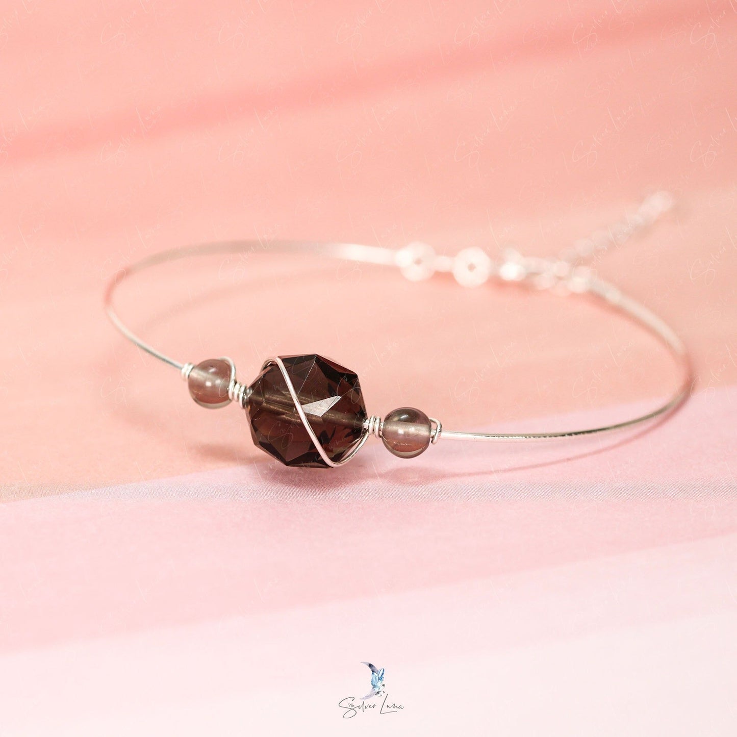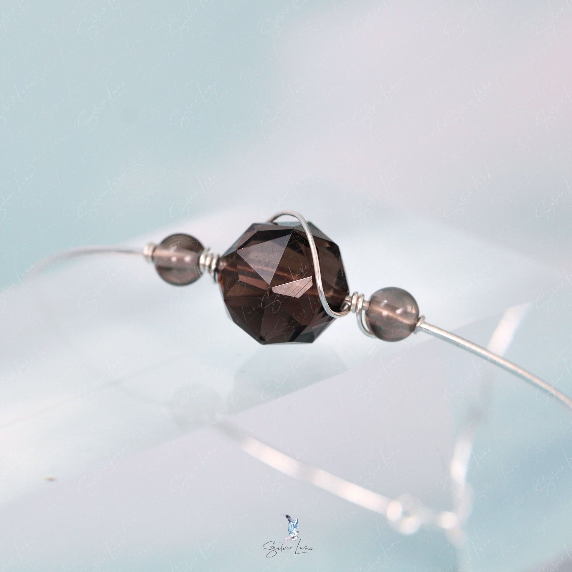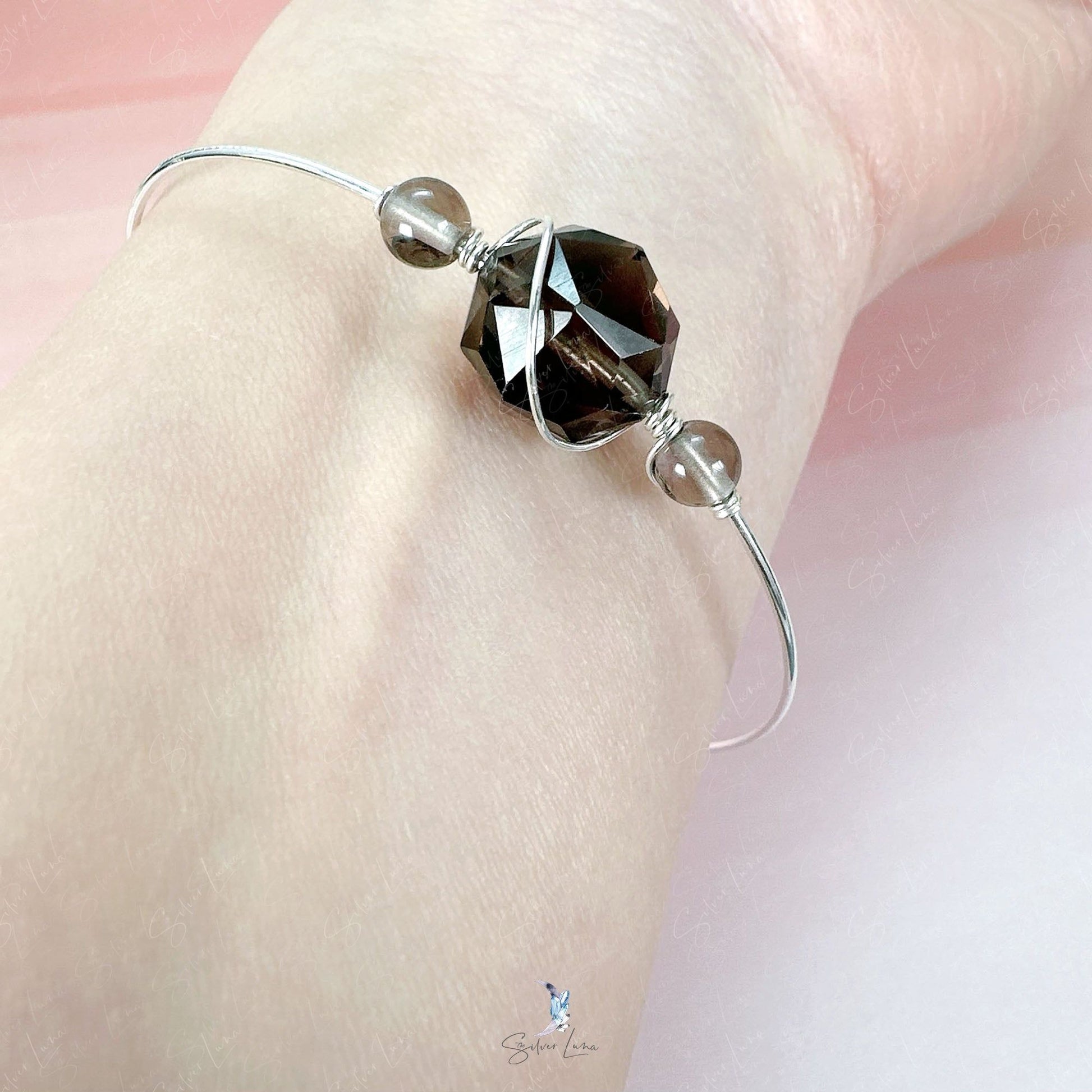 Experience the exquisite beauty of this ice obsidian bead bracelet, featuring a stunning faceted ice obsidian gemstone, two round obsidian beads on each side, and a delicate sterling silver bangle with a wire wrapped around the stone. The AAA quality of the ice obsidian stones and the minimalist yet elegant design make this bangle bracelet the perfect gift for your loved one.