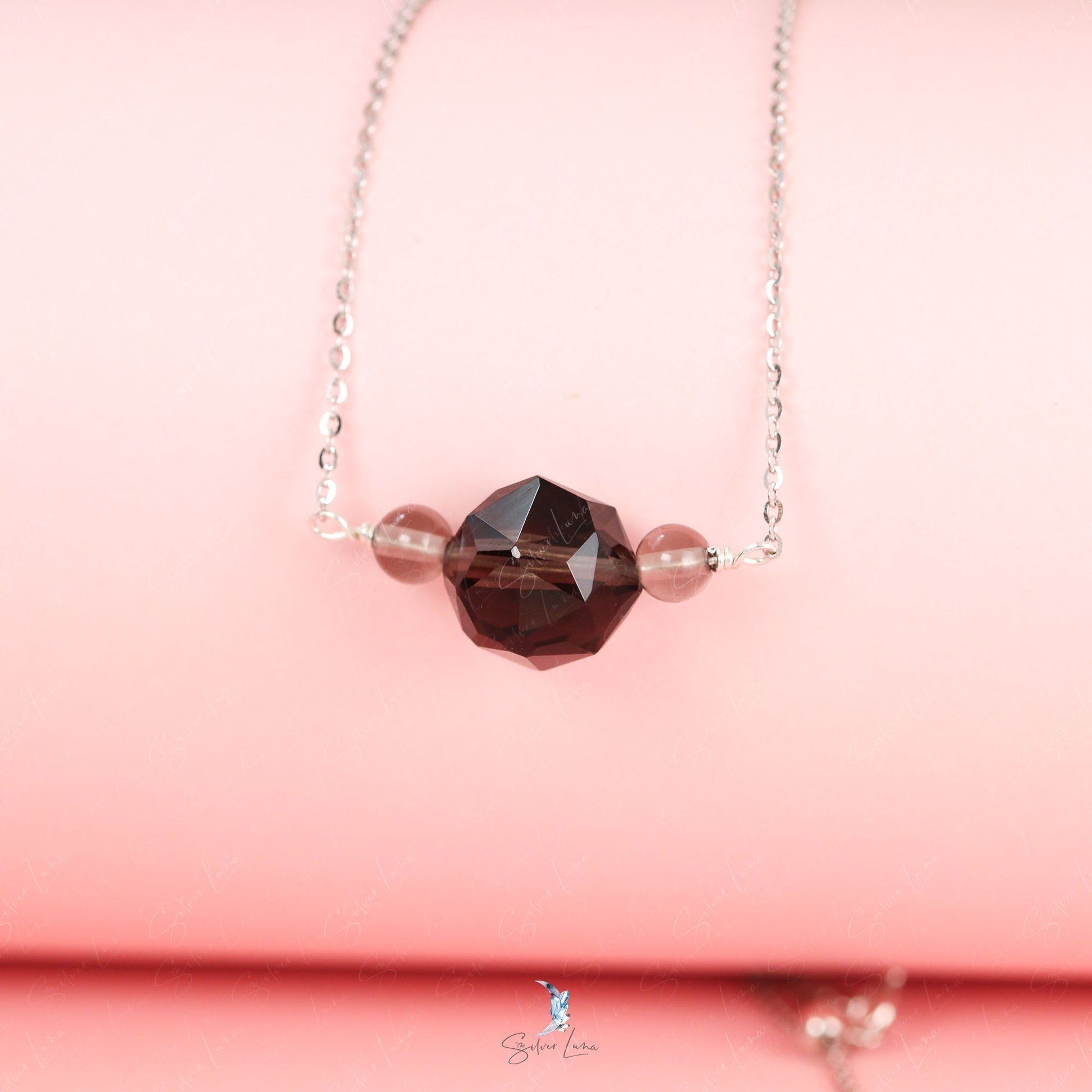 This captivating ice obsidian pendant necklace boasts a striking 12 mm faceted ice obsidian bead flanked by two smaller round ice obsidian beads on a sturdy 925 sterling silver cable chain. Enhance your fine jewelry collection with these one-of-a-kind ice obsidian pendant necklace or surprise your loved one with this exquisite gift.