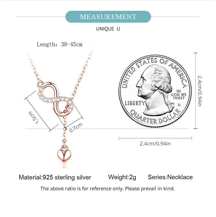This elegant pendant necklace features both an infinity symbol and a heart symbol, both crafted from high-quality sterling silver. The combination of these two symbols represents endless love and commitment, making it the perfect gift for your significant other. The necklace exudes a sense of timeless beauty and sophistication, making it a must-have accessory for any jewelry collection.