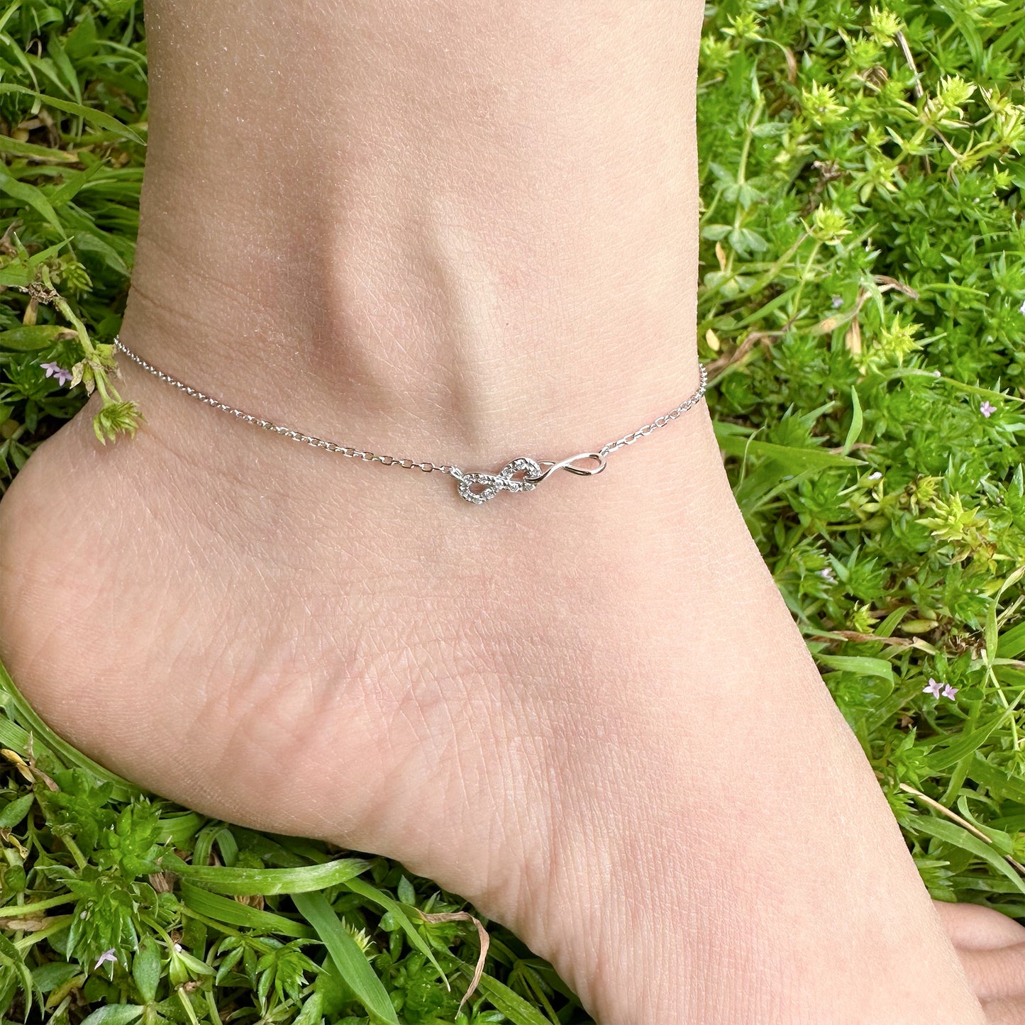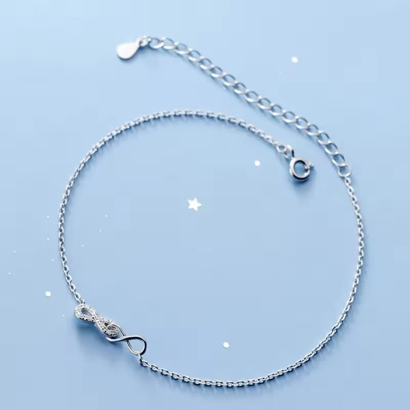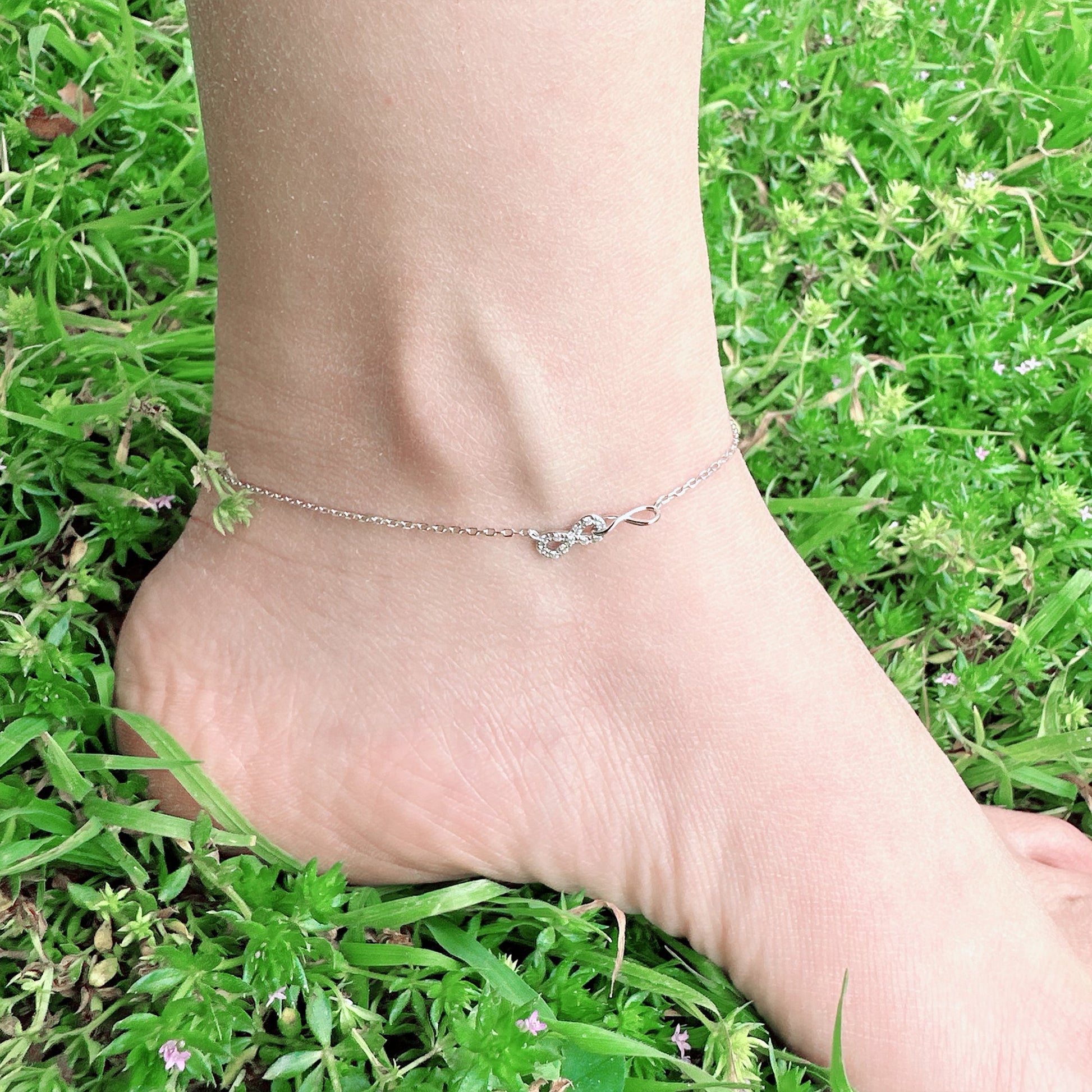 Elevate your style with our Infinity symbol sterling silver ankle bracelet! Made with high-quality sterling silver, this anklet features a timeless and meaningful infinity symbol. Perfect for everyday wear or special occasions, this anklet adds a touch of elegance to any outfit. Show your infinite love and style today!