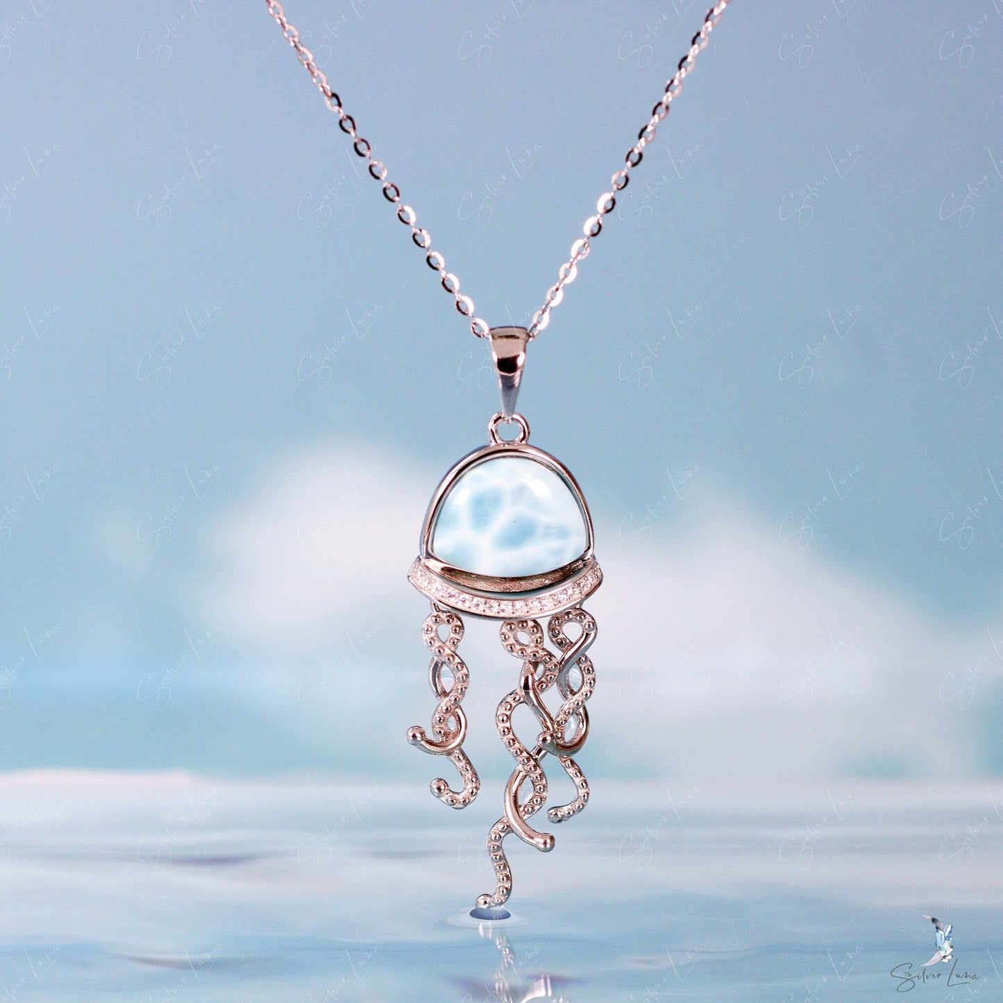 Jellyfish Larimar sterling silver pendant necklace
