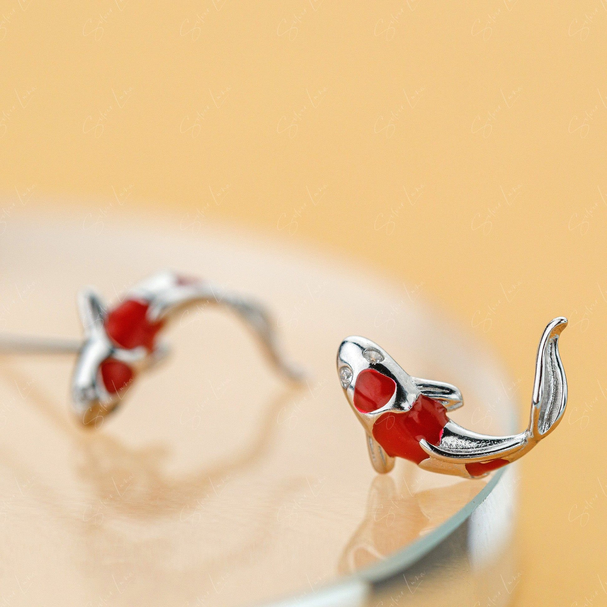 Lucky Koi fish sterling silver stud earrings
