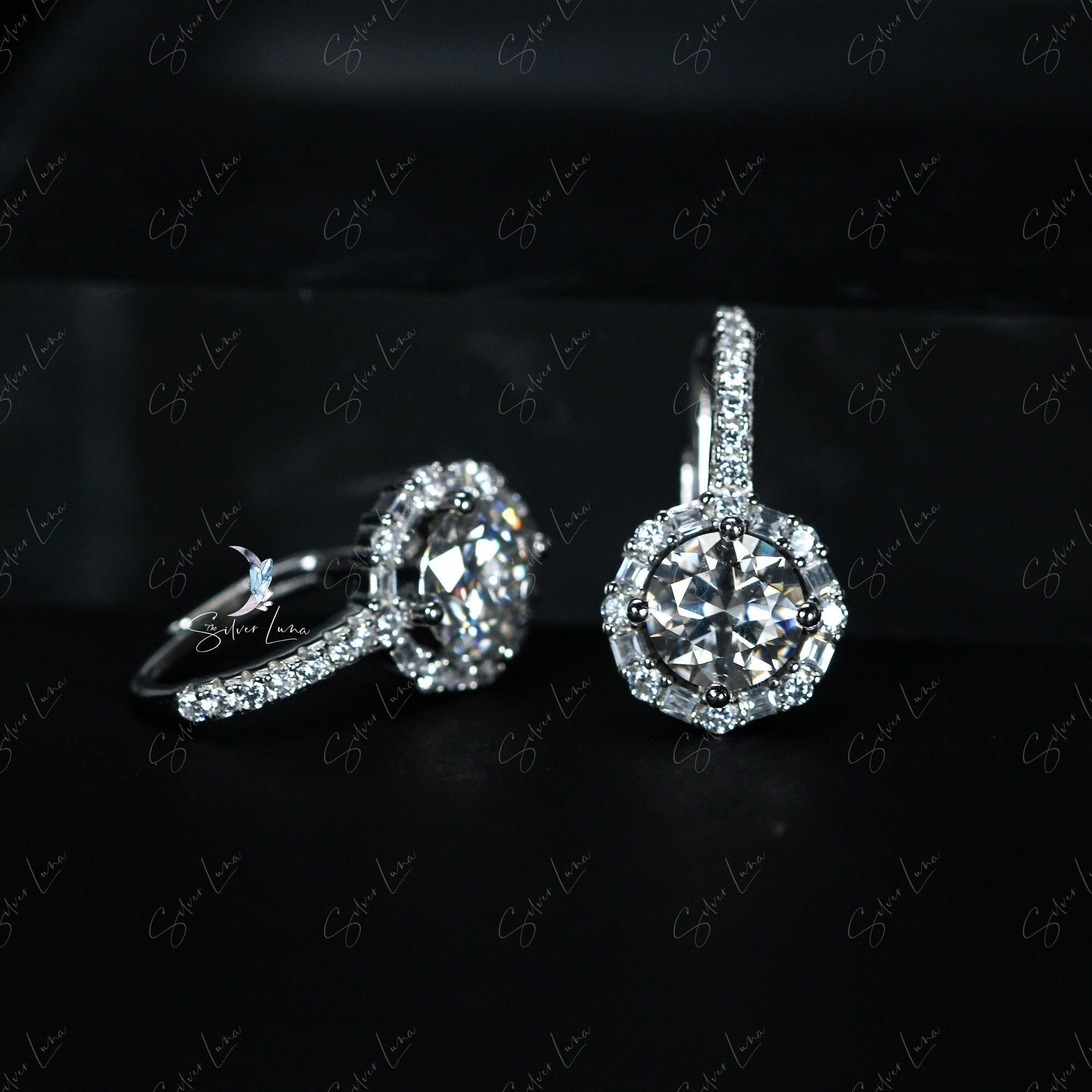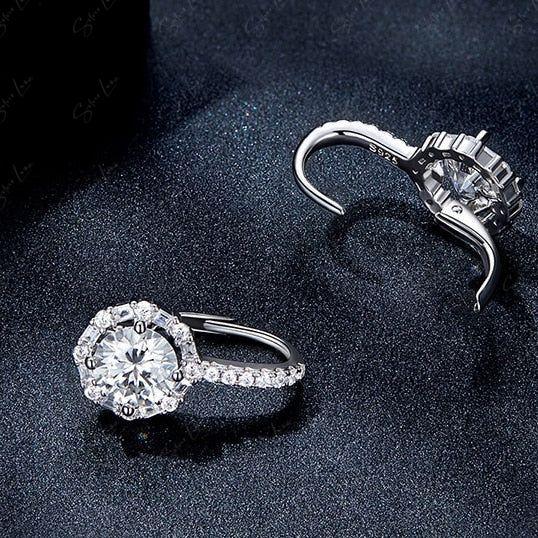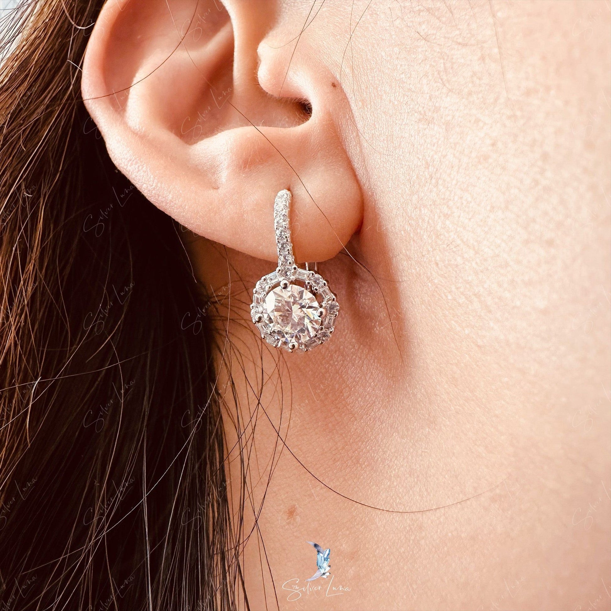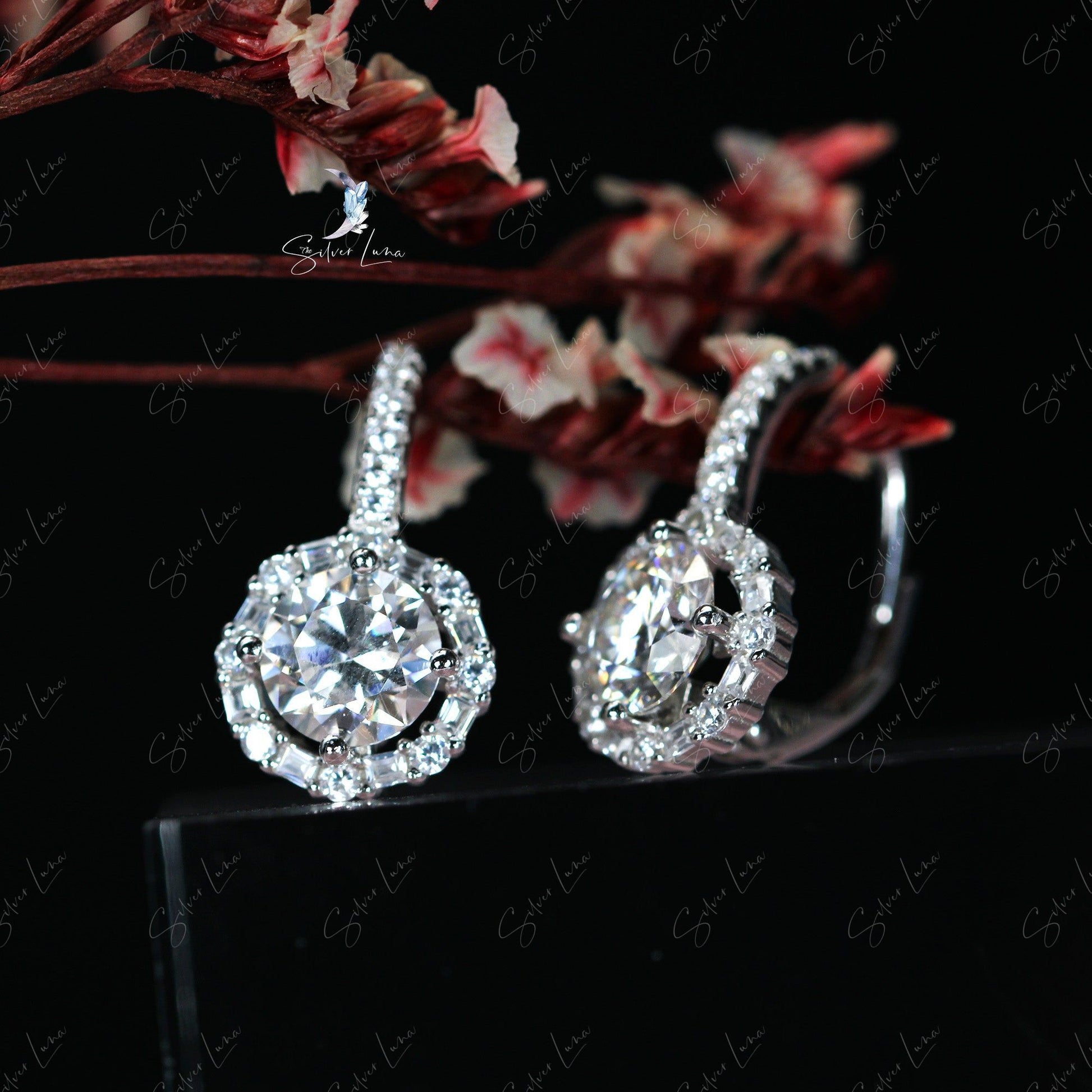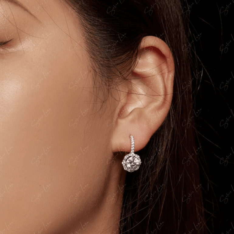 2 CT Moissanite halo latch back hoop earrings in sterling silver
