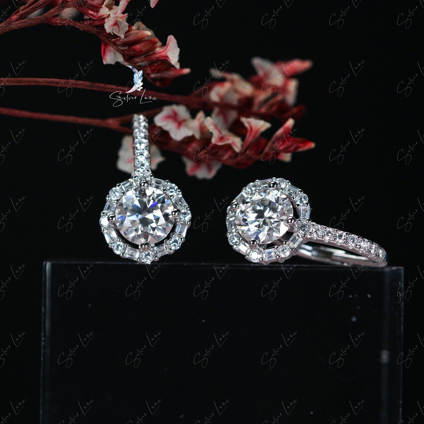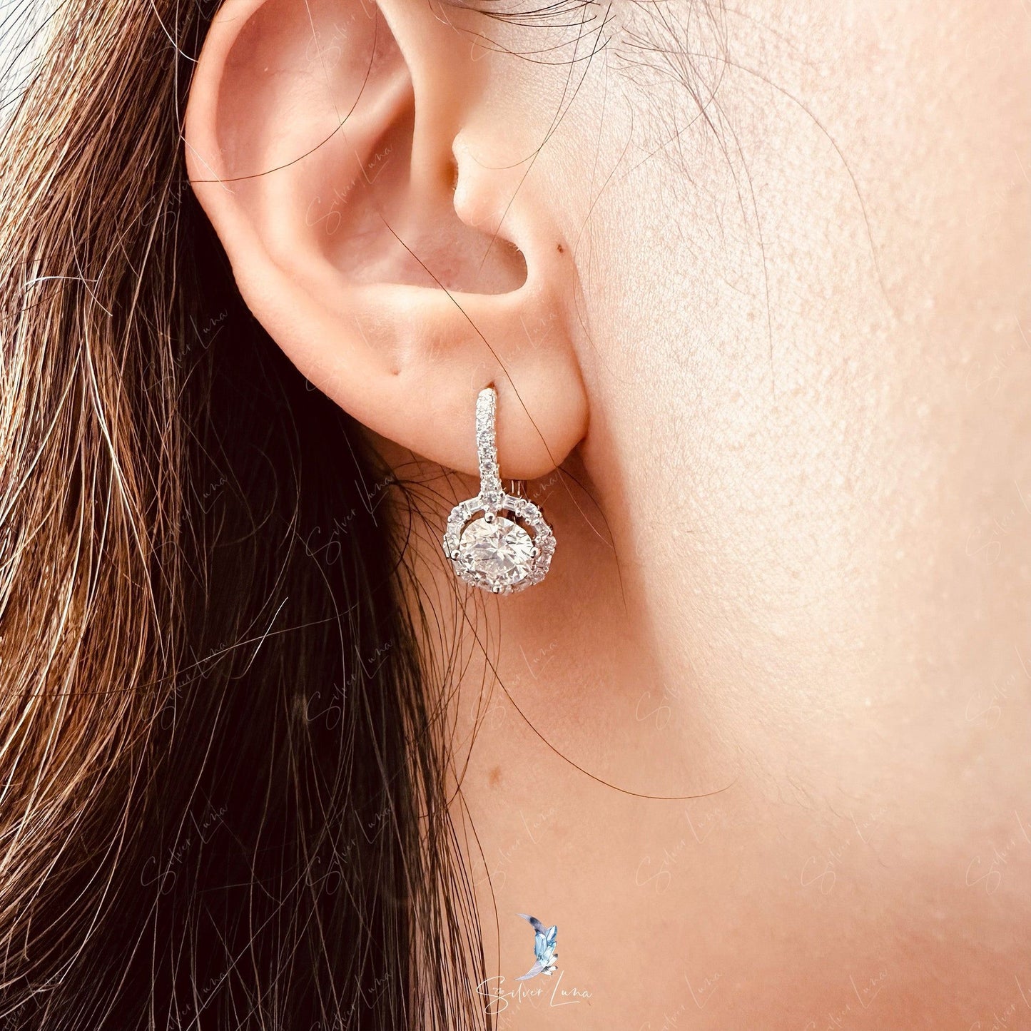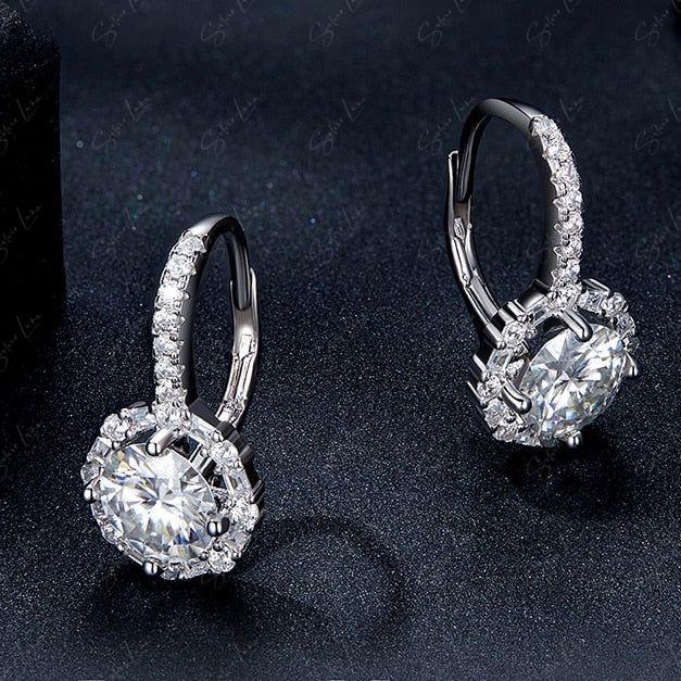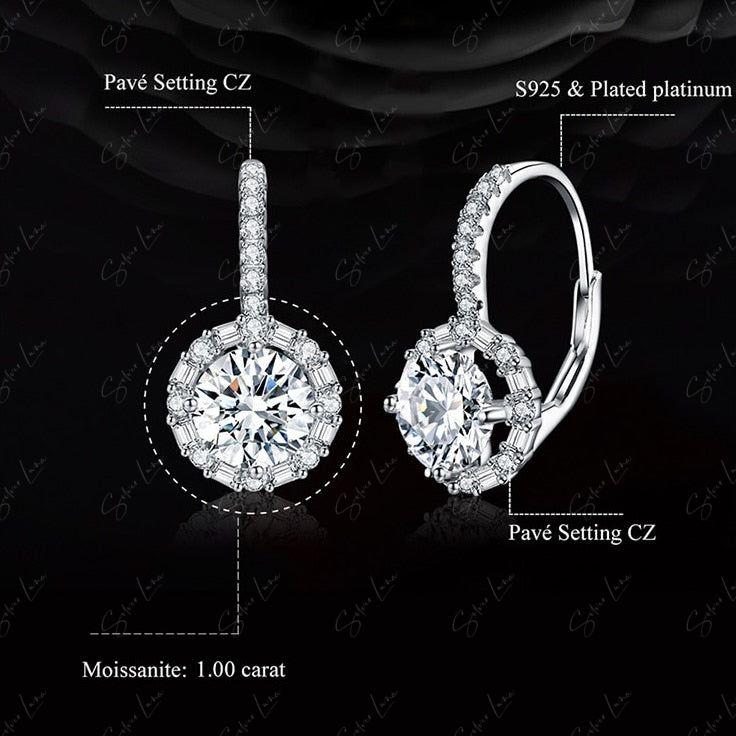 2 CT Moissanite halo latch back hoop earrings in sterling silver