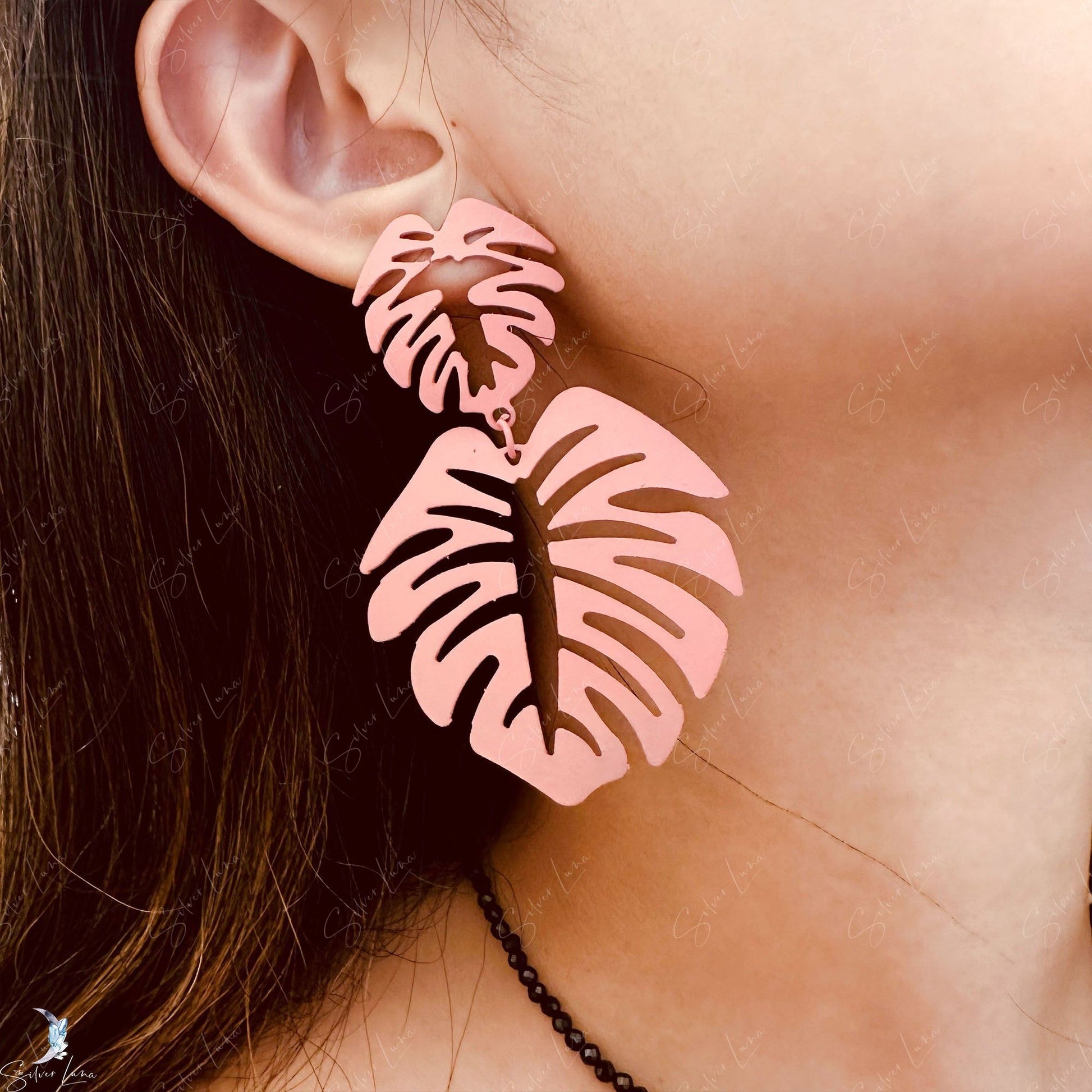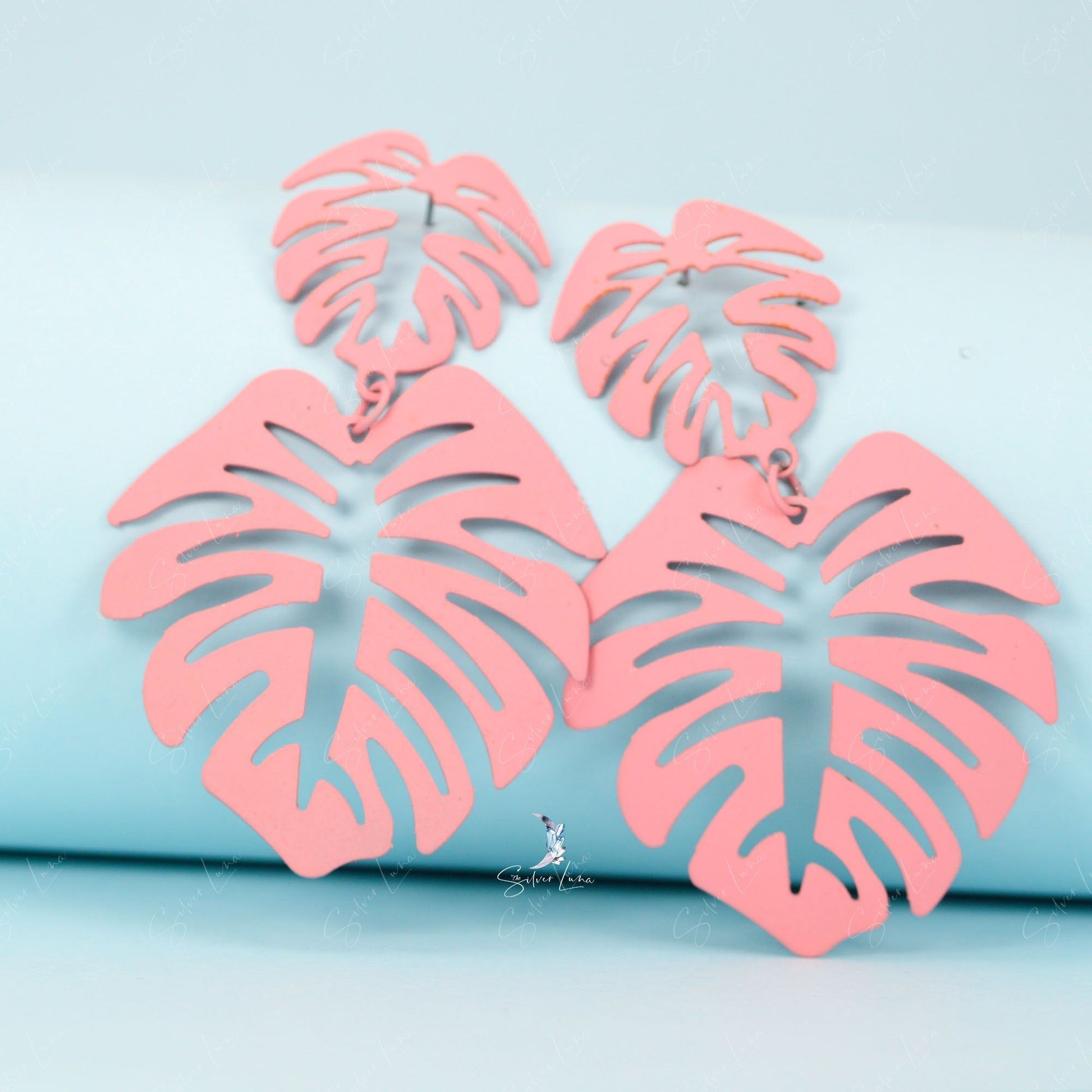 These colorful monstera leaves shape statement earrings are simple in design, made of metal with spray paint colors that can match your own outfit and make you shine. Add these unique statement leaf earrings to your everyday fashion earrings collection or as gift for your love one.