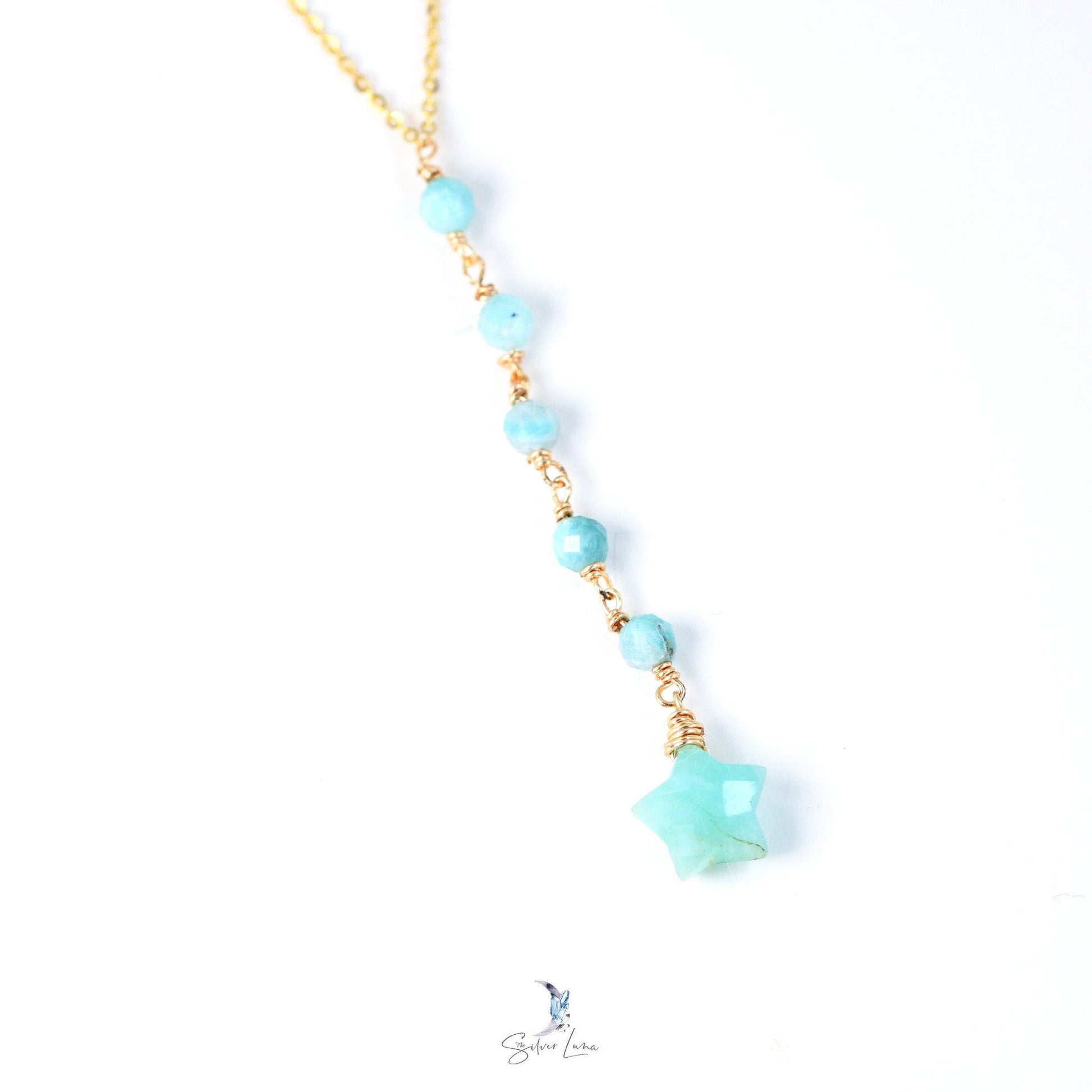 This Amazonite star pendant necklace comes in two colors: silver or gold.