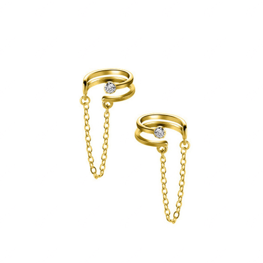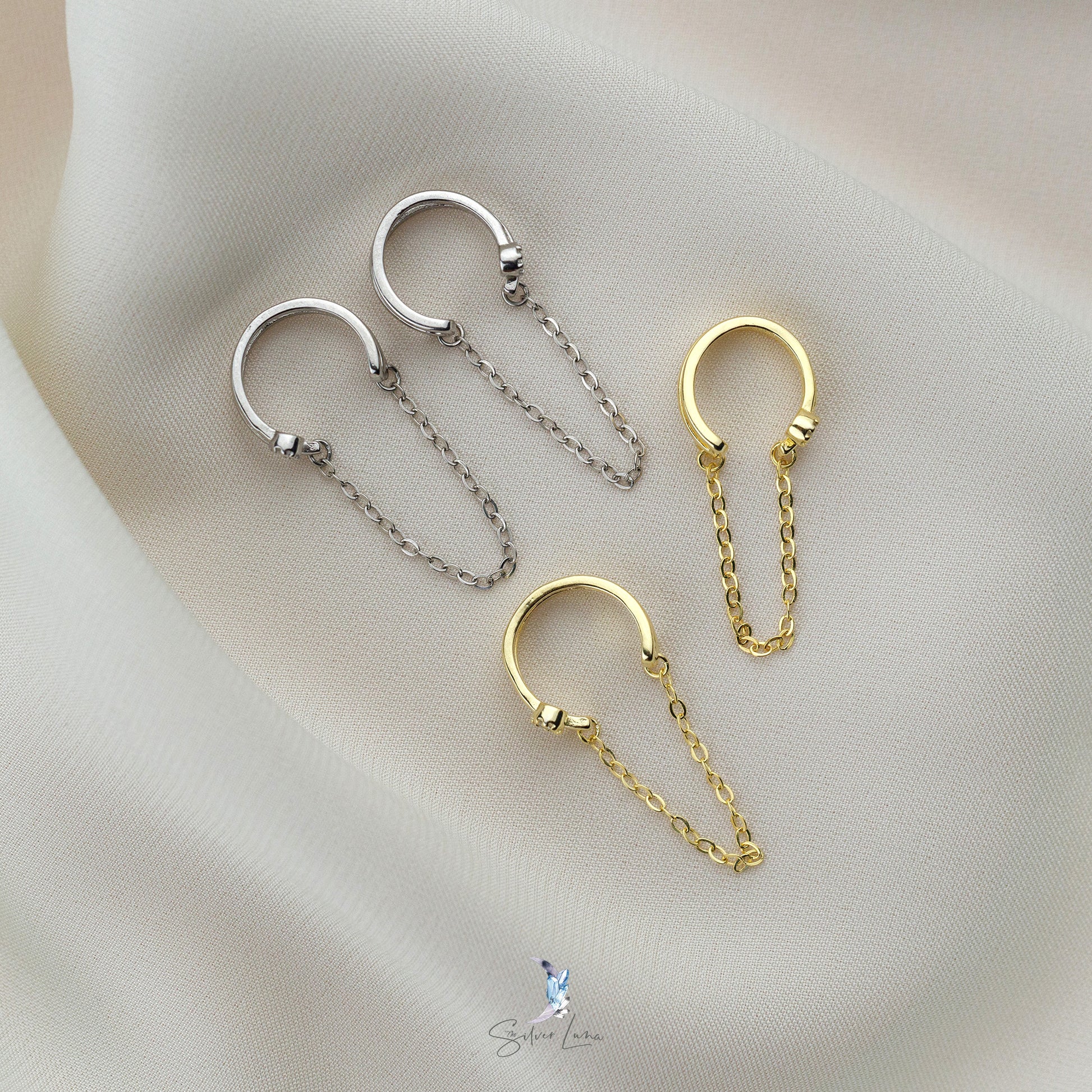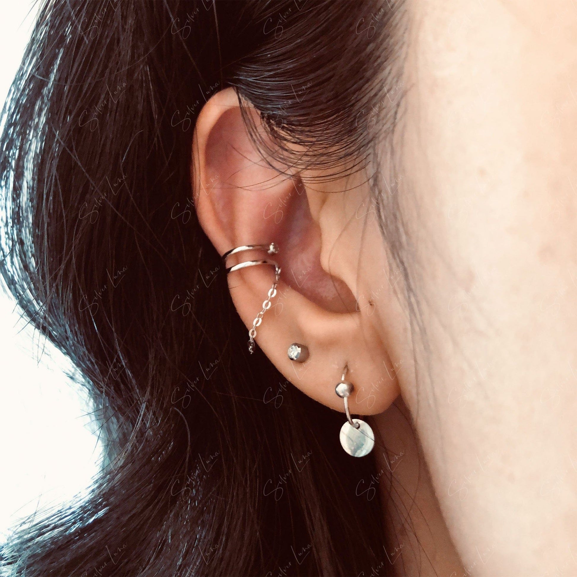 These cute, dainty ear cuff features double cuff with cubic zirconia stone and a dangle chain, made of solid 925 sterling silver, come in silver and gold color. Get the perfect balance of elegance and edge with these stunning non-piercing ear cuffs. Featuring a double cuff design with a sparkling cubic zirconia stone and a delicate dangle chain, these cuffs are crafted from high-quality 925 sterling silver in your choice of silver or gold. Elevate your style and express your unique personality with these eye-catching ear cuffs