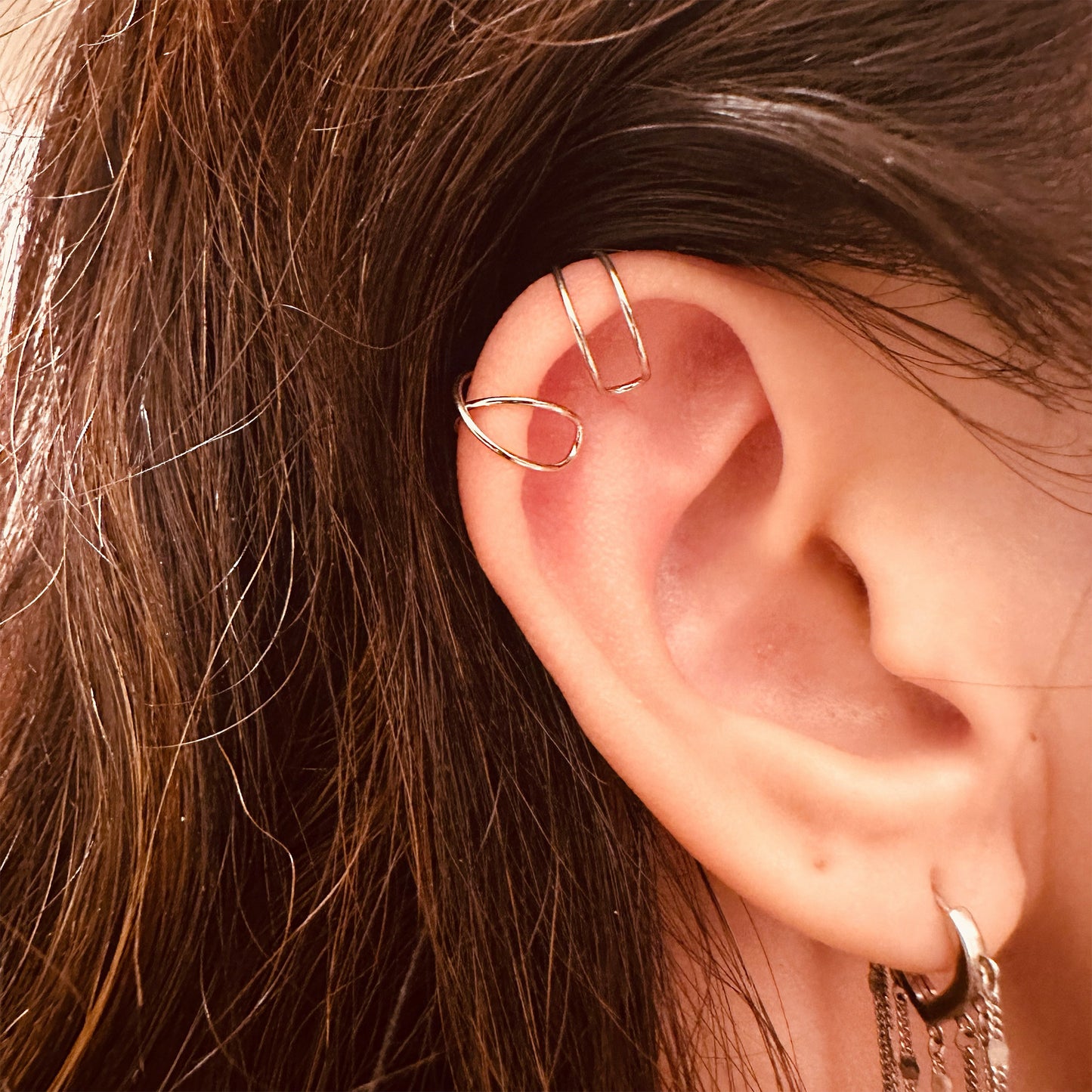 Non piercing simple line ear cuffs in sterling silver