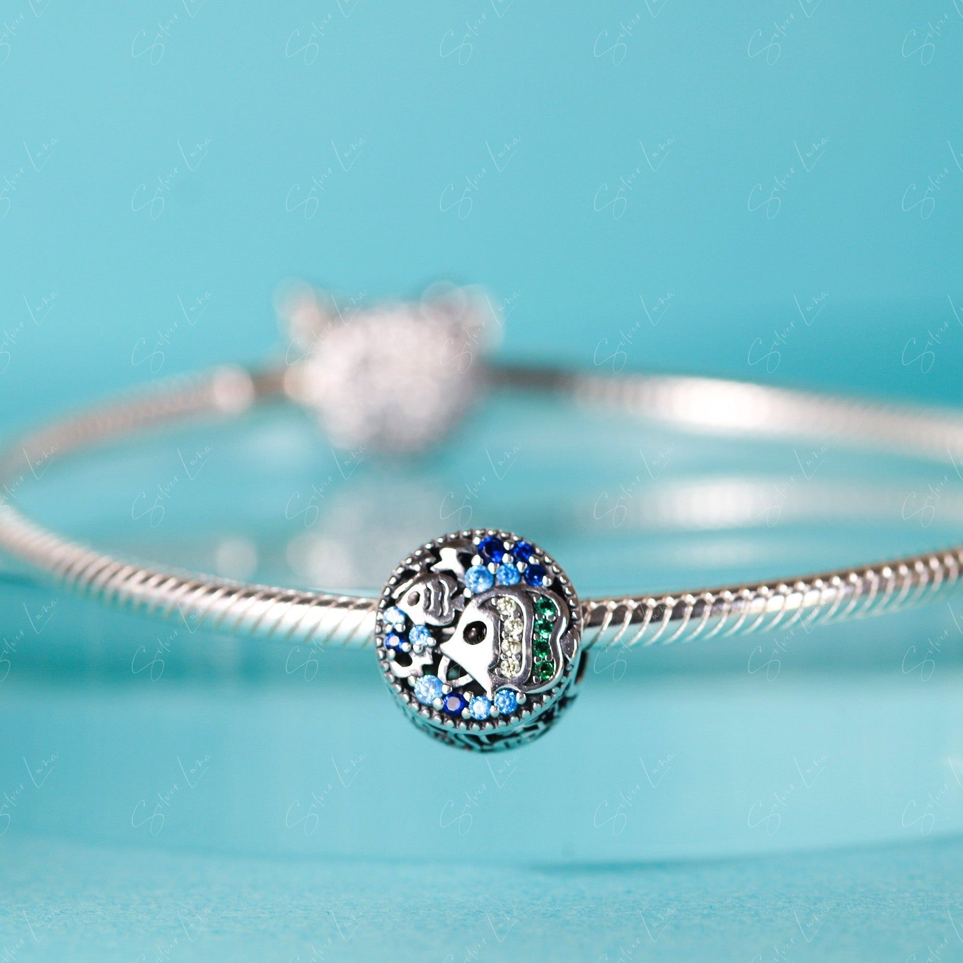 Add a touch of the ocean to your bracelet with our beautifully crafted Ocean Fish Bead Charm. Made with 925 sterling silver and adorned with cubic zirconia gemstones, this charm boasts a high-end look and long-lasting shine. Incorporate this charm into your bracelet for a unique and stylish addition to your collection.
