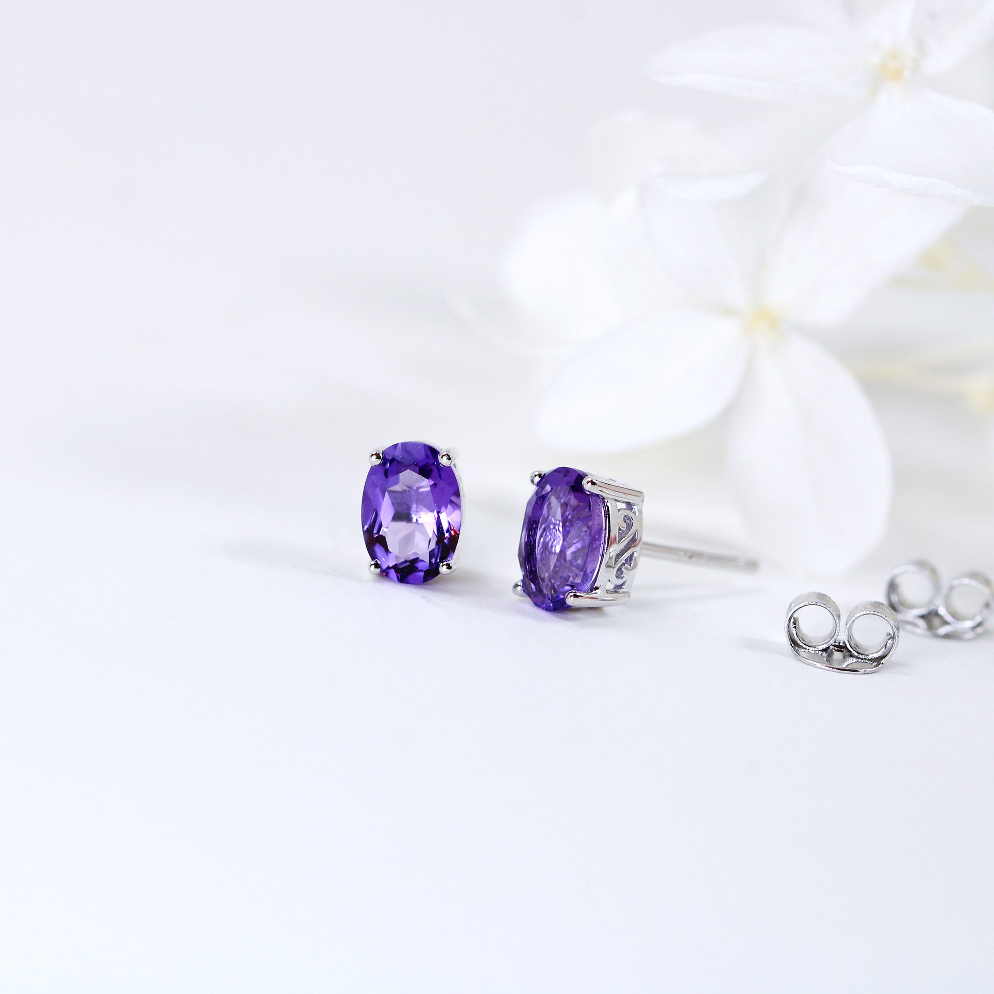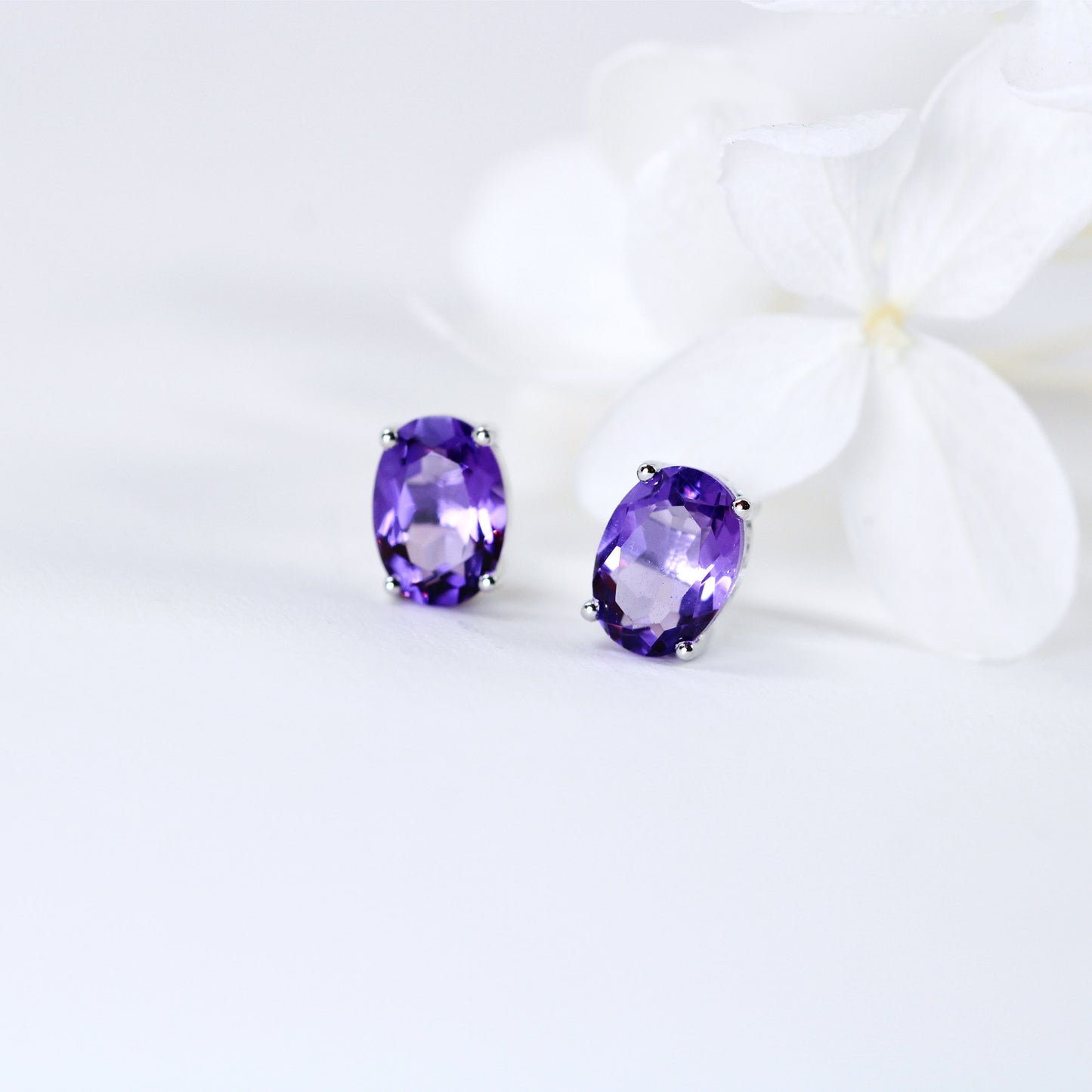 Introducing our Oval Natural Amethyst Sterling Silver Stud Earrings, featuring egg-shaped natural Amethyst stones set in 925 sterling silver. Experience the luxury and elegance of these unique earrings, perfect for any occasion. Elevate your style with the timeless beauty of Amethyst.