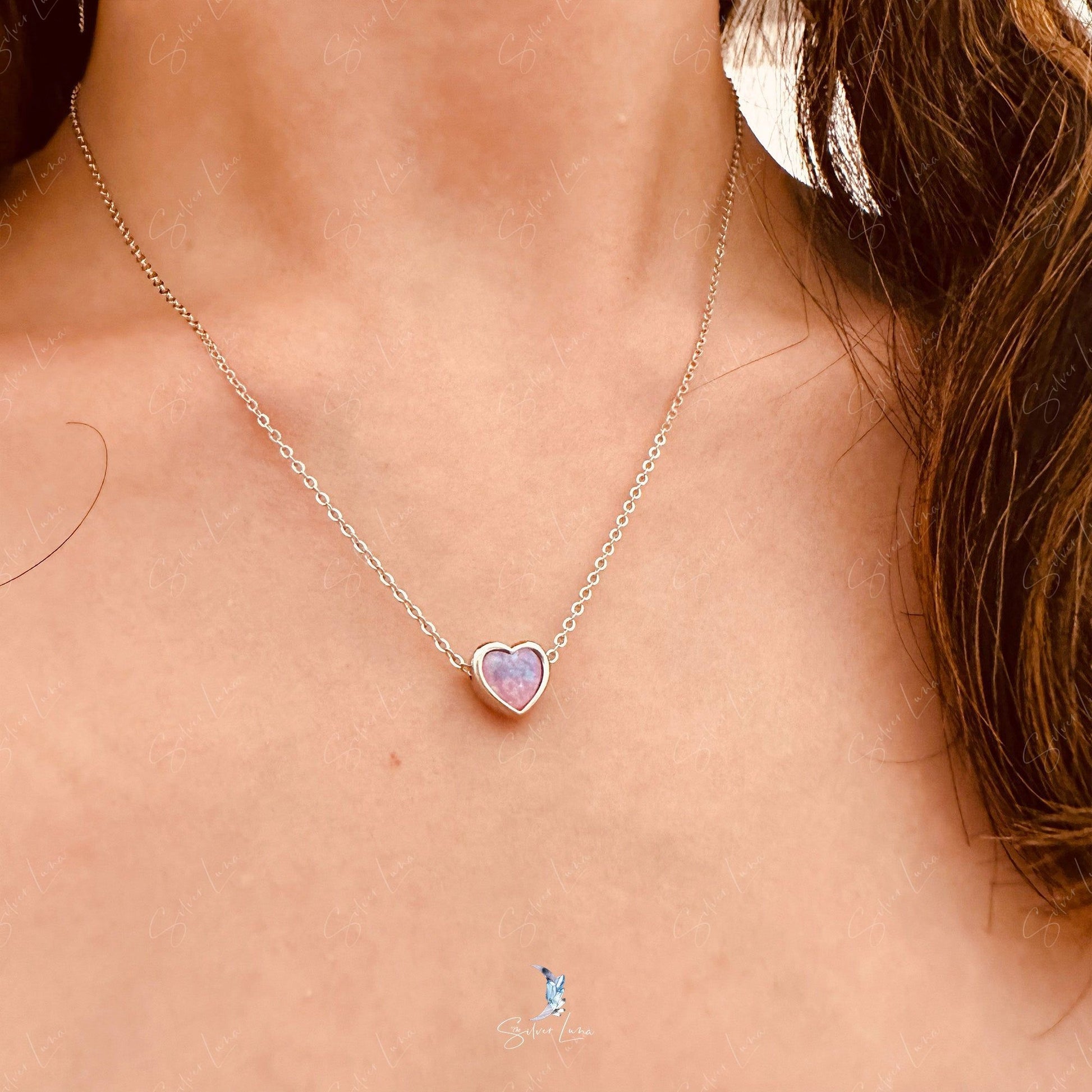 Add a touch of charm to your jewelry collection or surprise your loved one this Valentine's with this stunning Purple opal heart pendant necklace. The delicate heart-shaped pendant is adorned with beautiful purple opal and hangs on a dainty cable chain. Made of solid 925 sterling silver with platinum plating, it is a timeless piece that can be adjusted to fit comfortably at 43.5 cm.