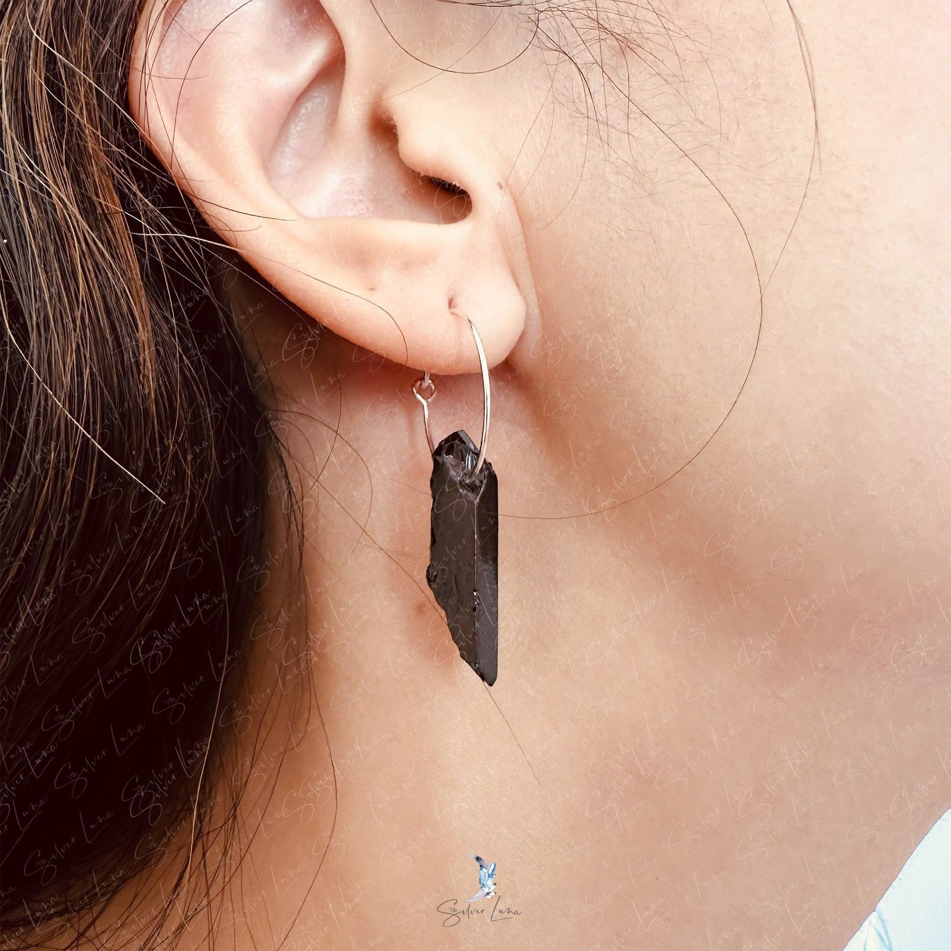 Quartz crystal sterling silver hoop earrings