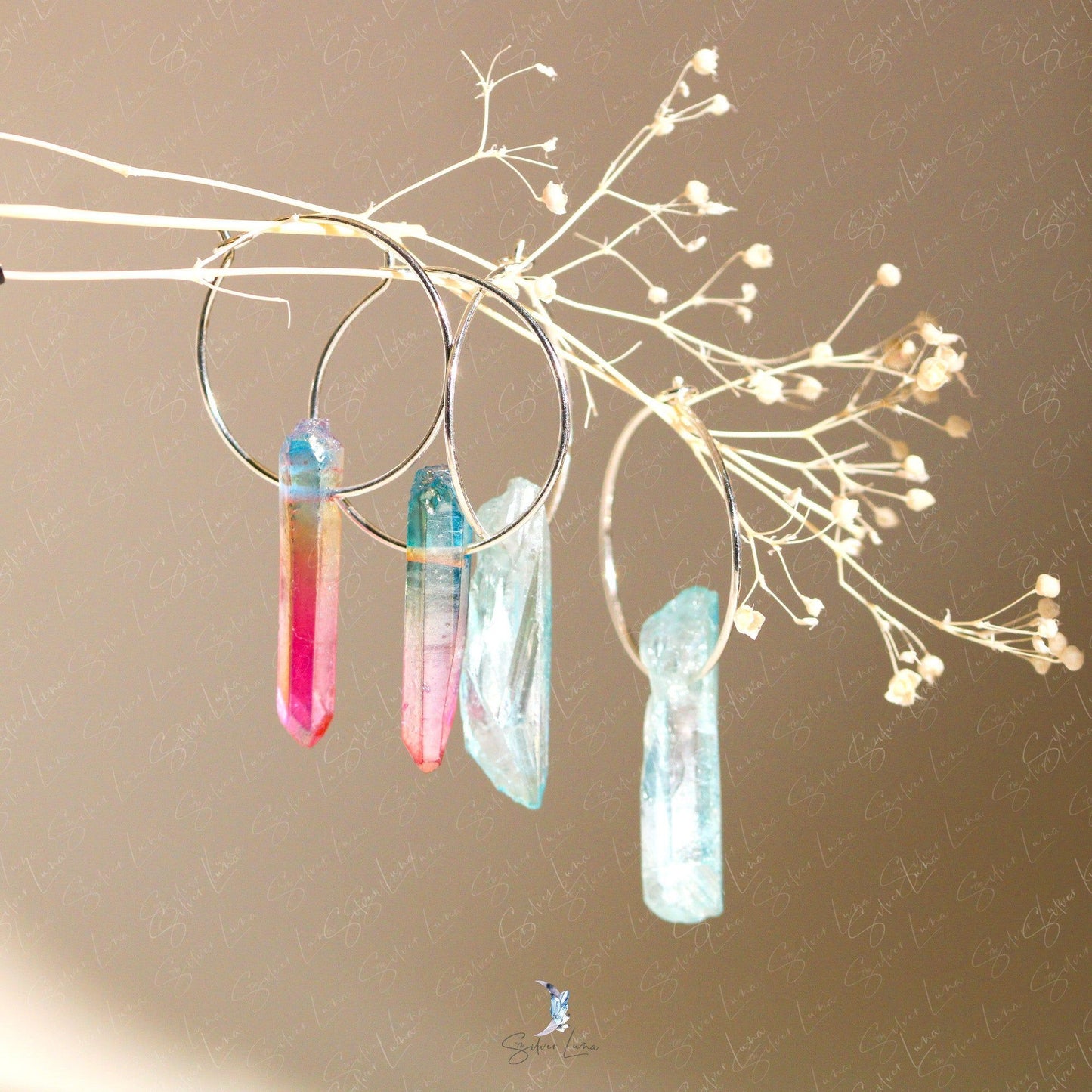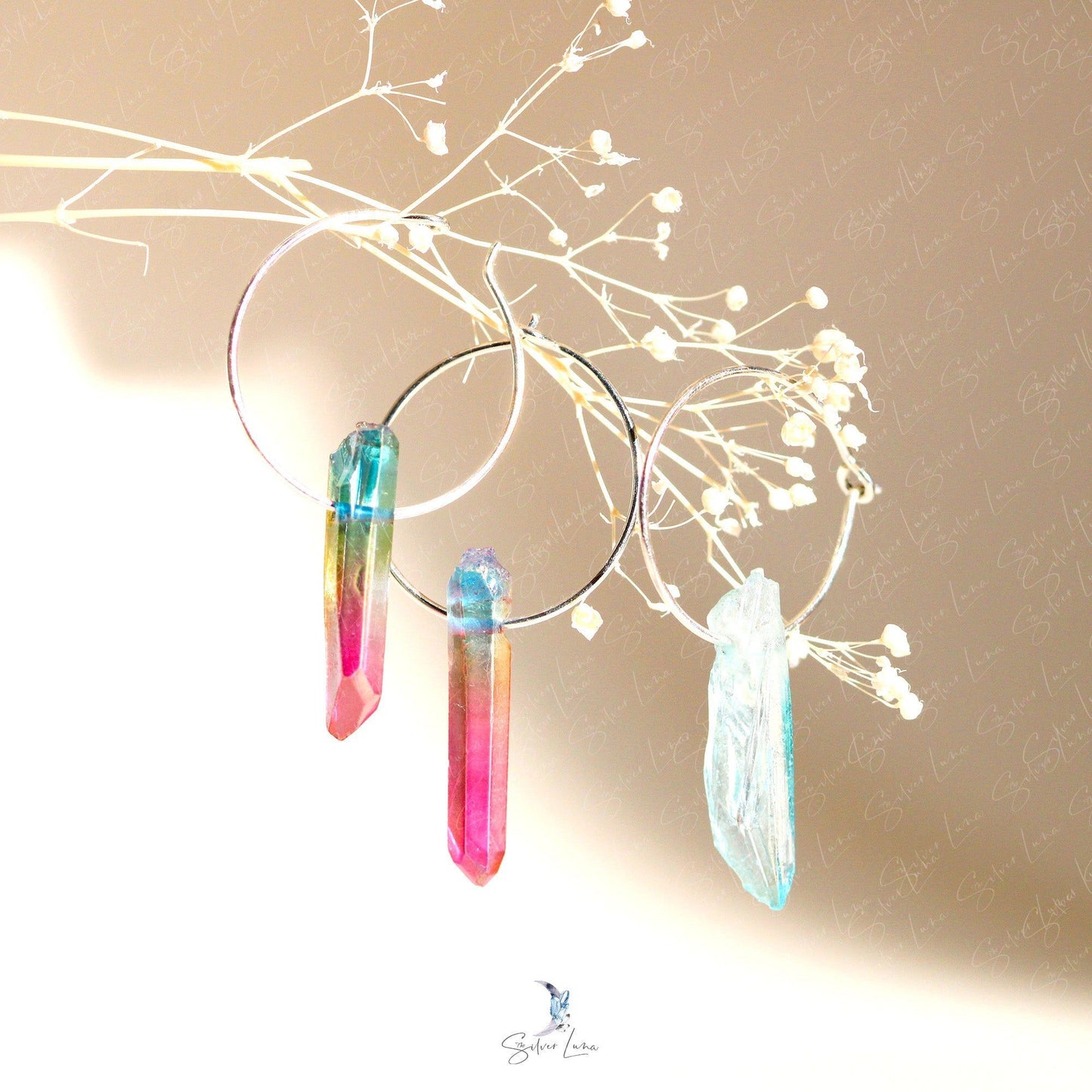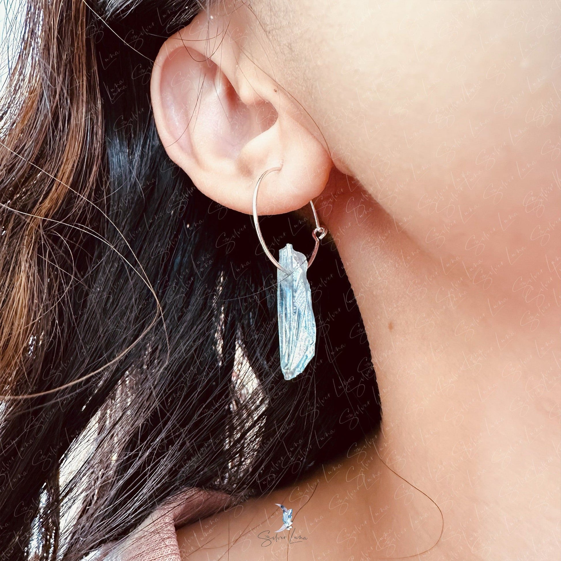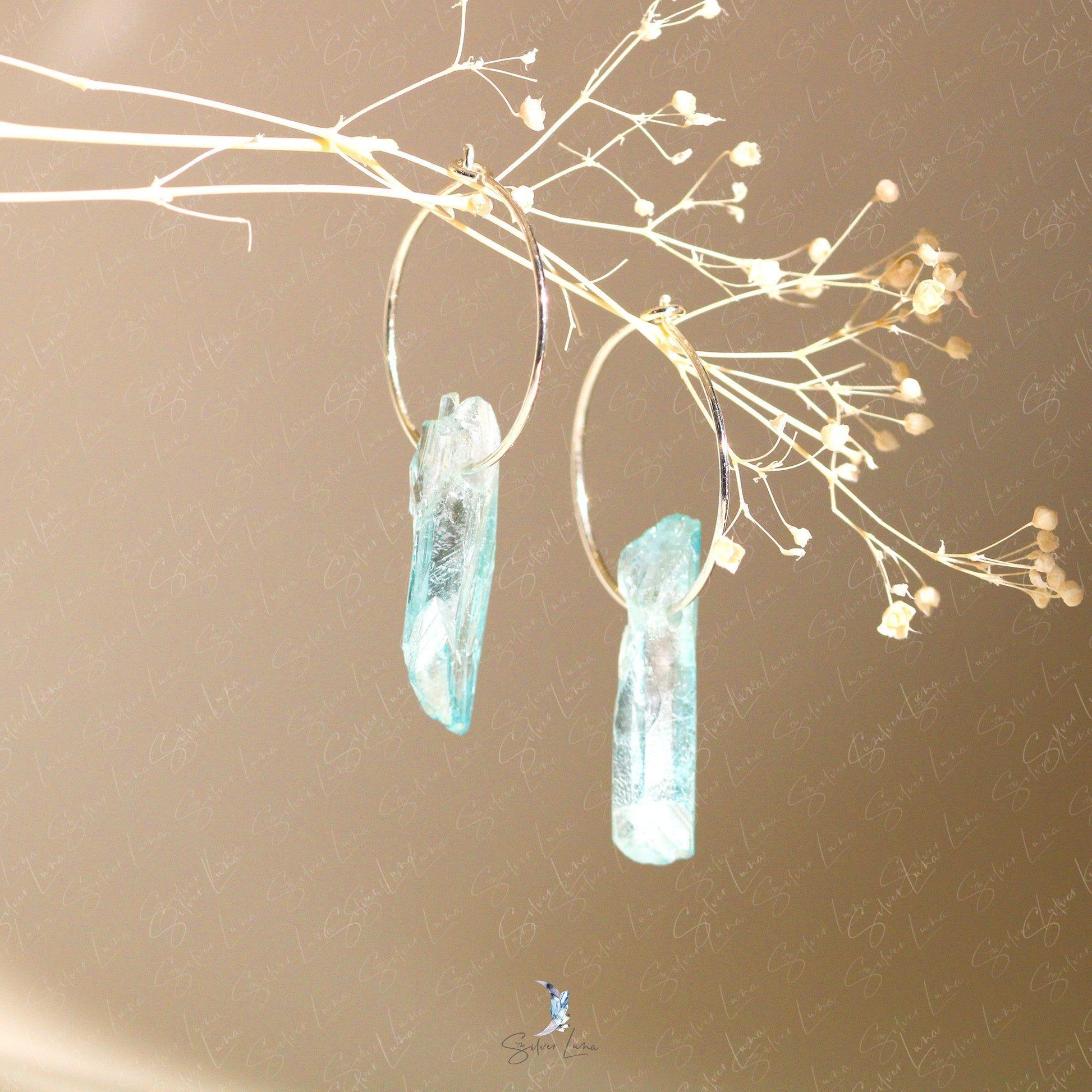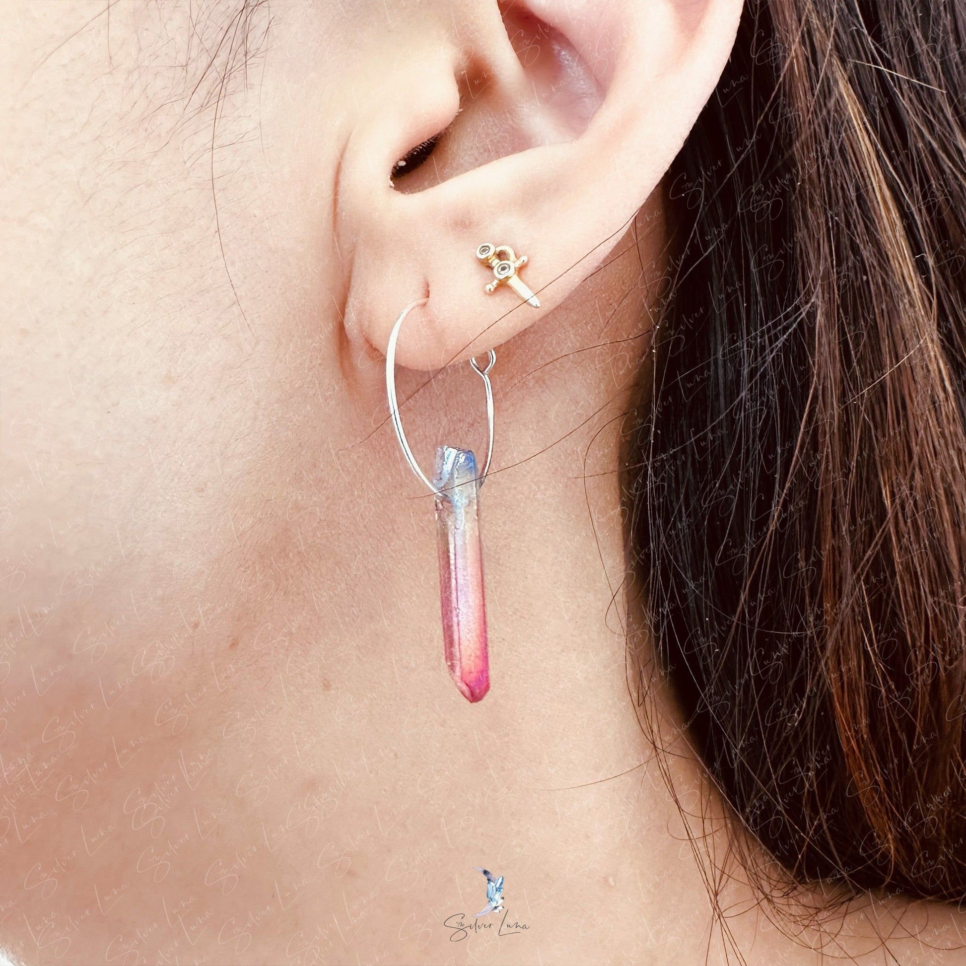 Let these minimalist hoop earrings be your daily reminder of the power of quartz crystal. Made from 925 sterling silver, each earring features a simple wire hoop closure and a rainbow or blue quartz crystal drop. Quartz is a common mineral on Earth, but don't underestimate its benefits - it can help with manifesting, healing, meditation, protection, and channeling. Wear these earrings and channel your inner strength and balance, or gift them to a loved one as a symbol of their own power. Harness the healing power of quartz with these stunning hoop earrings.