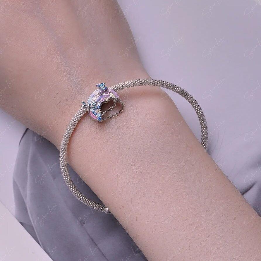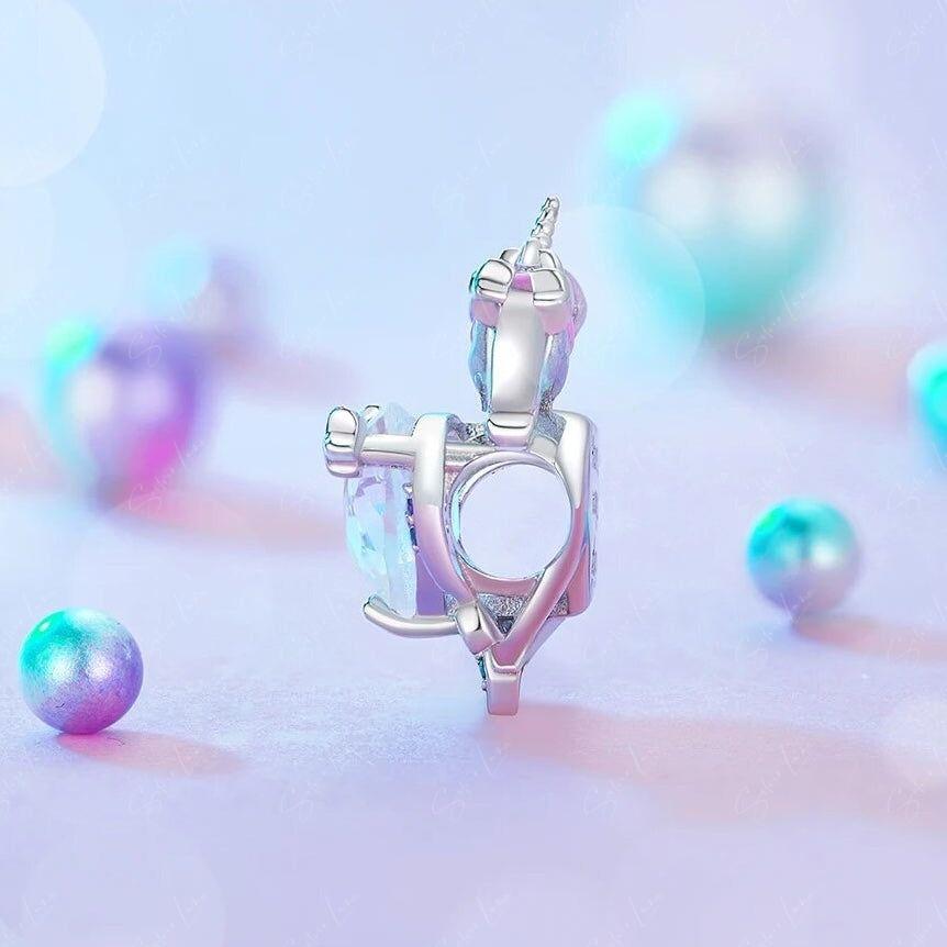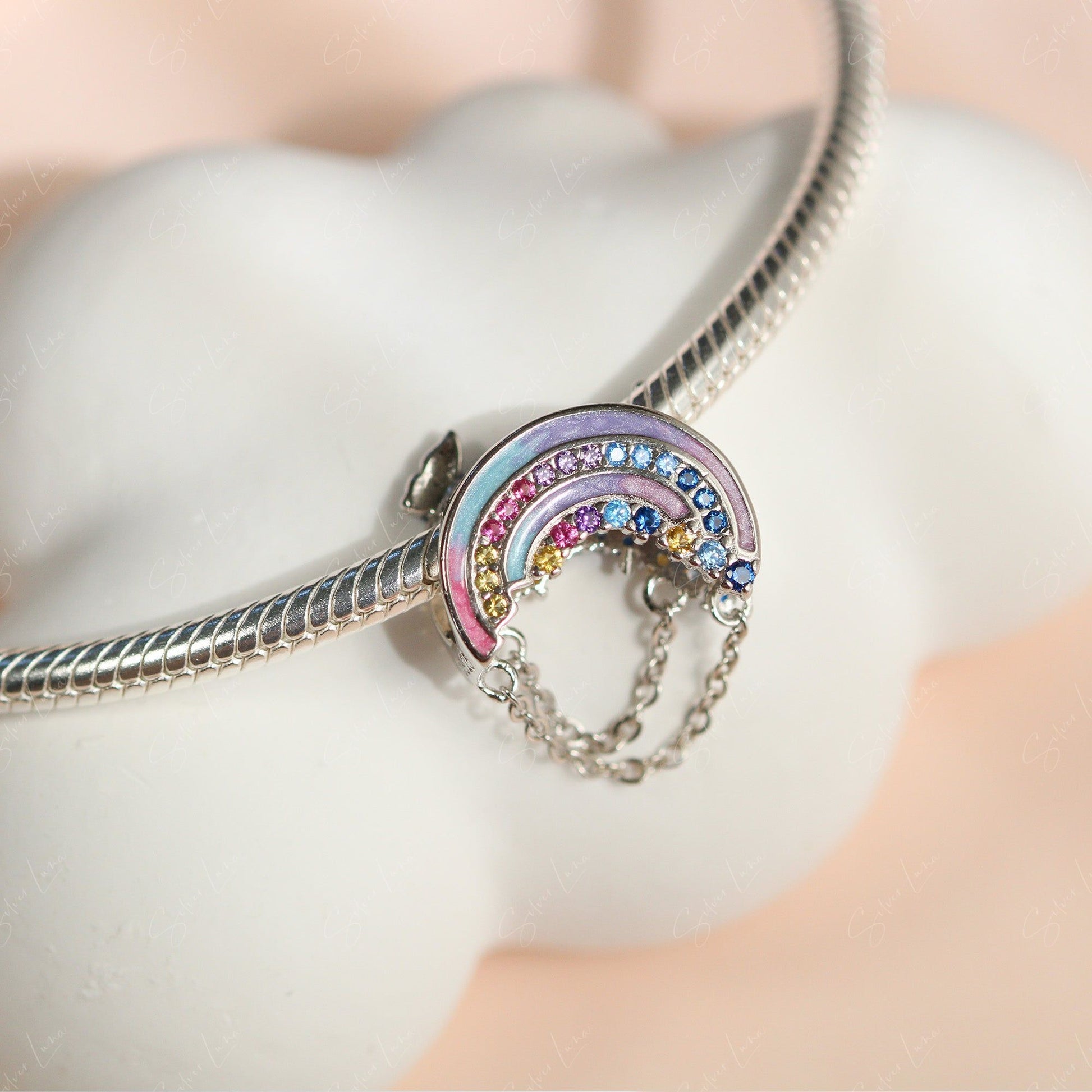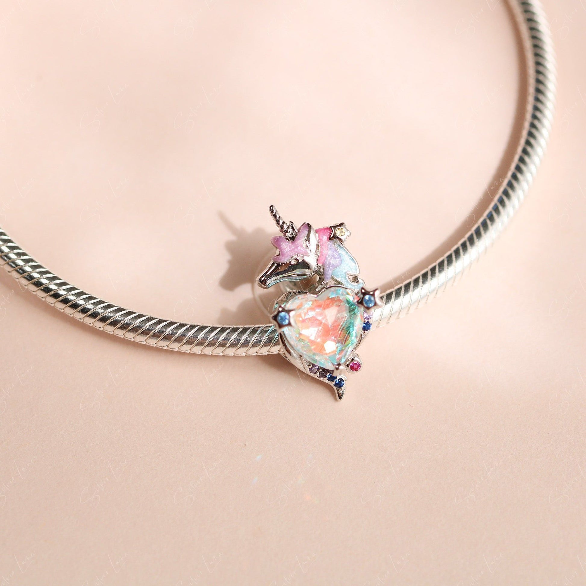 These rainbow and unicorn theme charms feature a unicorn heart shape crystal bead charm, an enamel rainbow charm with chain pendant, a rainbow color moon and planet bead charm. These charm are made of solid 925 sterling silver, high quality crystal, cubic zirconia and enamel color decoration to give them luxury look and great details. Adorn your charm bracelet with a touch of fantasy and luxury! These high-quality rainbow and unicorn charms feature intricate details, sparkling crystals, and vibrant enamel color decorations that will add a magical touch to your jewelry collection. Made with solid 925 sterling silver and premium materials, these charms are not only visually stunning but also durable and long-lasting. Transform your bracelet into a whimsical wonderland with these must-have charms!