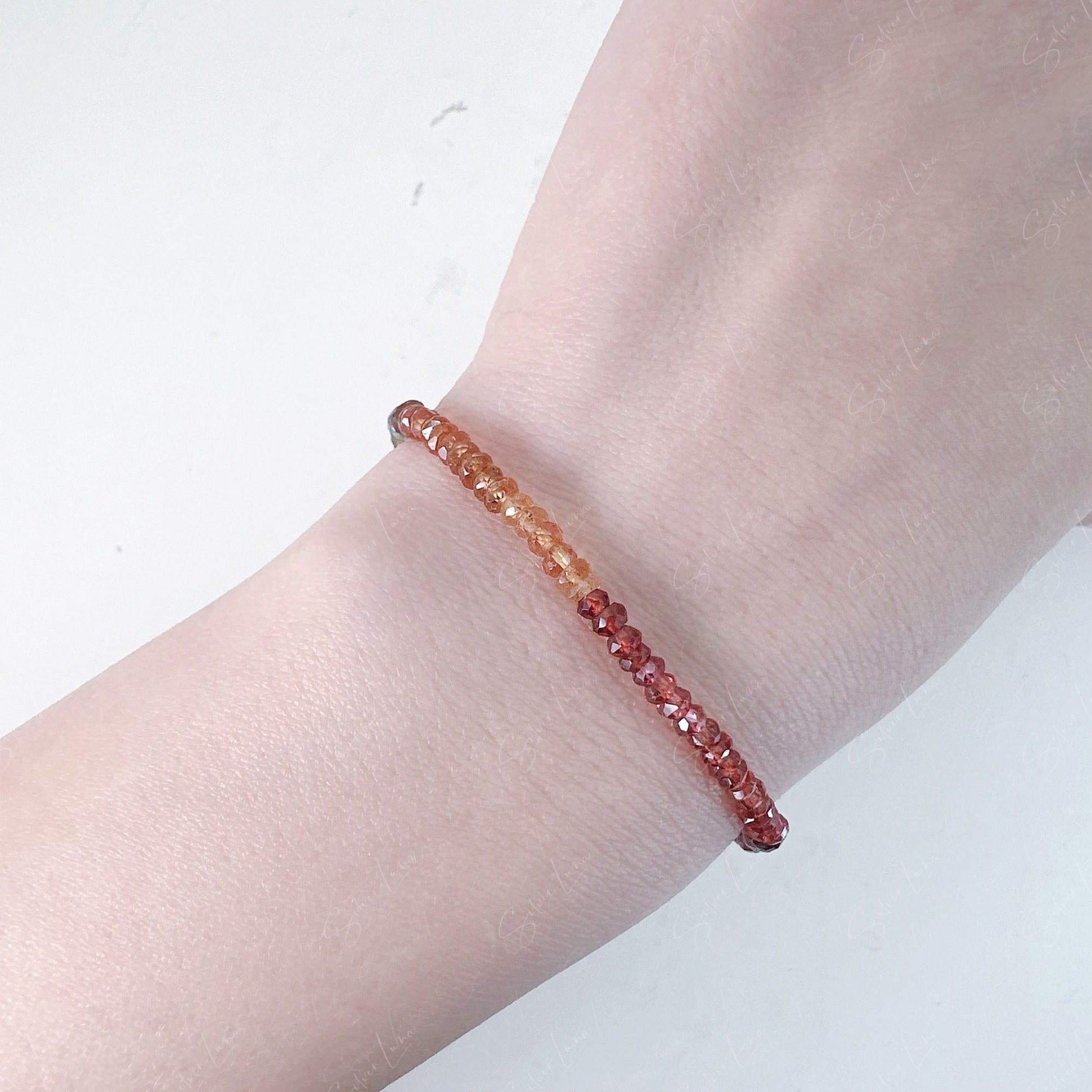 This rainbow ombre garnet bracelet puts vibrant color and effortless style on your wrist. Handcrafted from 925 sterling silver and faceted garnet gemstones in a blend of colors from deep reds to sunny oranges, it radiates joy with every movement. The adjustable chain means a perfect fit for any wrist size, while the multi-hued garnets add a pop of visual interest whether you pair it with denim or cocktail attire. Garnet, the birthstone of January, is known for bringing love, passion and warmth to the wearer - qualities this bracelet embodies in its lively color palette and handmade details. Slip it on and let the rich hues transport you to a state of stylish happiness.