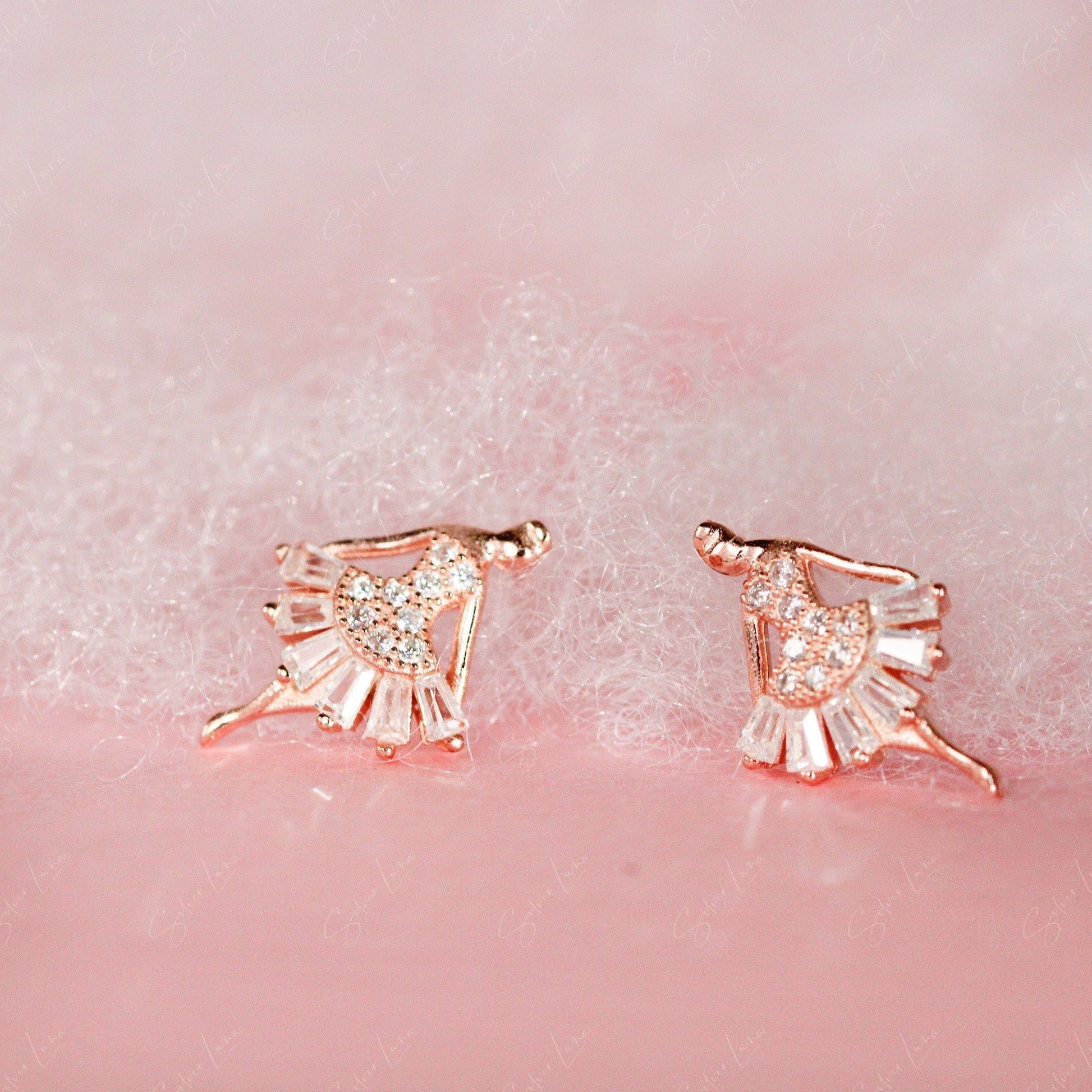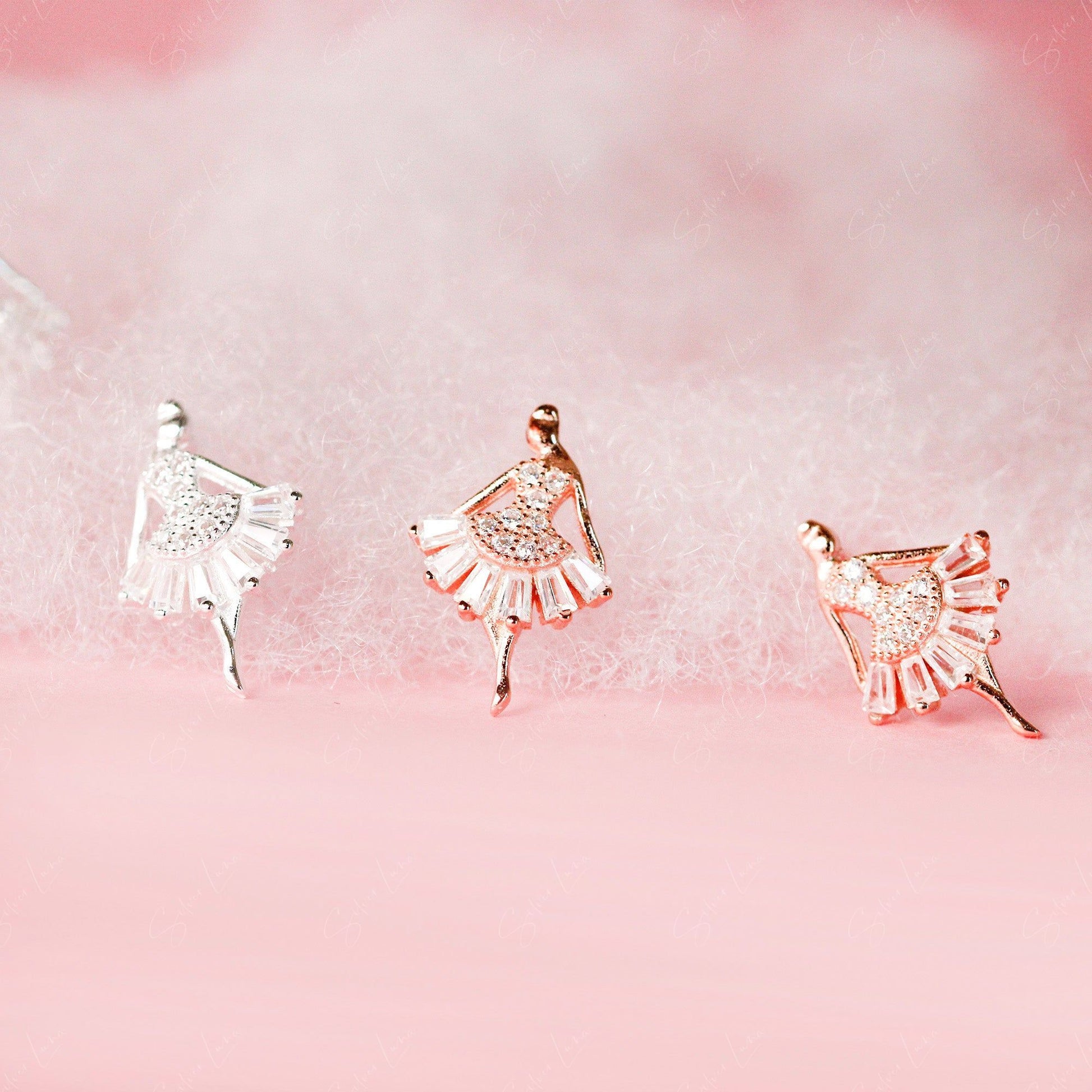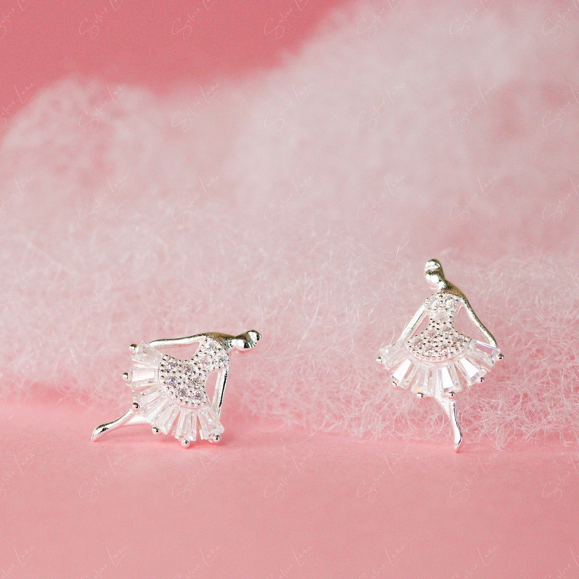 These ballet dancer stud earrings will ignite your inner ballerina while adding a touch of sparkle to any outfit. Crafted from lustrous sterling silver with a cubic zirconia pave that maximizes light reflection, these studs feature a dancing figure design that pays tribute to the grace and elegance of ballet. The sterling silver blend ensures a shine that lasts, while the high polish finish accentuates the delicate details of the ballerina motif. Slip them on for a playful hint of whimsy that elevates your everyday style in an instant. Whether you love all things dance or simply appreciate feminine pieces with a story, these ballet dancer earrings will speak to your creative and spirited side each time you catch a glimpse in the mirror.