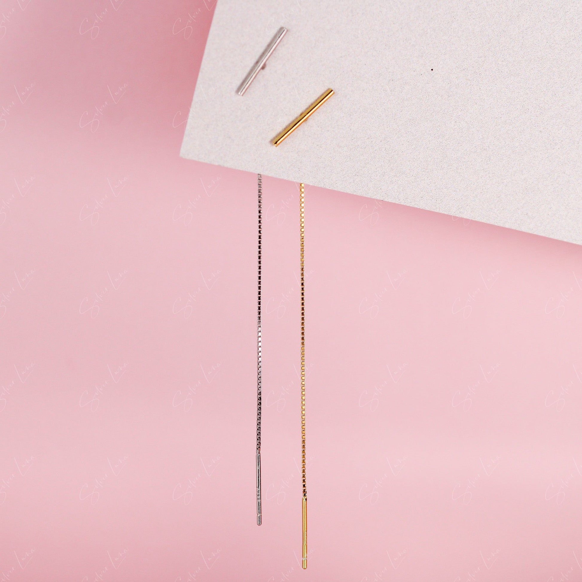 These Silver stick ear threader earrings are a must-have for any fashion-forward individual. Made with high quality materials, including solid 925 sterling silver and gold or platinum plating, these earrings are both durable and stylish. Enjoy the comfort of the box chain design, perfect for everyday wear.