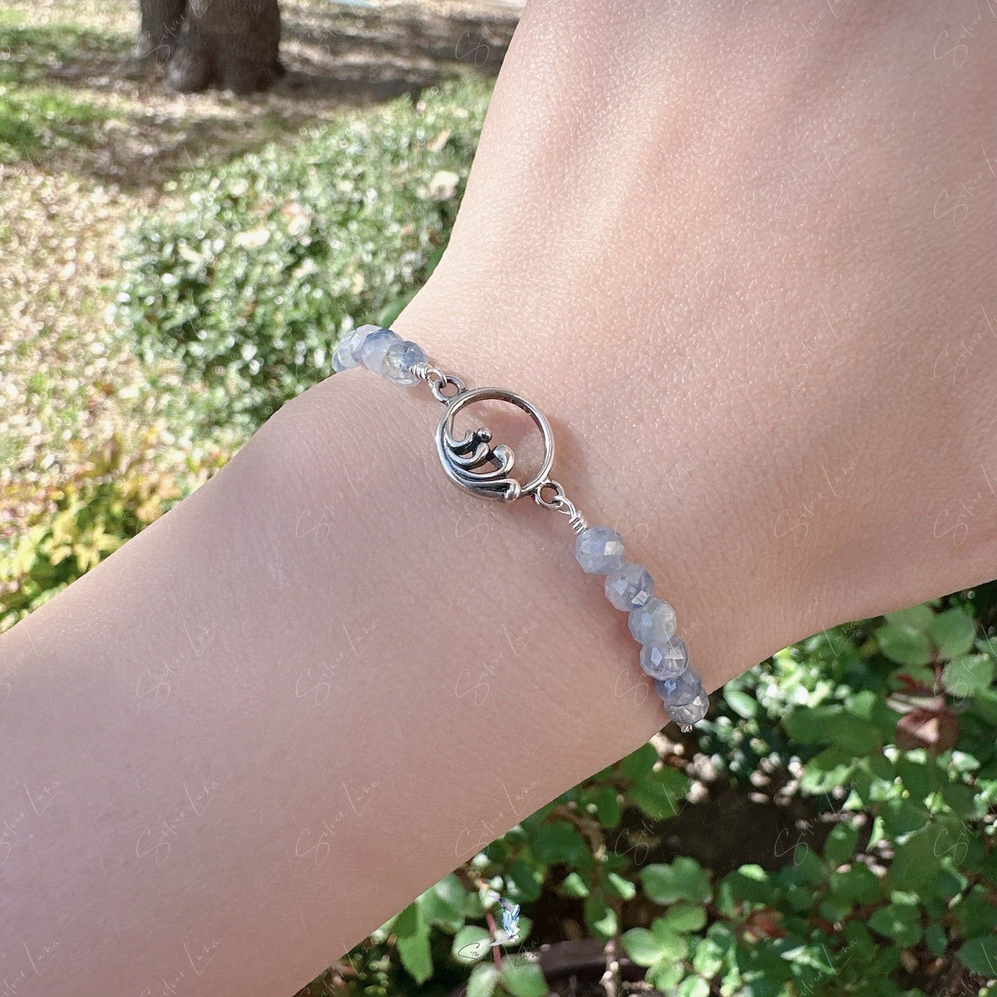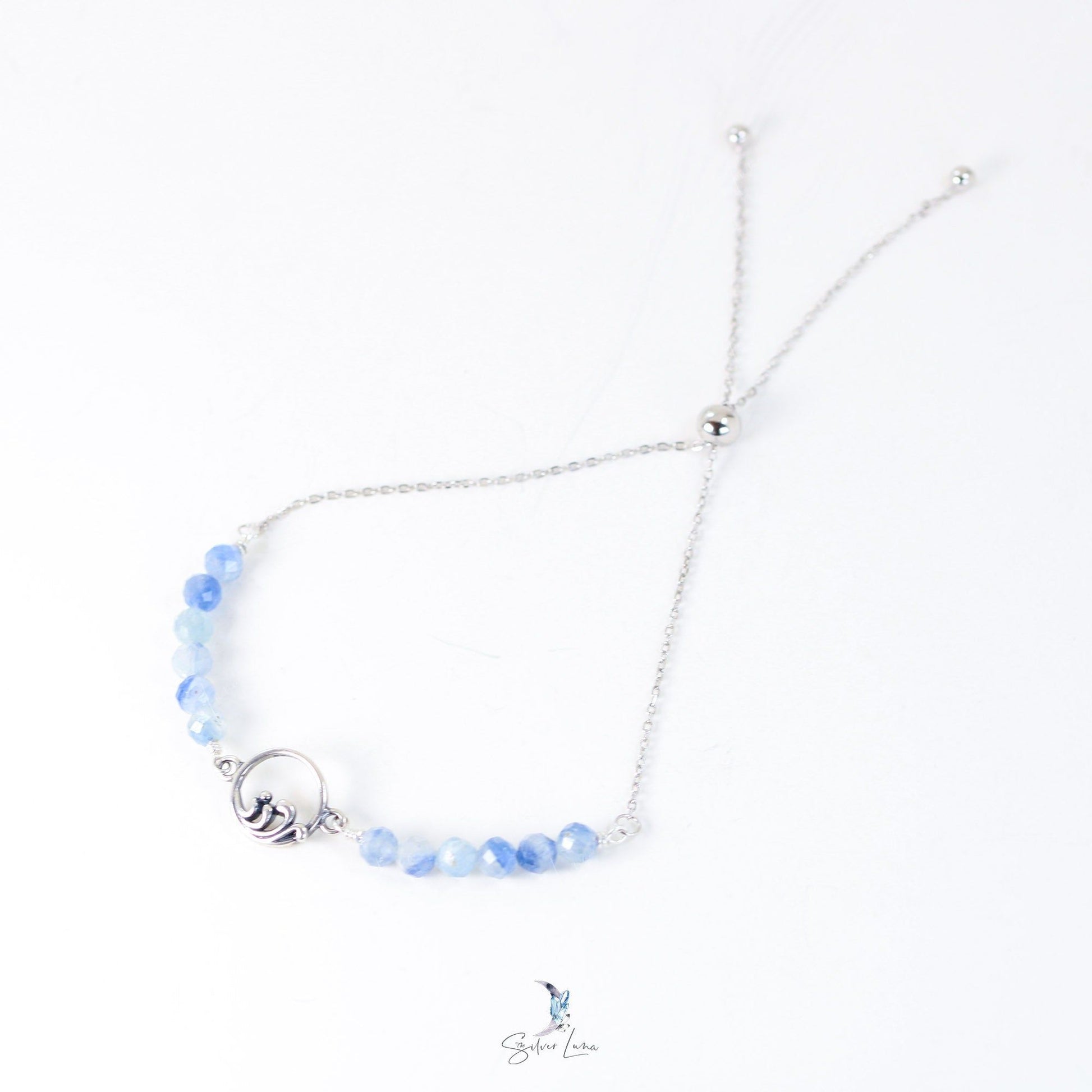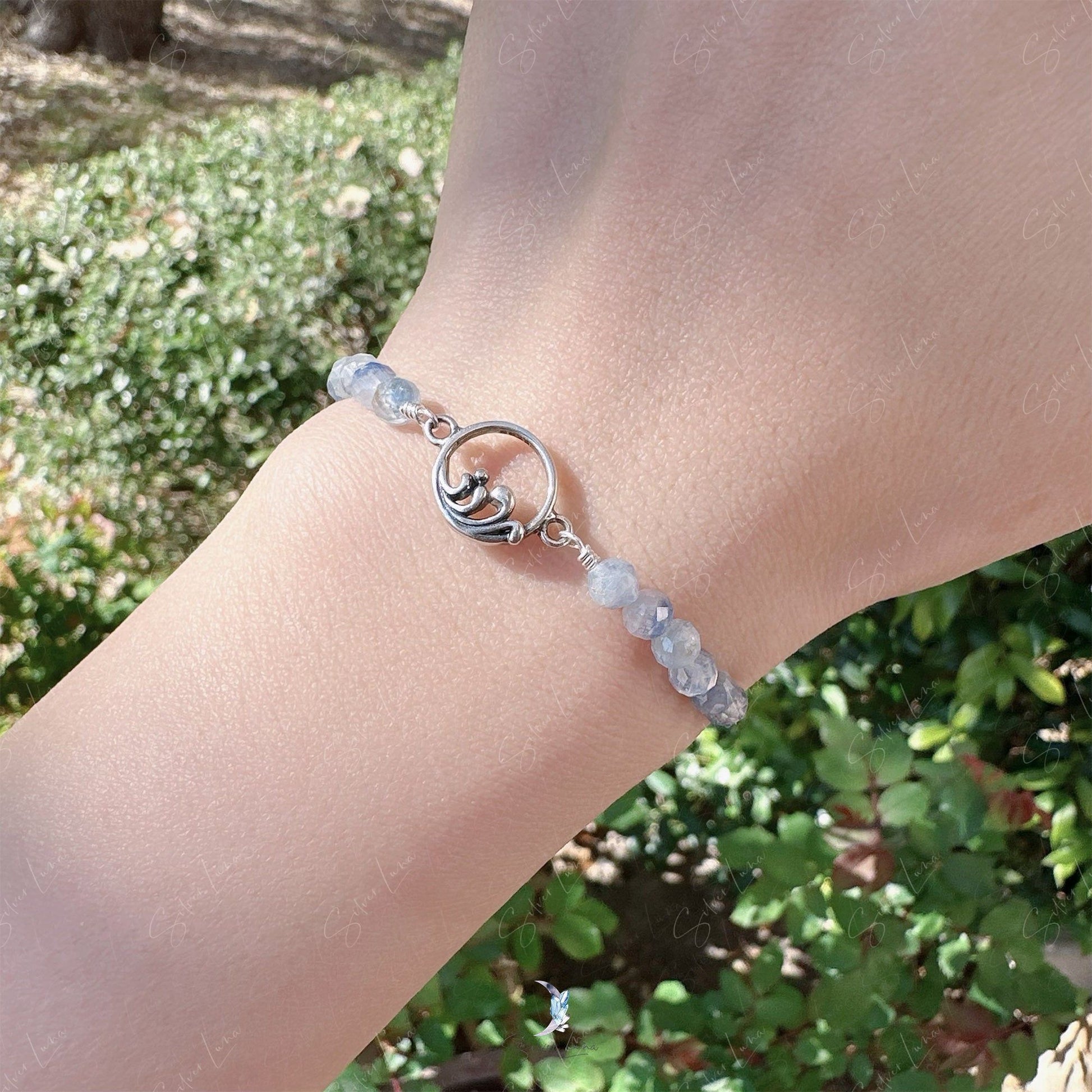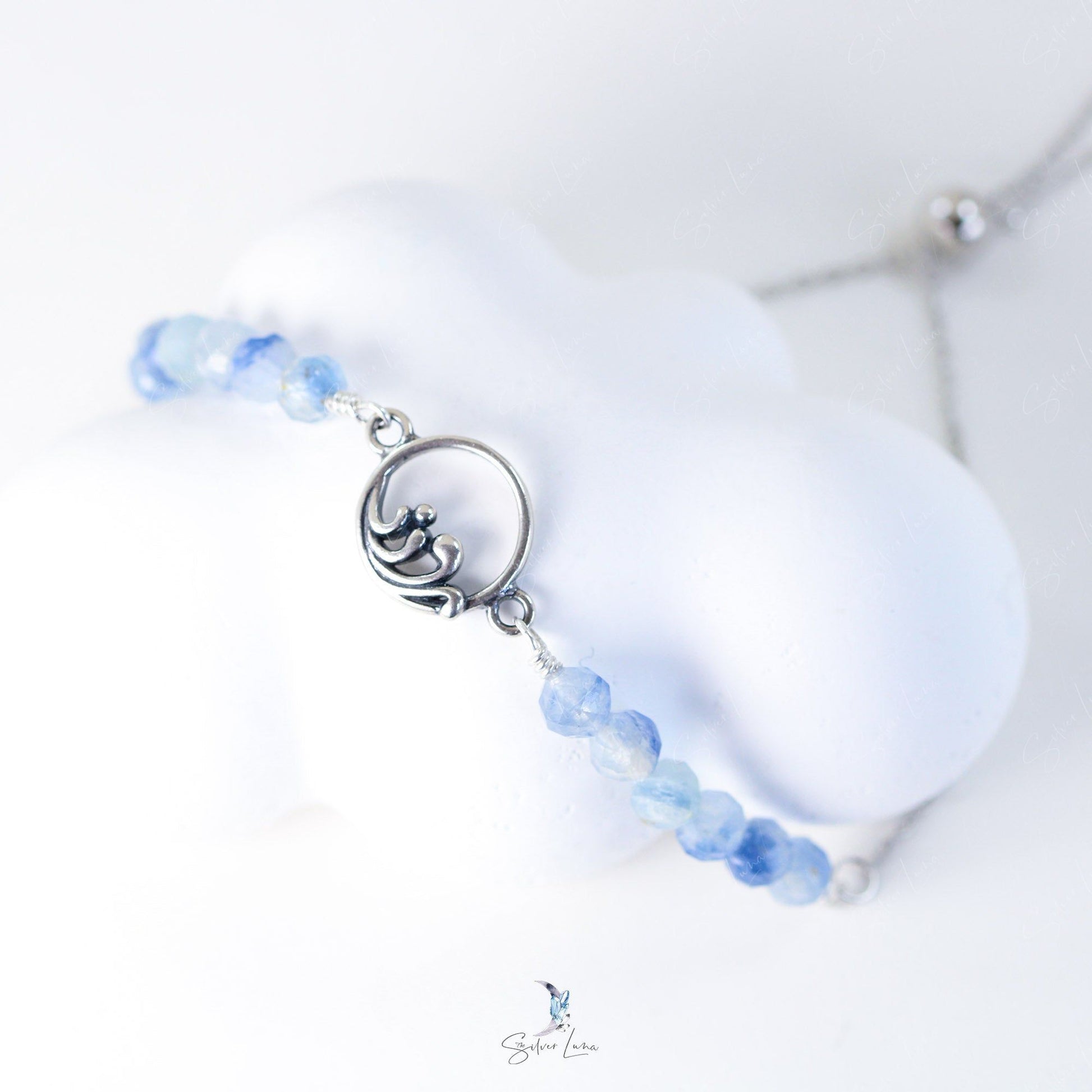 This exquisite beaded bracelet features a charming silver wave connector and stunning faceted blue Kyanite beads. Made with solid 925 sterling silver, it's perfect for everyday wear or as a heartfelt gift. Elevate your jewelry collection with this gorgeous natural stone piece today!