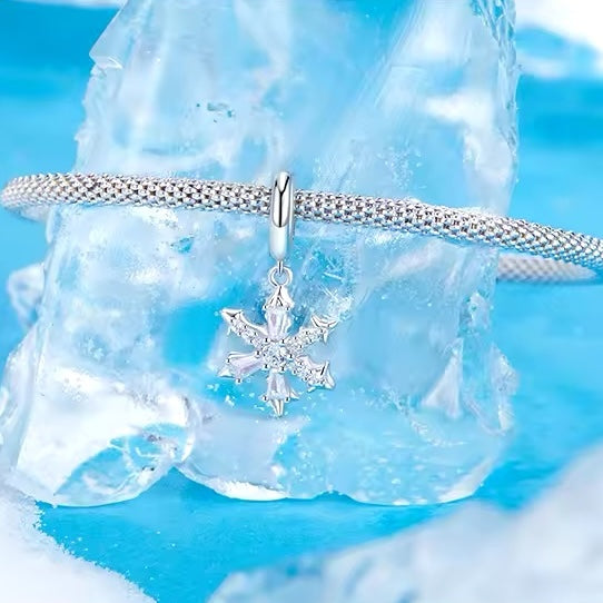 Add a touch of elegance and winter beauty to your collection with our Snowflake Pendant Charm. Crafted with 925 sterling silver and sparkling cubic zirconias, this versatile piece can be worn on a bracelet or necklace. Perfect for the fashion-forward snow lover.