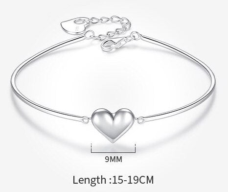 This beautifully crafted bracelet showcases two linked bangle pieces, complete with an adjustable chain and a charming heart-shaped charm. Made of high-quality 925 sterling silver, it makes for an exceptional Valentine's gift for your special someone. Treat your loved one to a piece of jewelry that is as stunning as it is meaningful. The Solid silver Valentine heart half bangle bracelet is a symbol of your love, beautifully crafted from 925 sterling silver and complete with an adjustable chain for the perfect fit. Show them just how much they mean to you with this elegant and heartfelt gift.