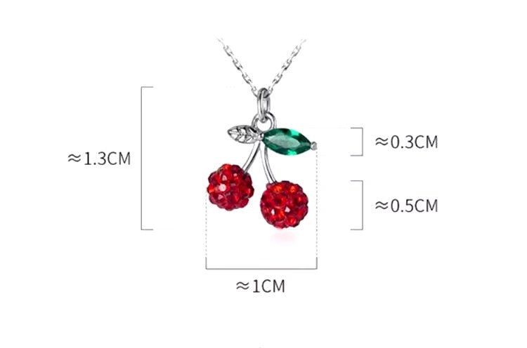Experience the luscious beauty of nature with our sparkling cherry fruit pendant necklace. Made with 925 sterling silver and adorned with red cubic zirconia, this necklace is perfect for adding a touch of elegance to any outfit. Choose between silver or gold plate and complete the look with a solid 925 sterling silver cable chain. Own a stunning piece of jewelry today.