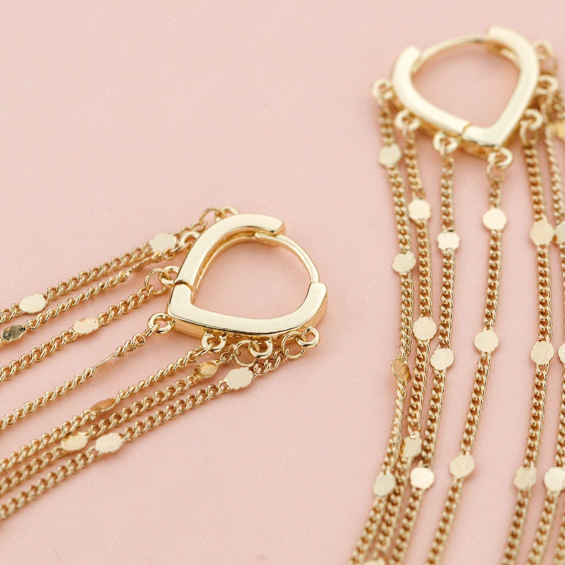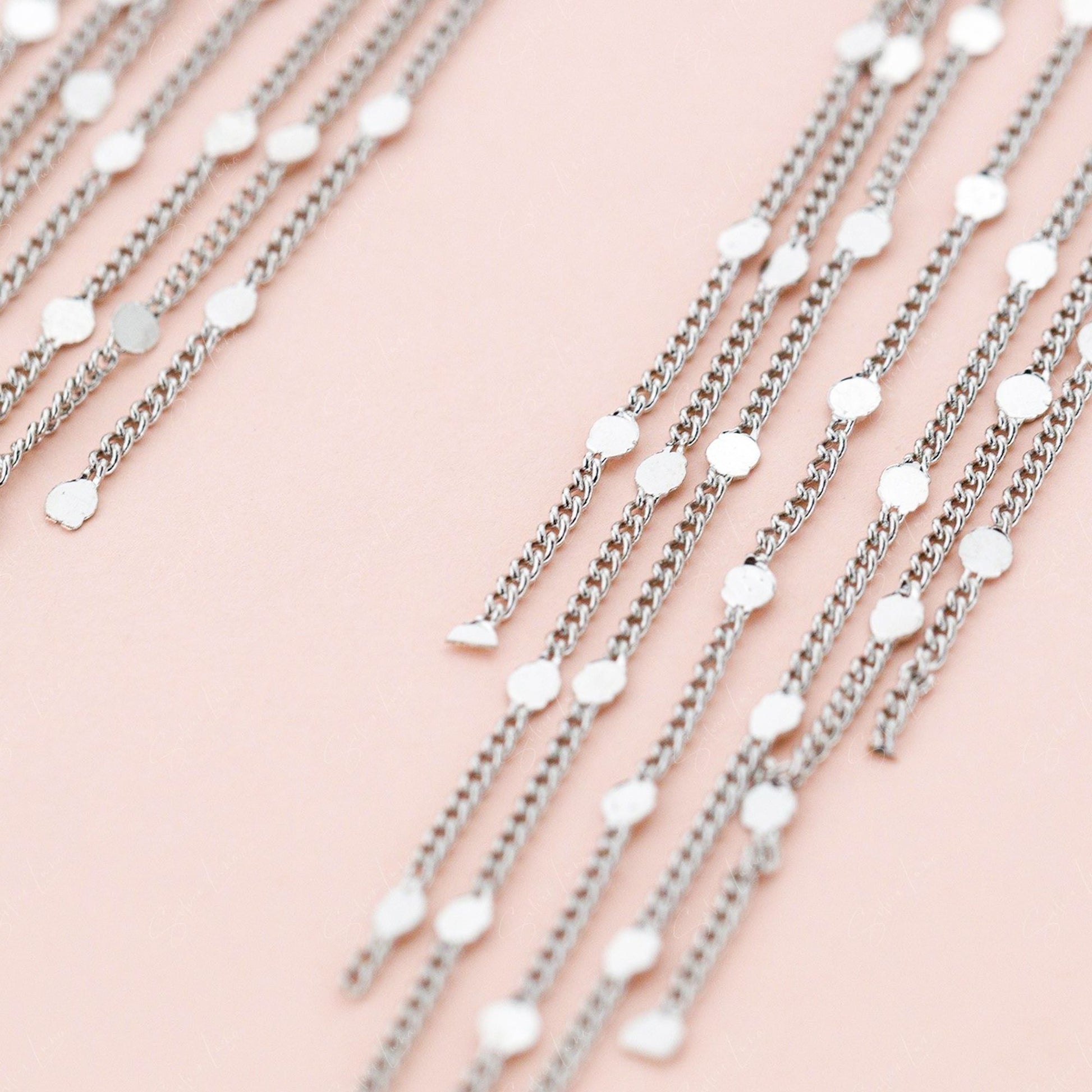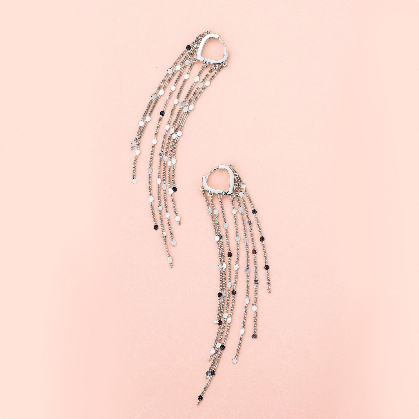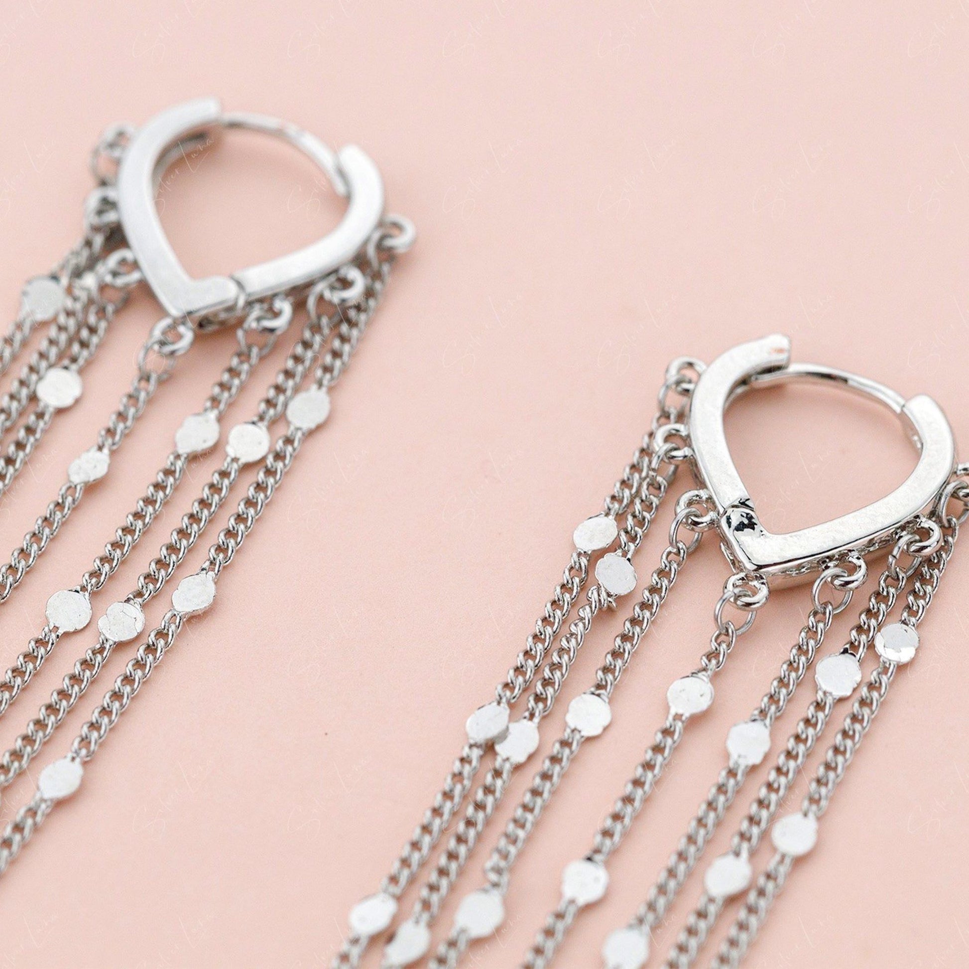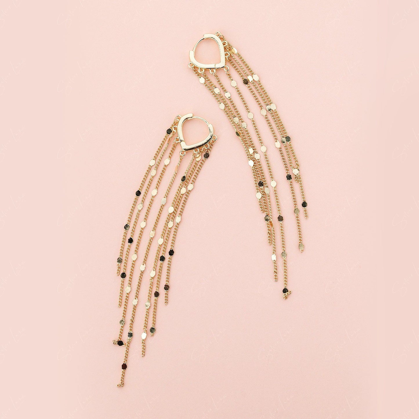 The metal chain tassel hoop earrings feature long tassel chains with sparkling texture to capture light refection and make you shine. These metal tassel chains hoop earrings are perfect for party outfit and everyday wear.