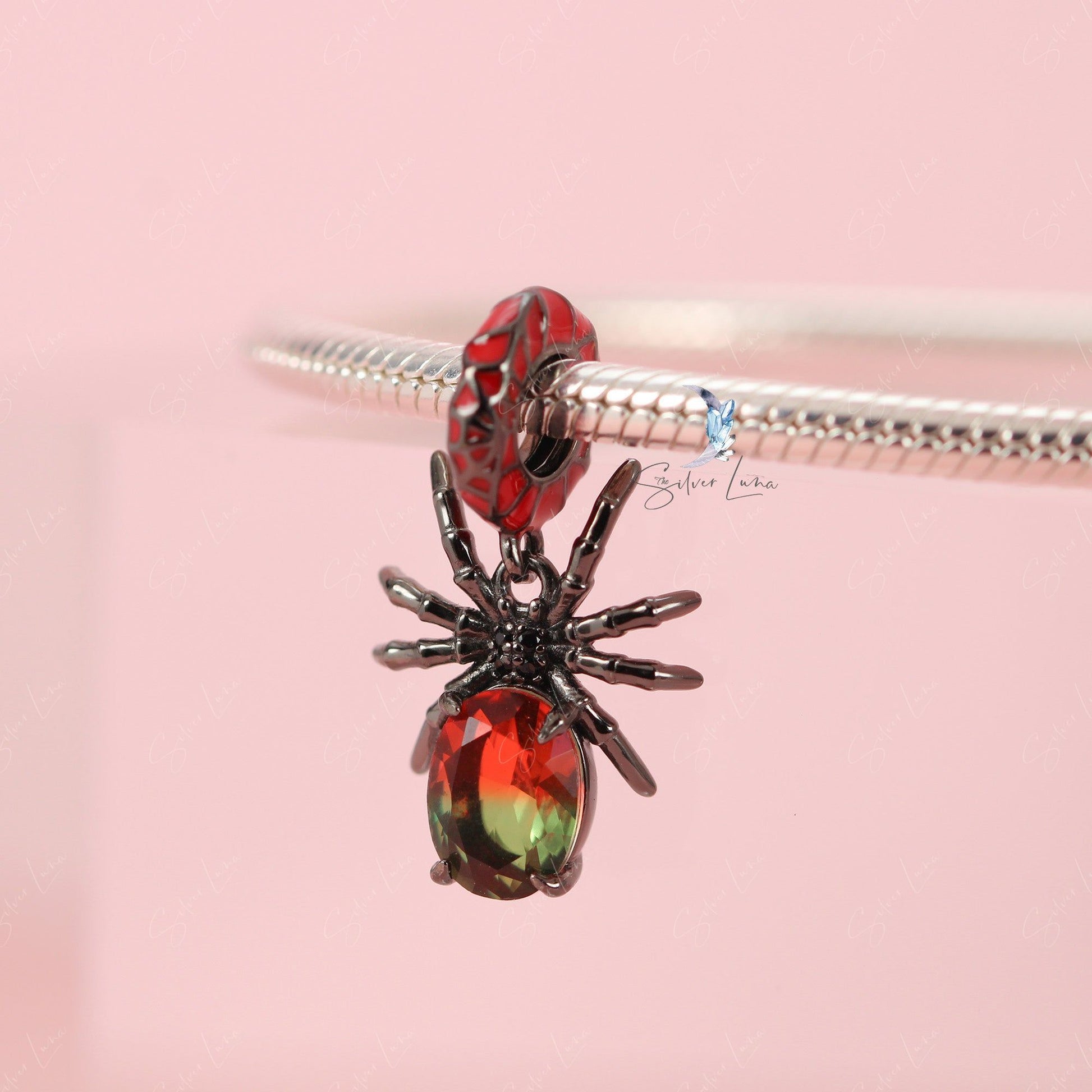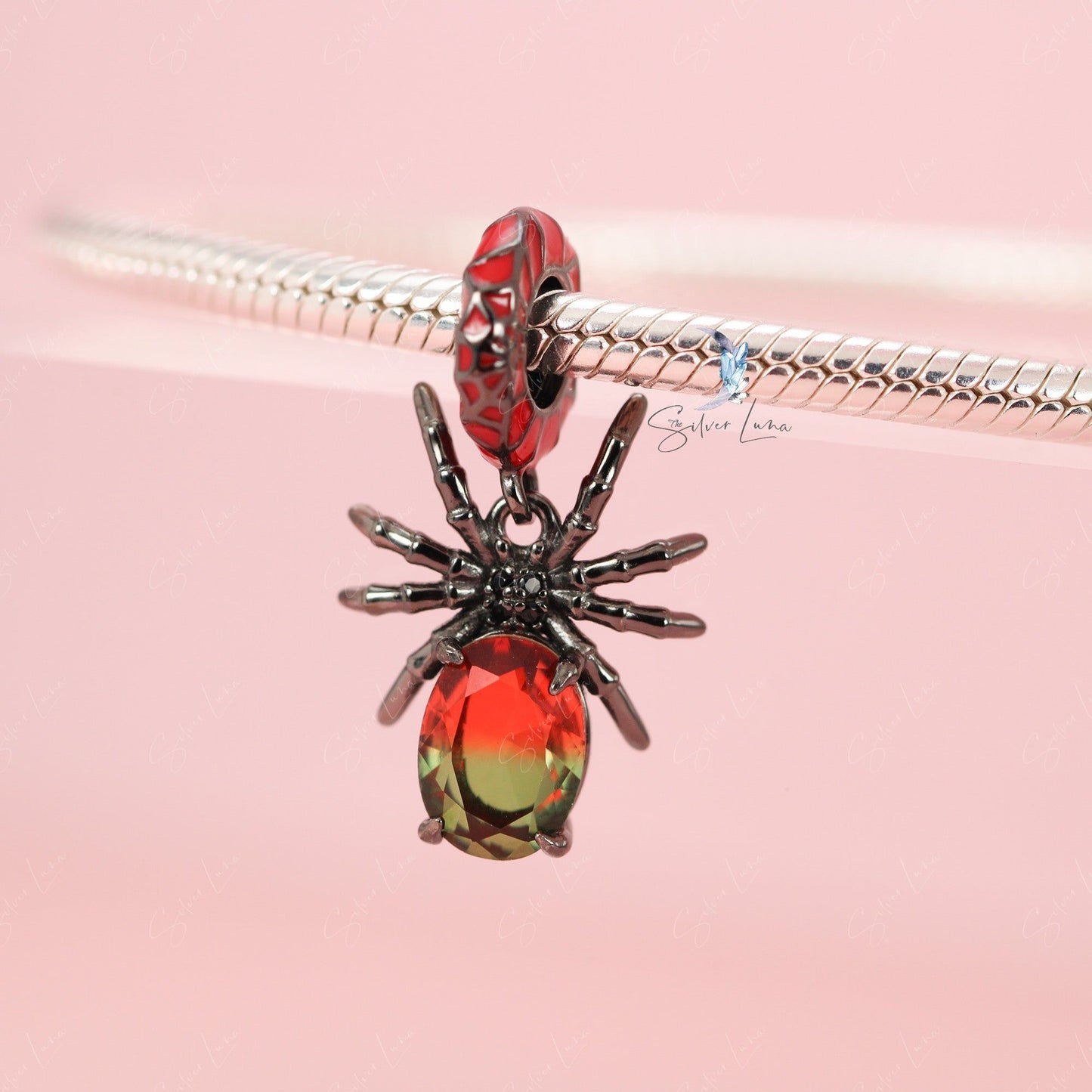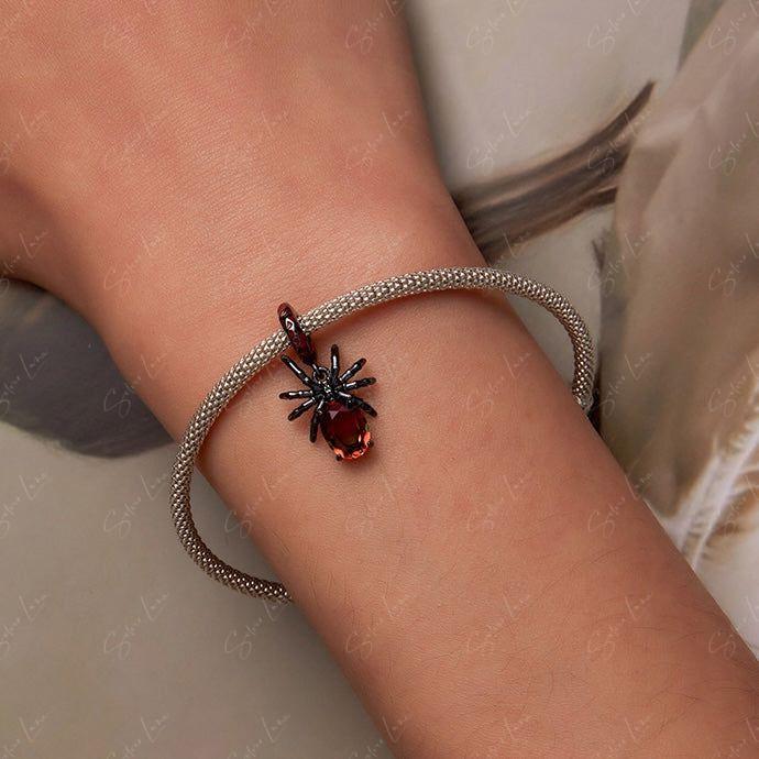 Elevate your style with our Spider Pendant Charm for Bracelet! Made of 925 sterling silver, our charm features stunning black and red enamel plating and a vibrant gradient cubic zirconia gemstone. Add a playful yet elegant touch to your bracelet with this unique spider charm.