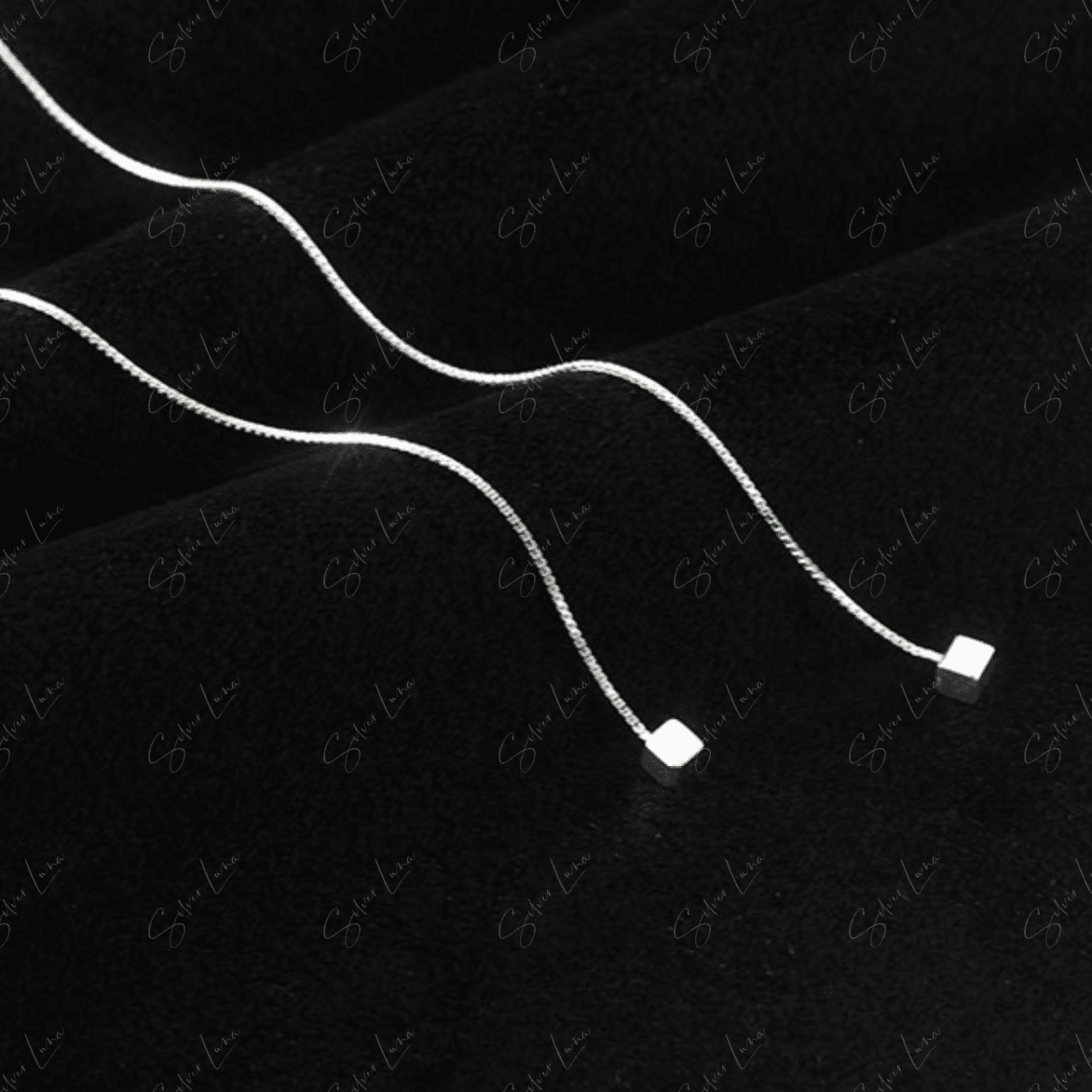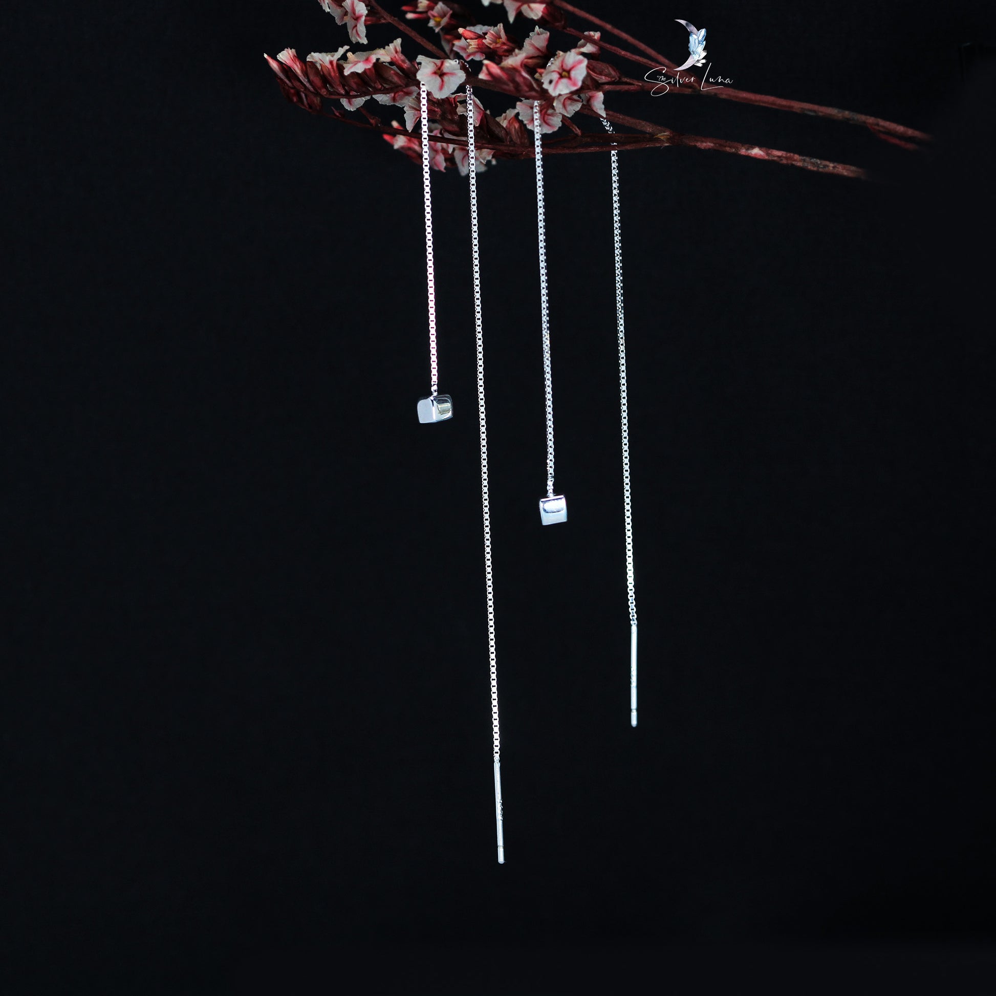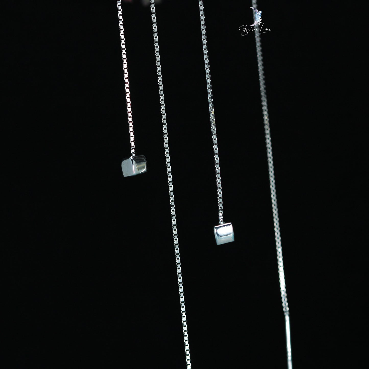 Indulge in a modern and elegant style with these chic square box silver ear threader earrings. The simple and minimalist design, paired with Italian box chain threader, adds a touch of sophistication to any outfit. These adorable long drop earrings feature a square block design and can easily glide through your second ear holes. Don't miss out on the perfect accessory that will elevate your fashion game!