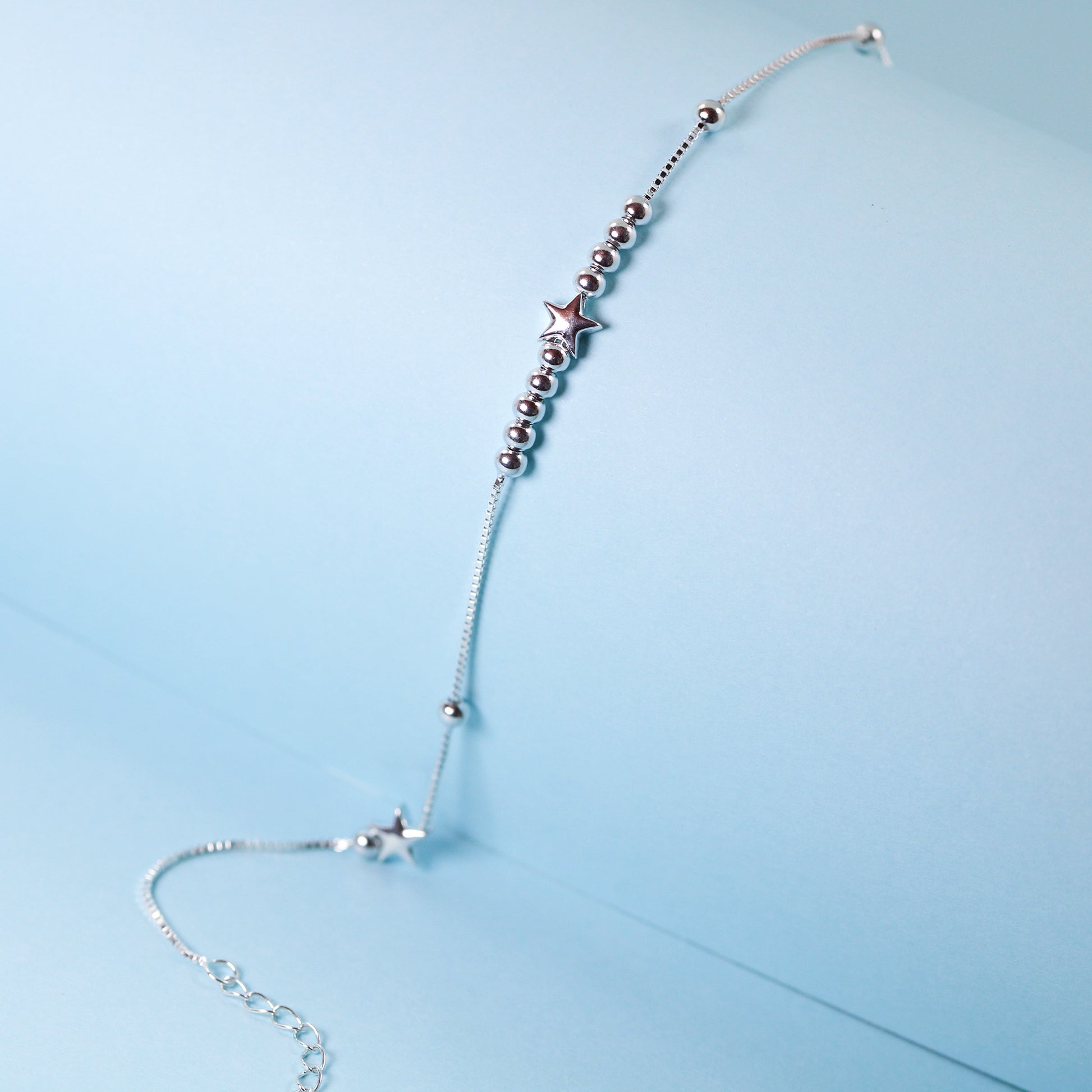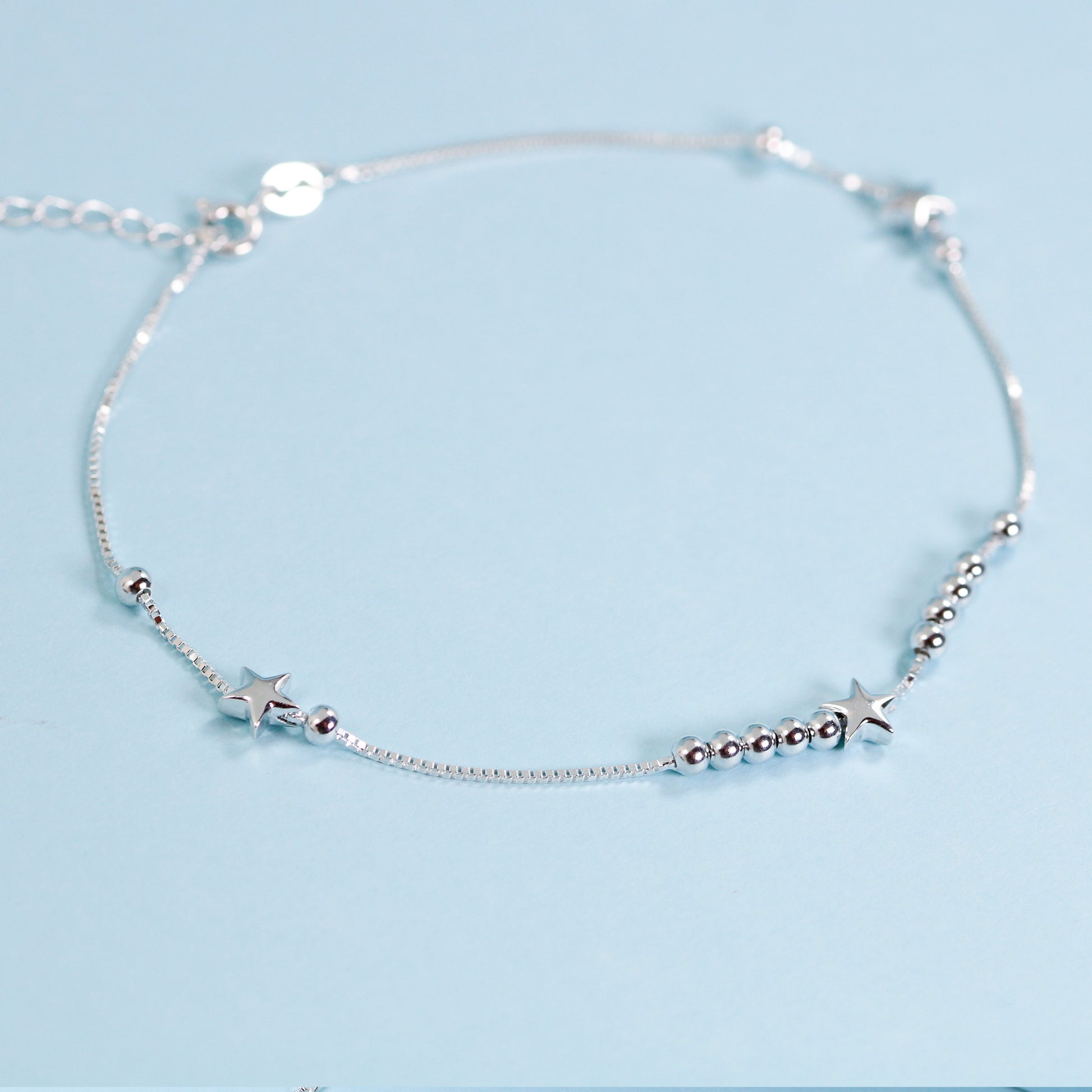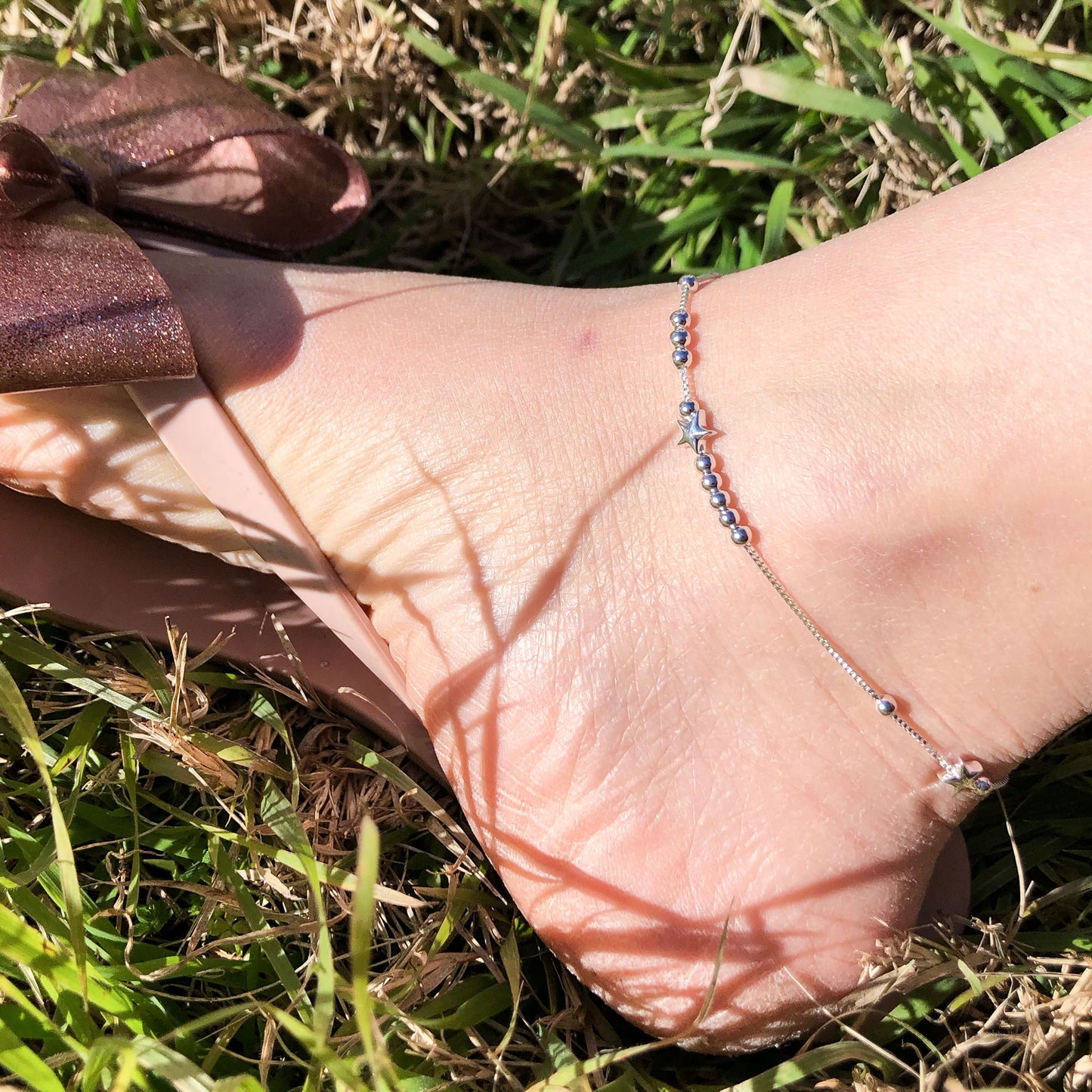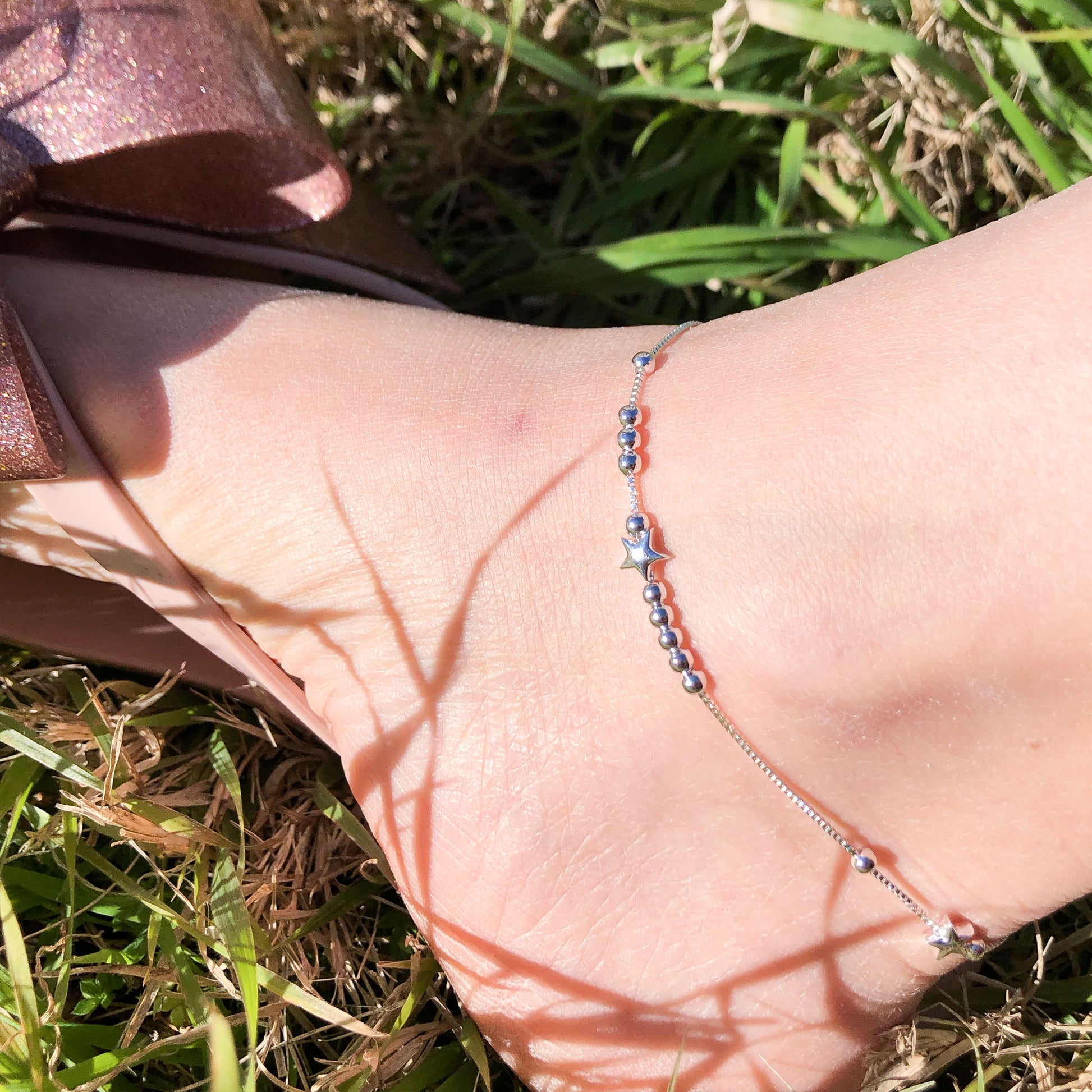 Add a touch of celestial elegance to your ankle with our Stars and Balls Charm Sterling Silver Anklet. The box chain adds extra durability while the stars and balls charm dangles delicately, making it perfect for any occasion. Elevate your style and let your ankles shine like the stars in the sky!
