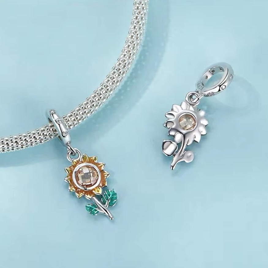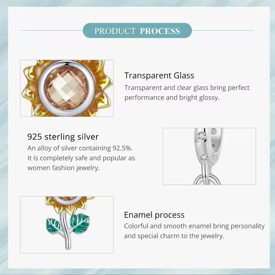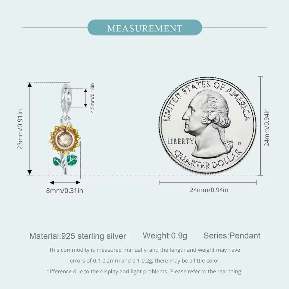 Add a touch of nature to your jewelry collection with our Sunflower pendant charm! Made with 925 sterling silver, this charm is perfect for bracelets or necklaces. The intricate design and quality material make it a chic and versatile addition to any outfit. Embrace the beauty of the sunflower and embrace your own beauty with this charming piece.
