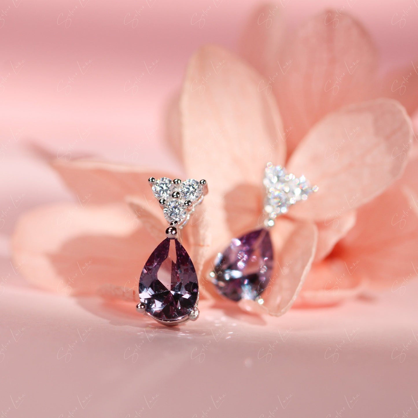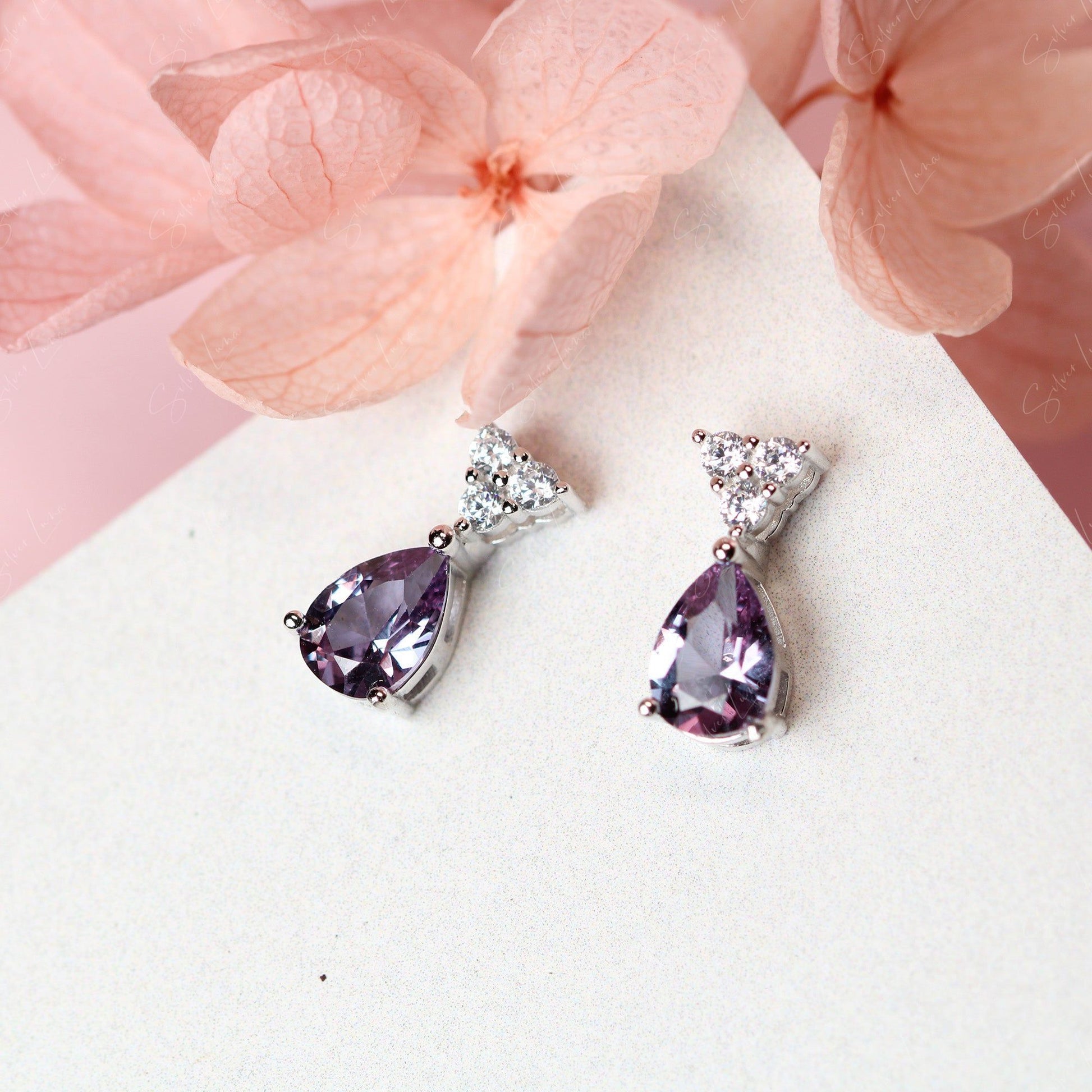 Teardrop Alexandrite sterling silver stud earrings