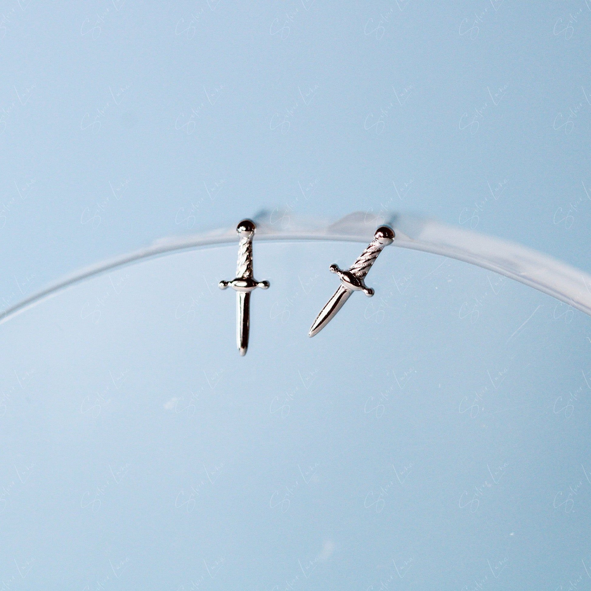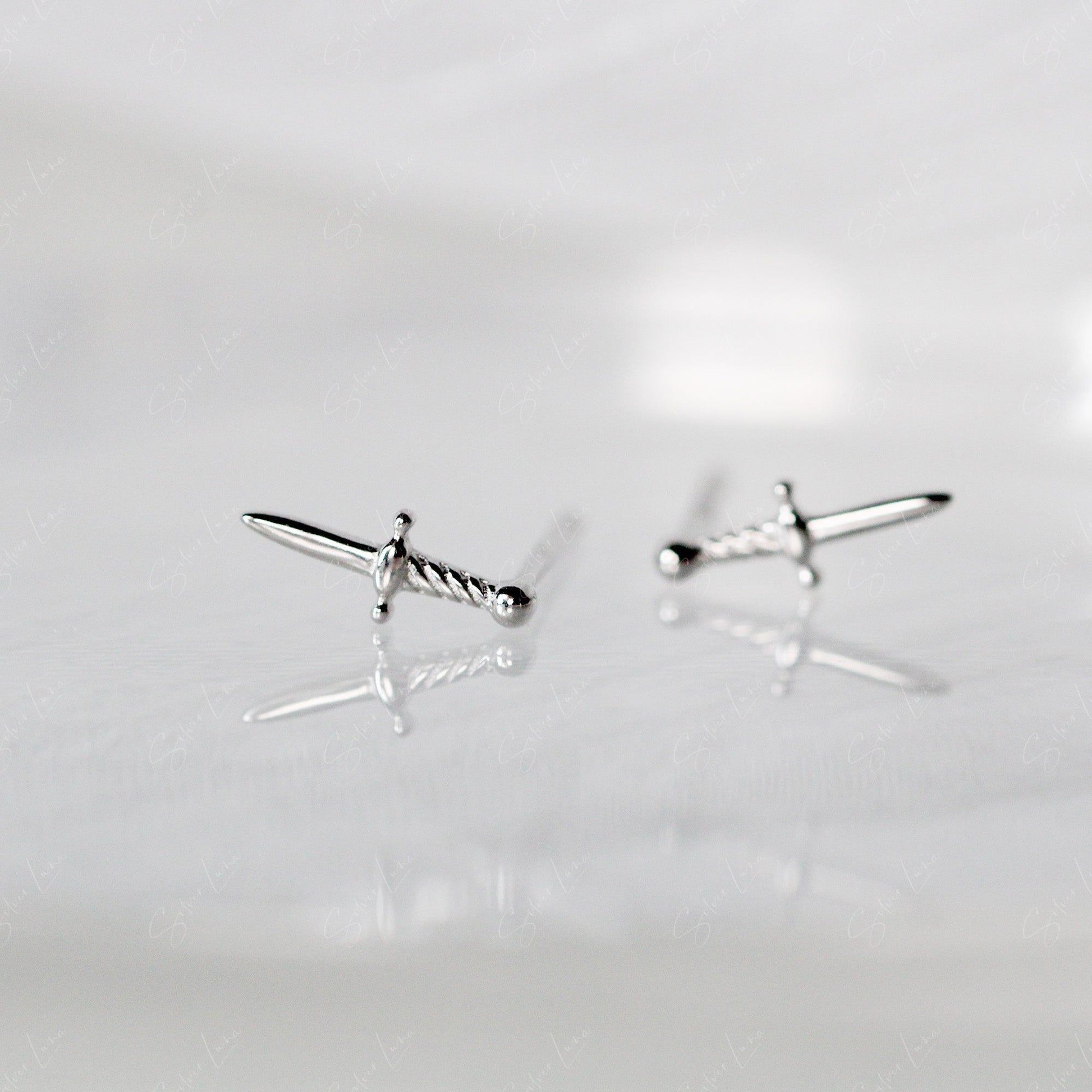 Add a touch of edgy elegance to your outfit with our tiny sword dagger sterling silver stud earrings! These unique earrings are made with high-quality sterling silver, and their petite size makes them perfect for everyday wear. Upgrade your jewelry game with these statement-making studs!