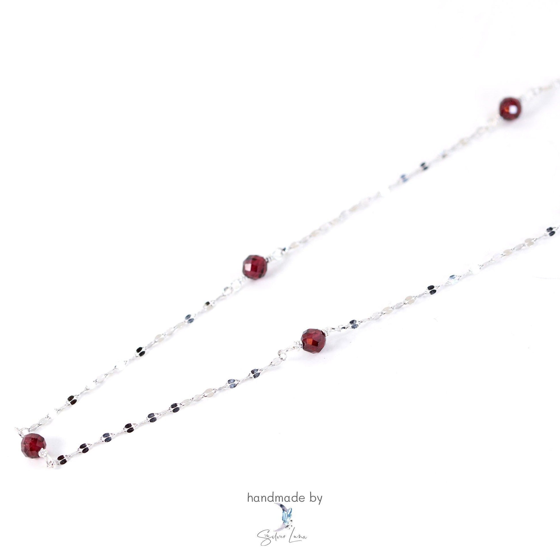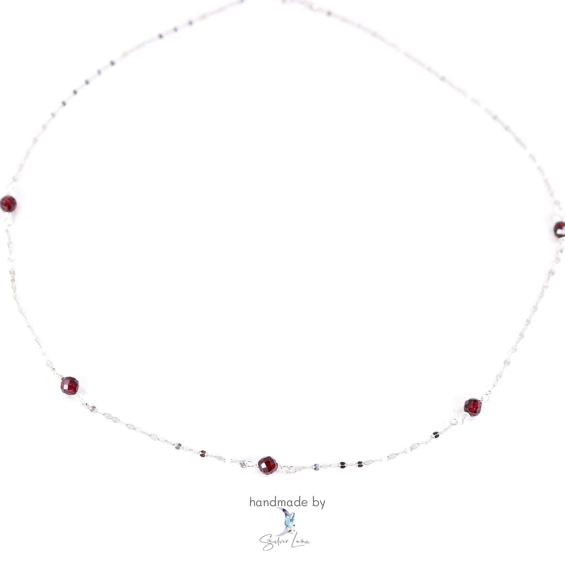 Upgrade your jewelry game with this captivating red garnet choker necklace. Made from a sturdy 925 sterling silver twist chain, adorned with 4 mm faceted red garnet beads, this necklace radiates luxury and charm. Whether it's a gift for a loved one or a treat for yourself, this piece is sure to make a statement. Wear it alone or pair it with the lariat red garnet necklace for a stunning combination.