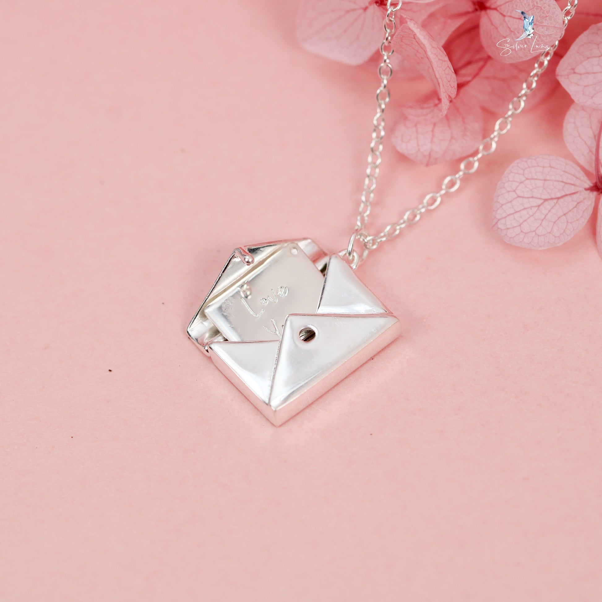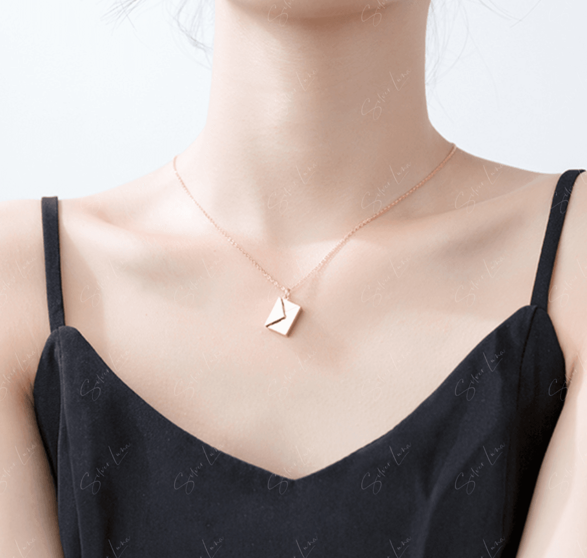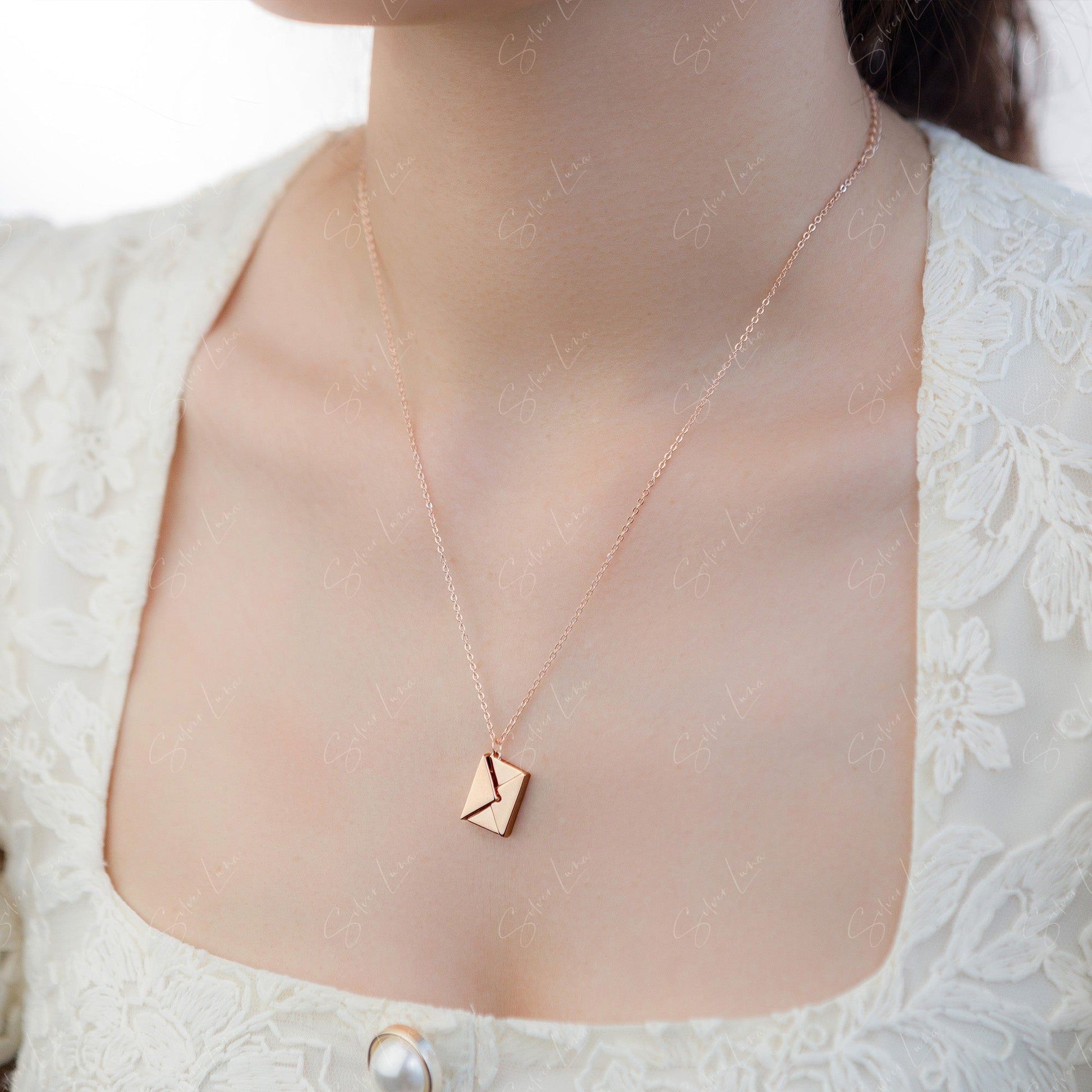 Indulge in romance with our love letter pendant necklace, adorned with a letter-shaped pendant that opens to reveal a sweet "love you" note. A perfect Valentine's Day gift for your dearest one, crafted with high-quality materials including solid 925 sterling silver and a 14k rose gold or platinum plate.