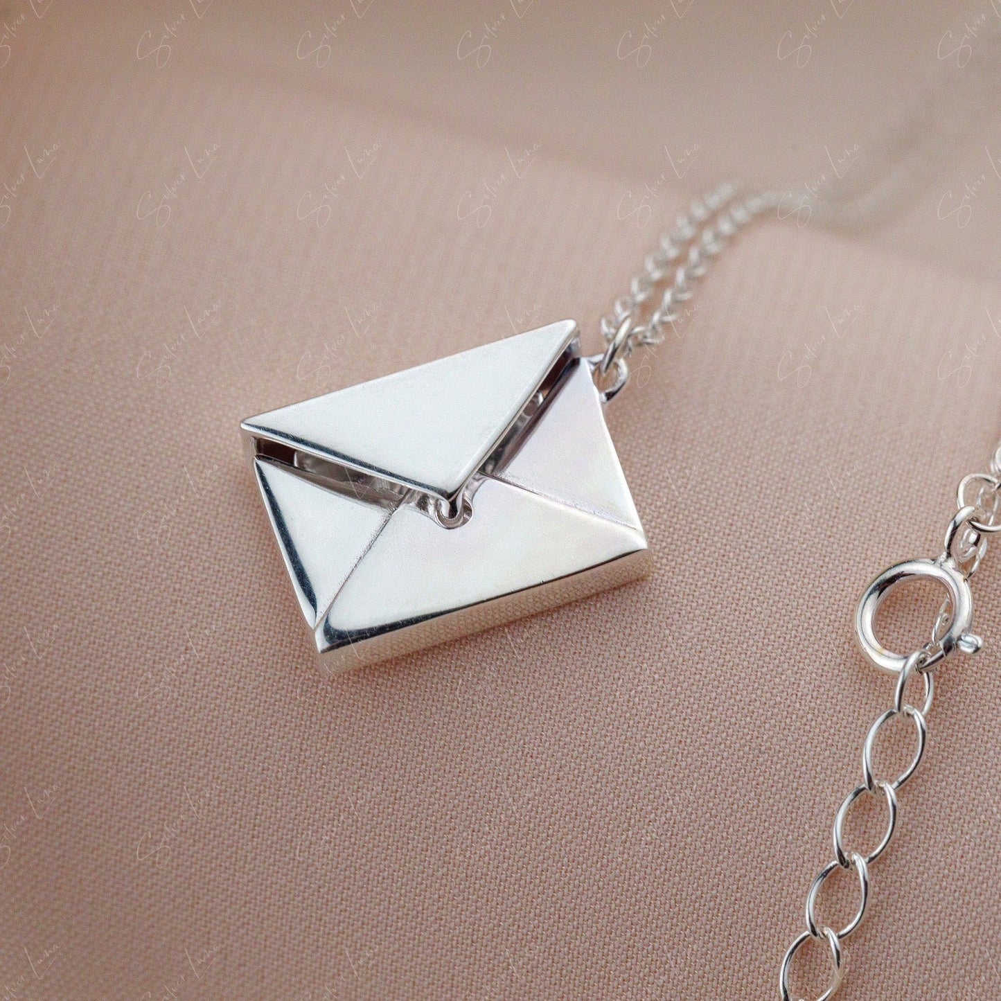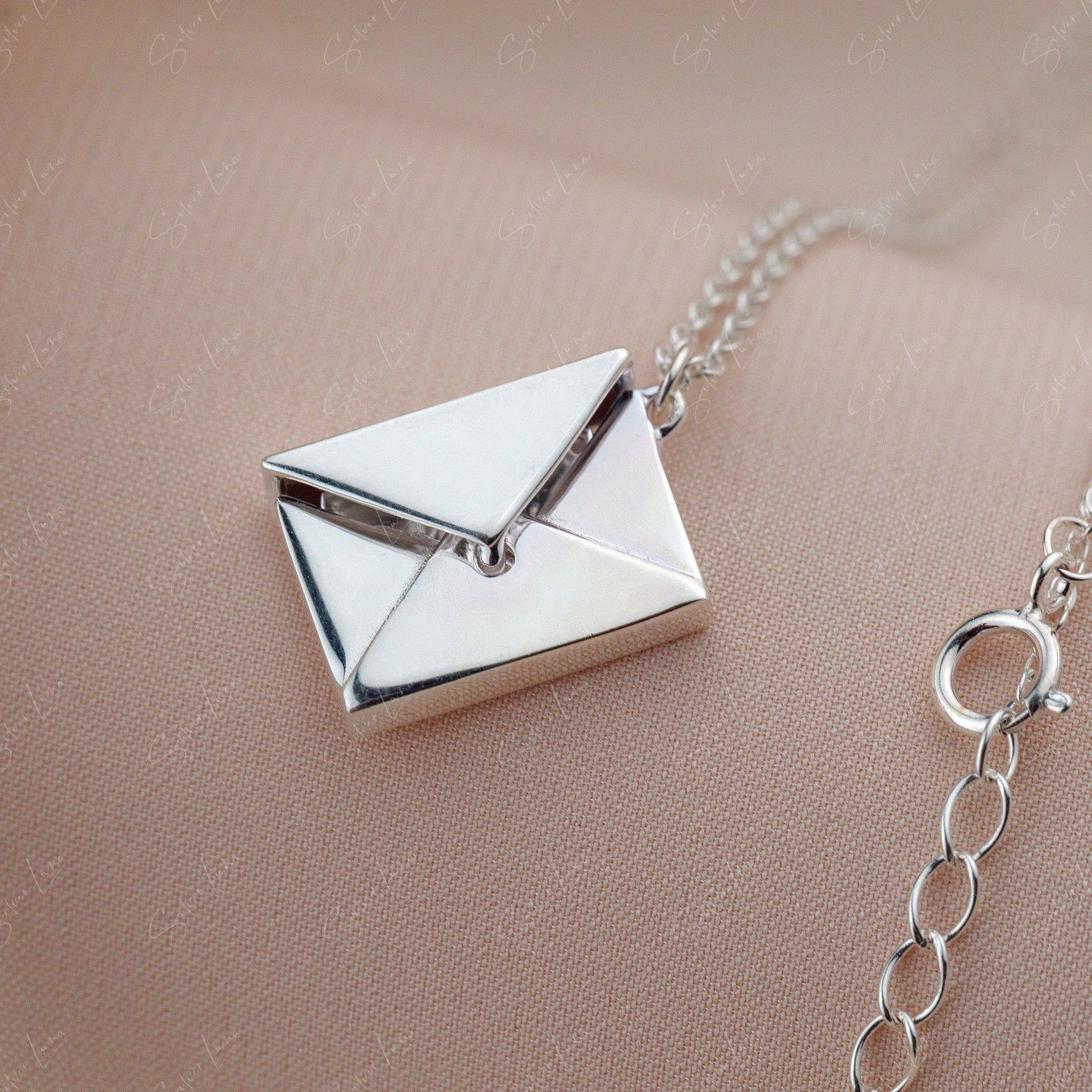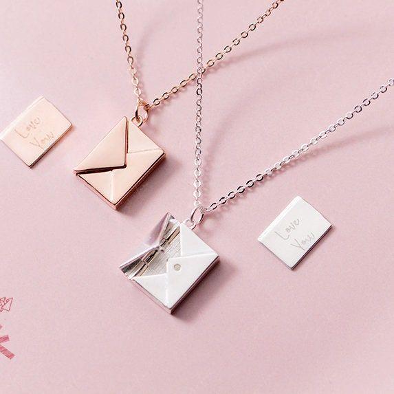 Indulge in romance with our love letter pendant necklace, adorned with a letter-shaped pendant that opens to reveal a sweet "love you" note. A perfect Valentine's Day gift for your dearest one, crafted with high-quality materials including solid 925 sterling silver and a 14k rose gold or platinum plate.