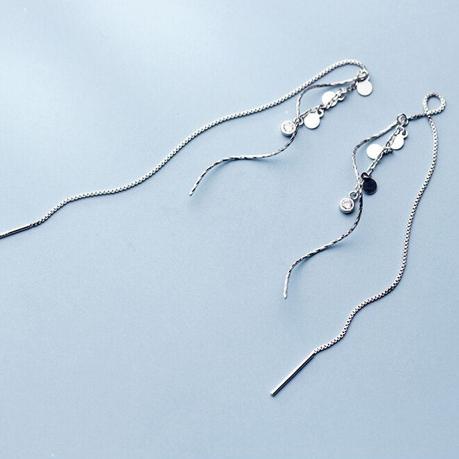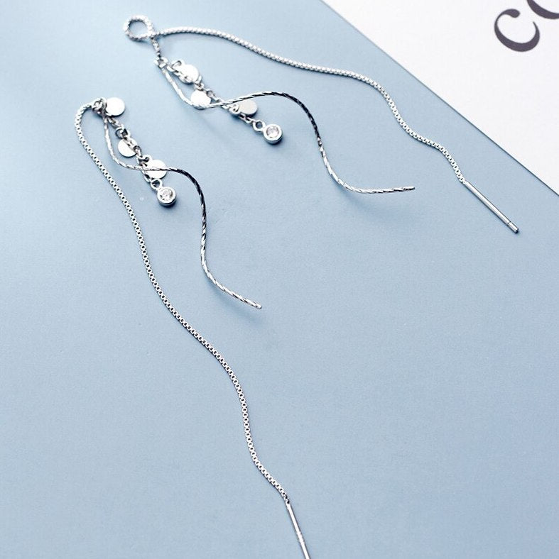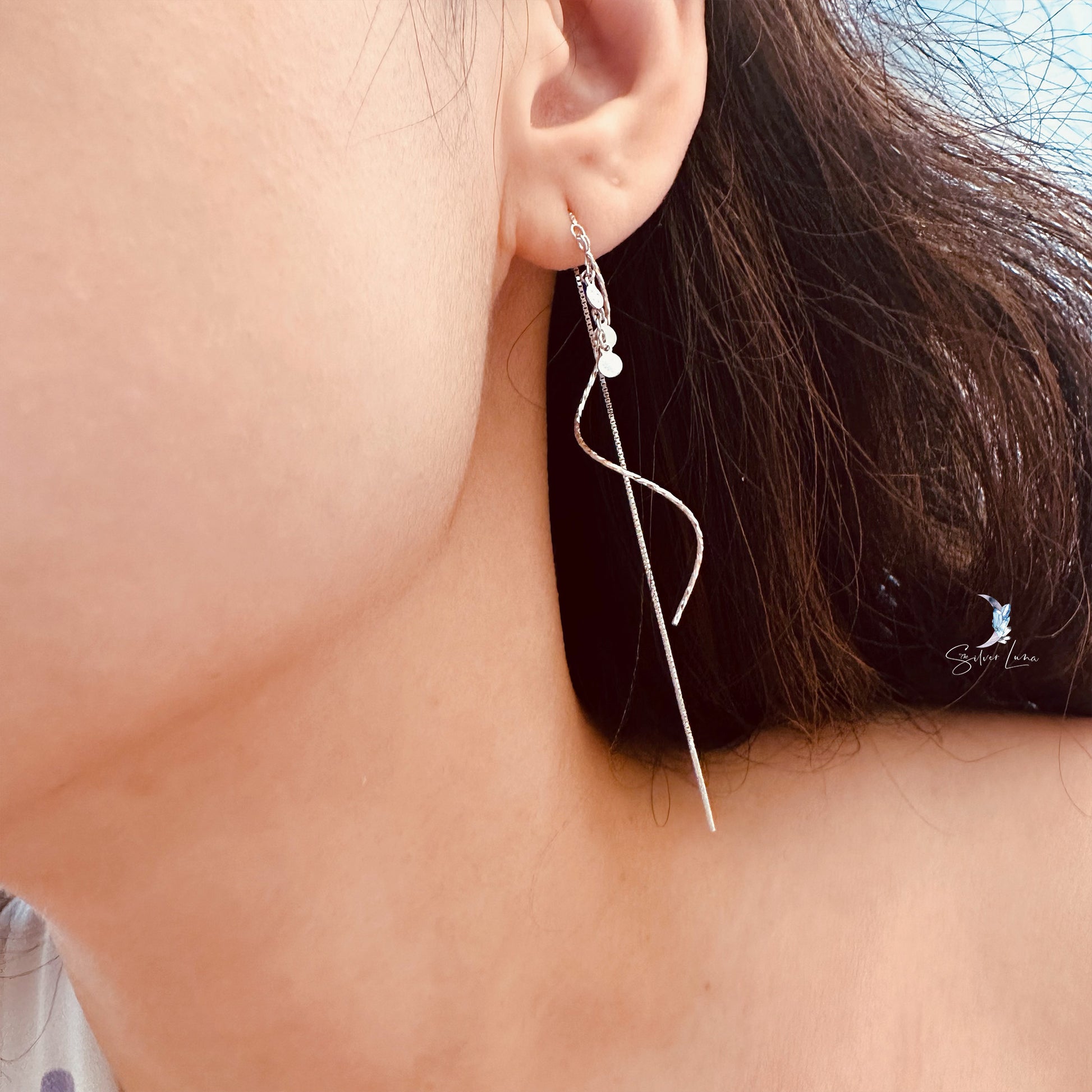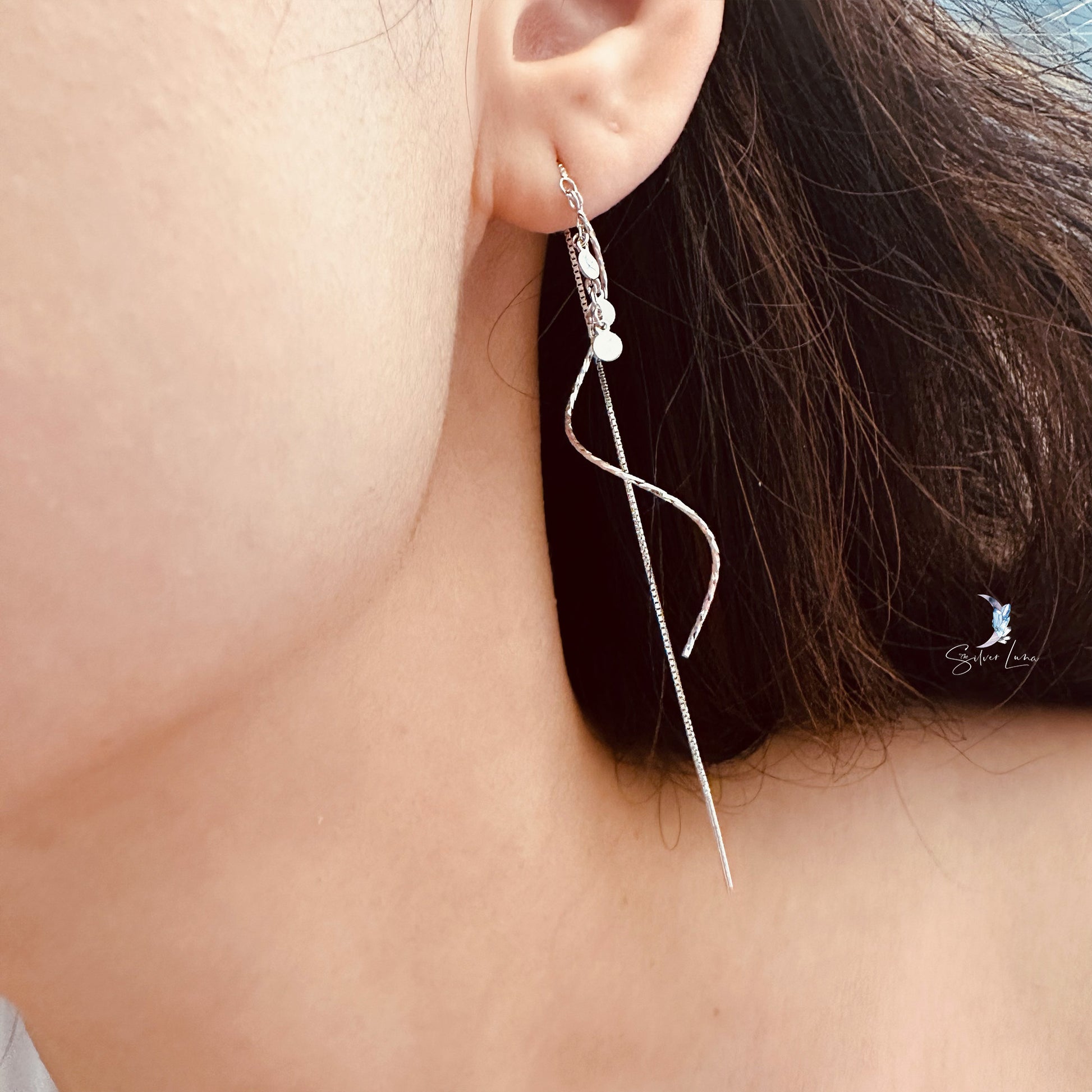 Elevate your style with our Wavy Circle Charm Ear Threaders! Crafted from solid 925 sterling silver and plated in luxurious platinum, these earrings feature a unique wavy circle design that will add a touch of modern elegance to any outfit. Don't settle for basic when you can stand out with these eye-catching threaders.